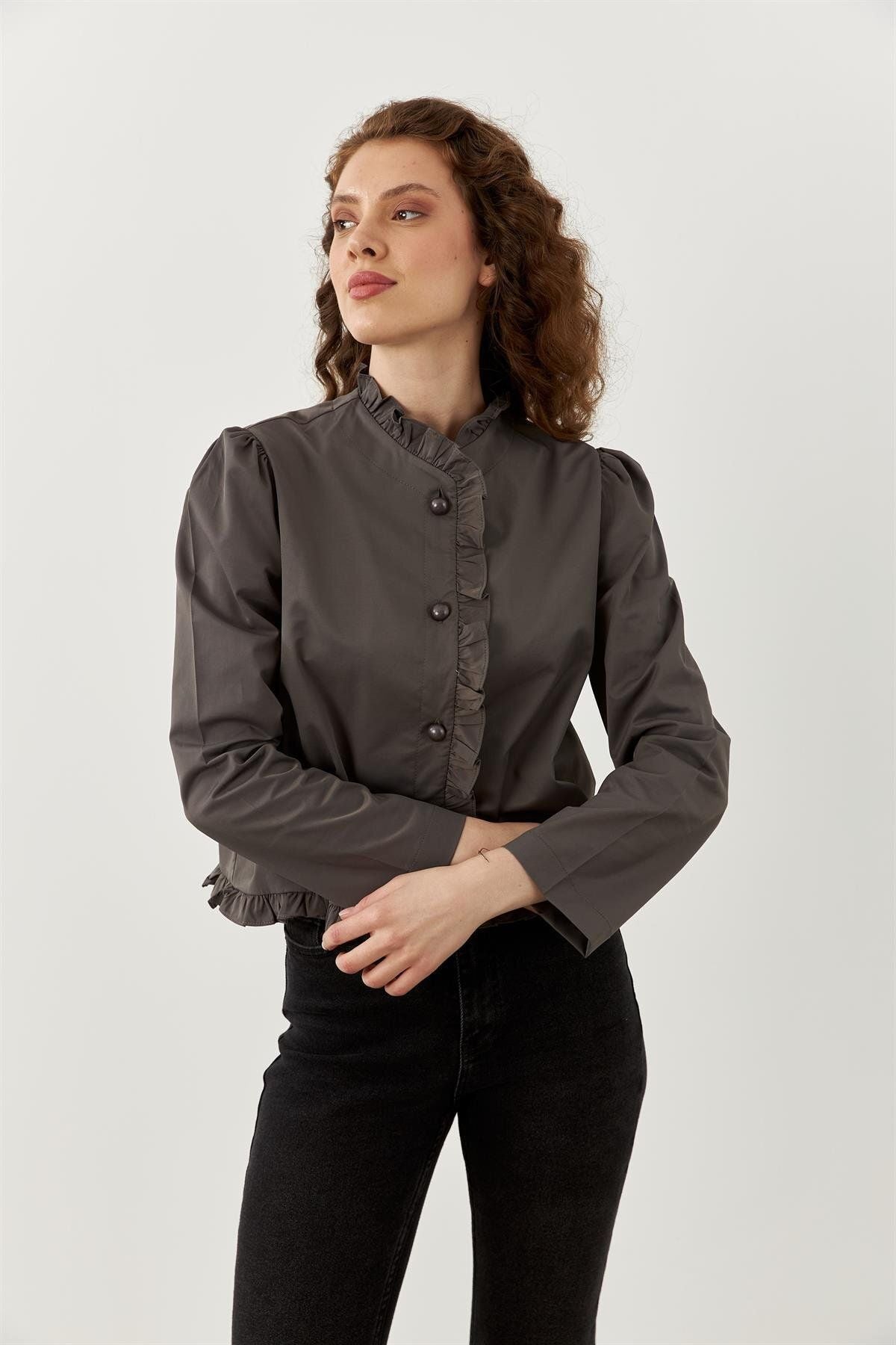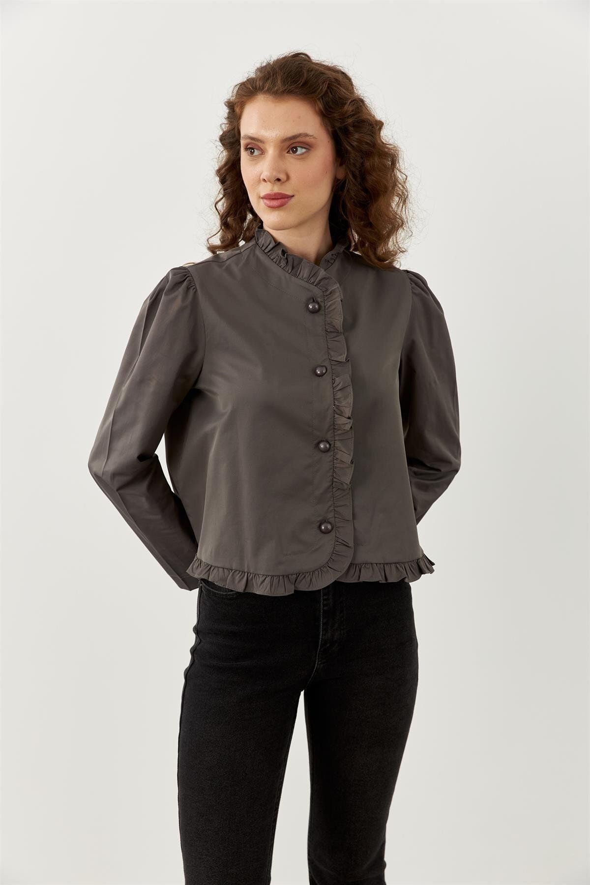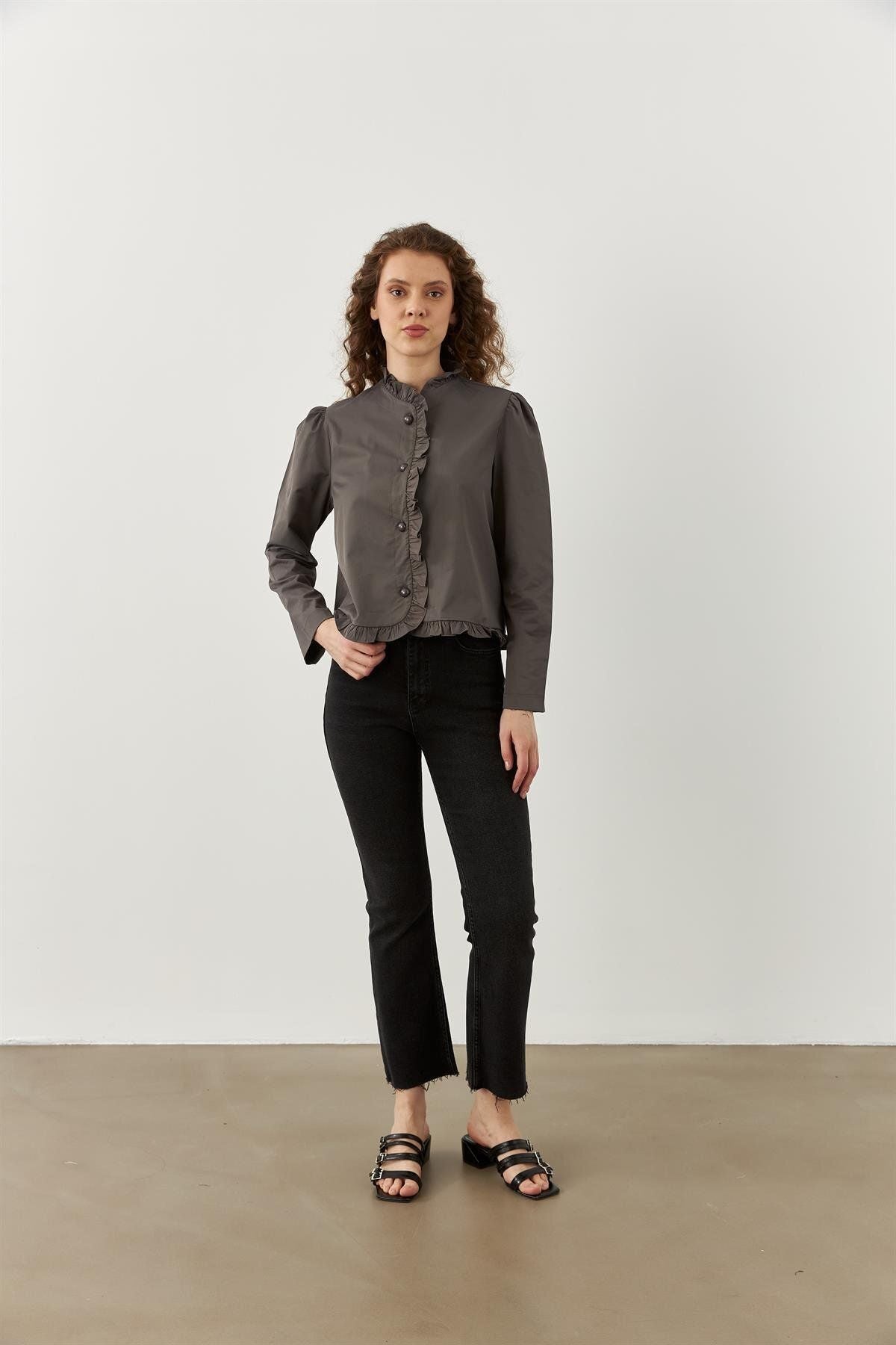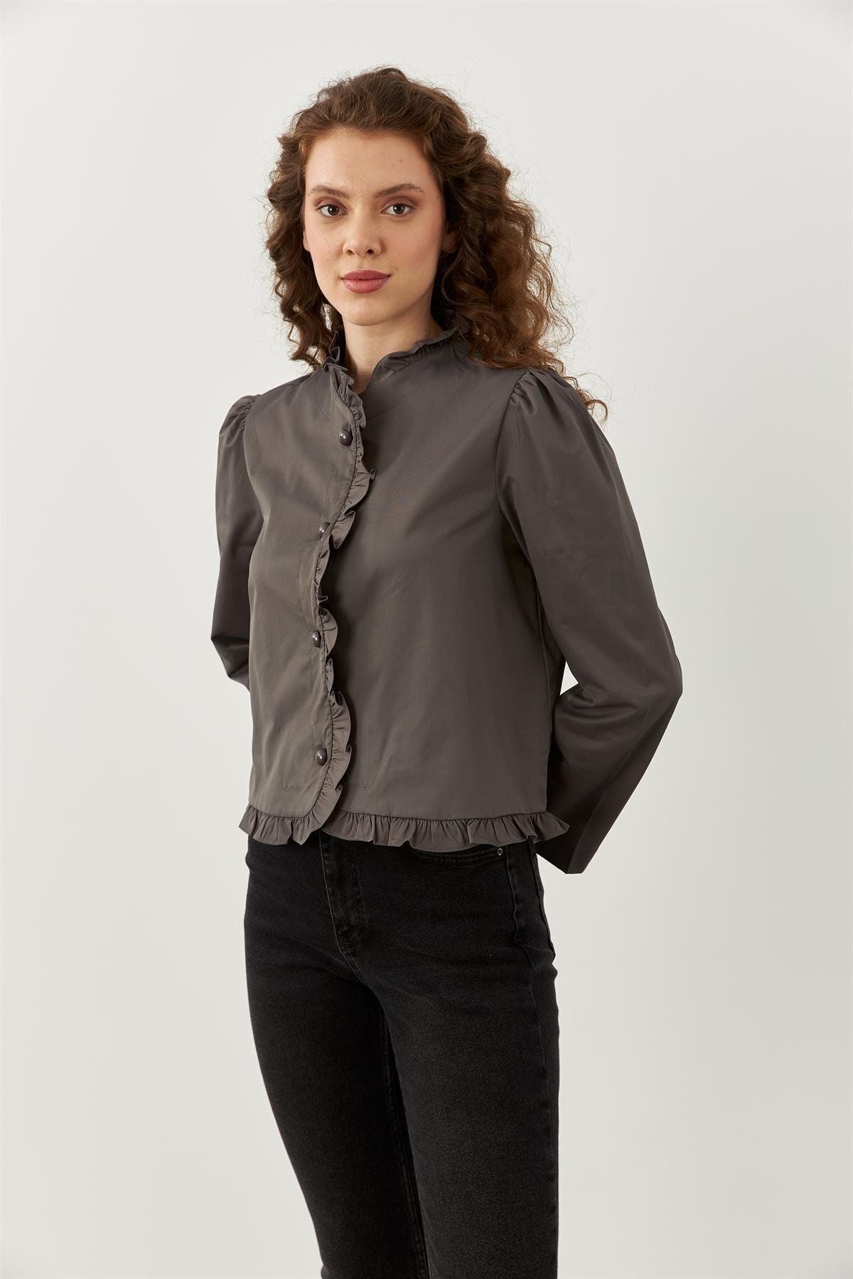 Fırfırlı Ceket Gri