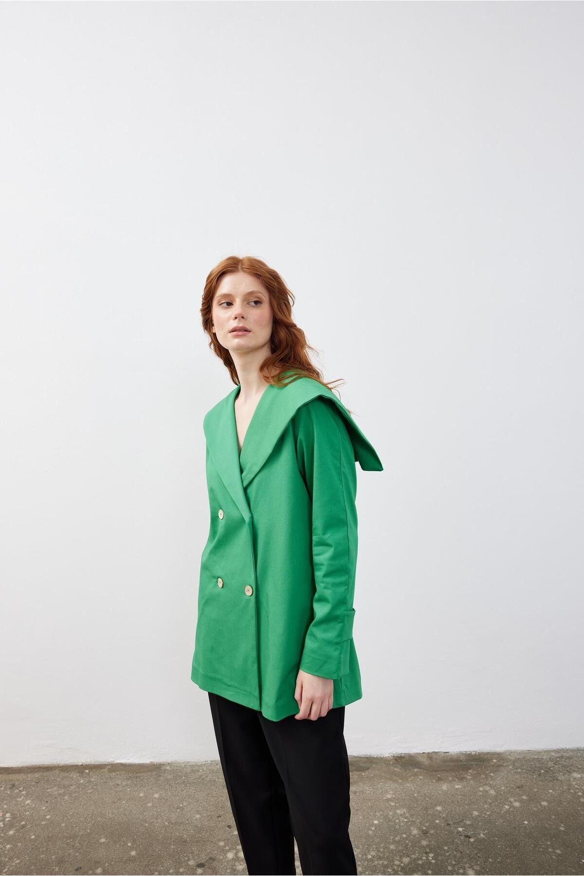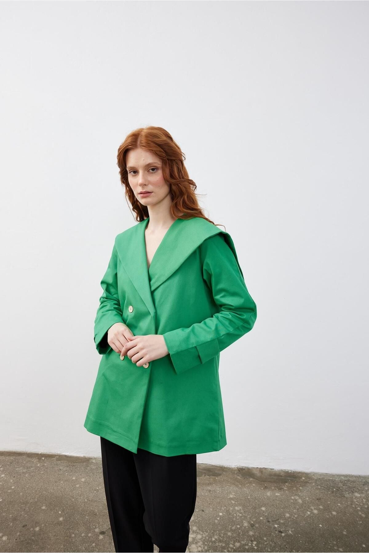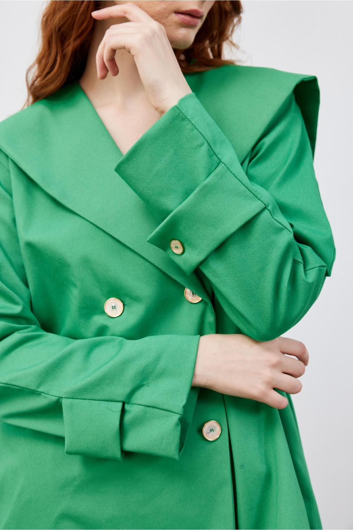 Kare Yaka Kadın Ceket Yeşil Yeşil