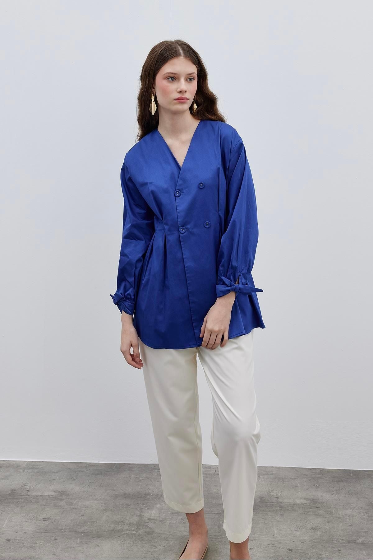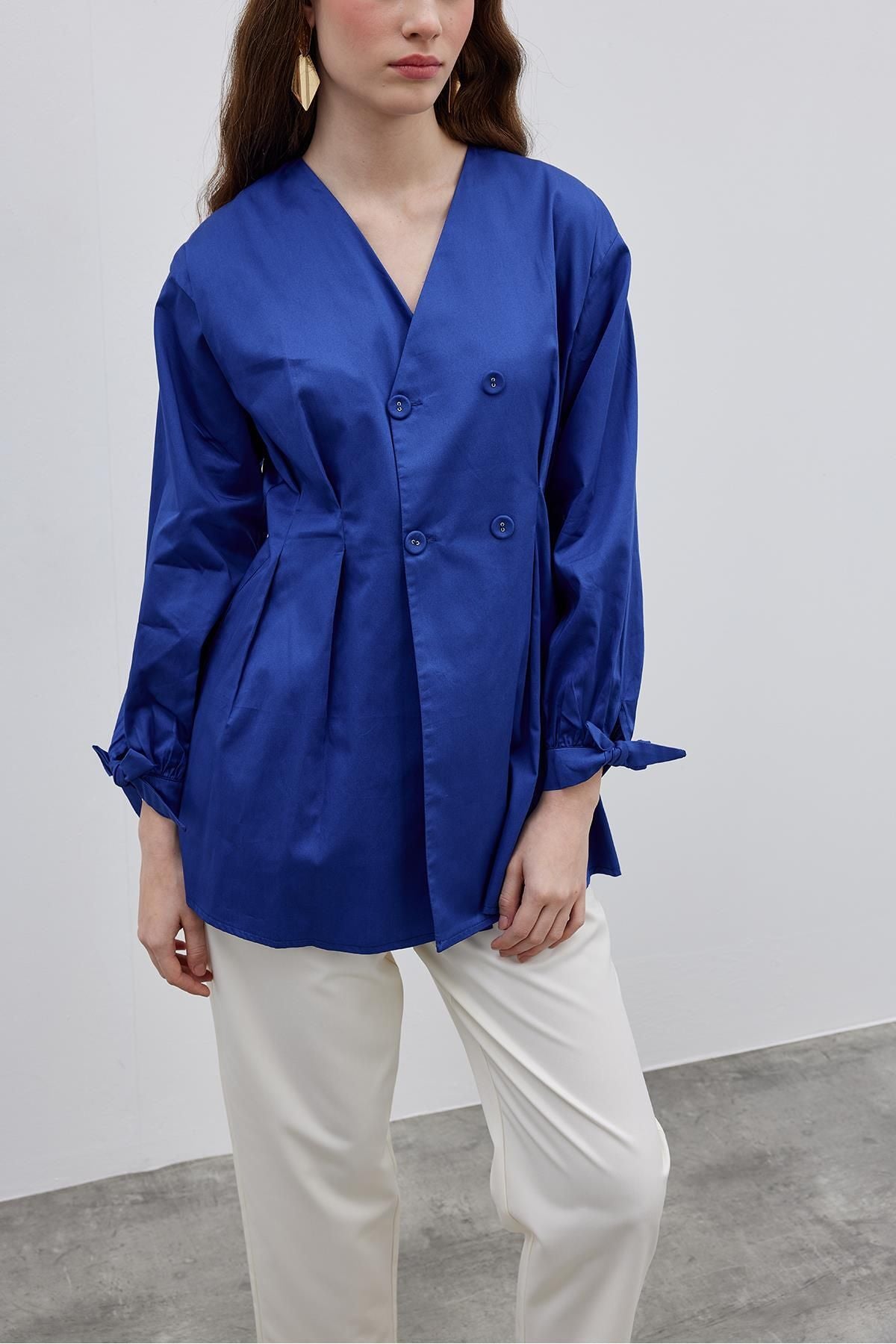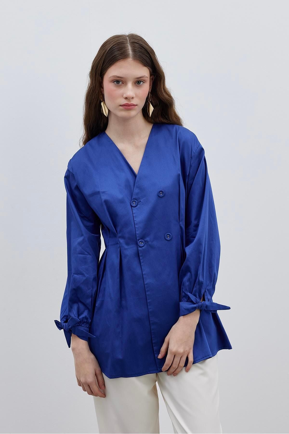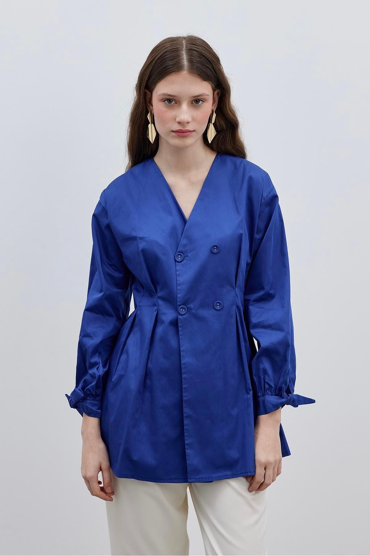 Darted Women's Shirt Jacket Navy Blue
