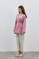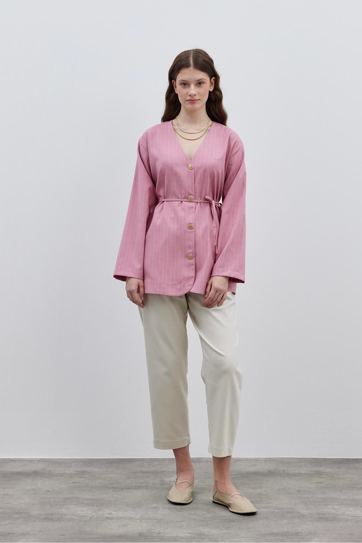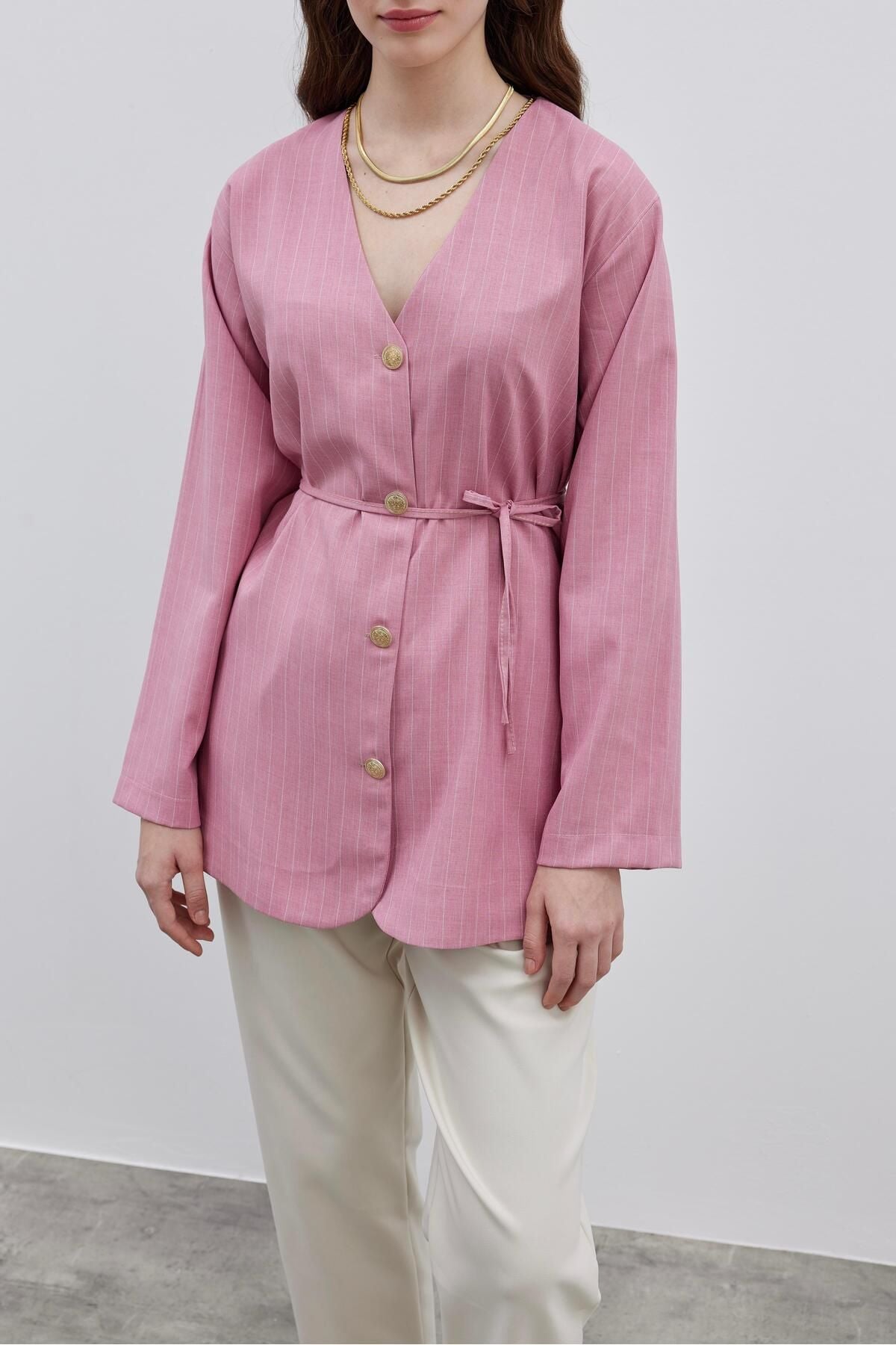 V-Neck Striped Women's Jacket Pink