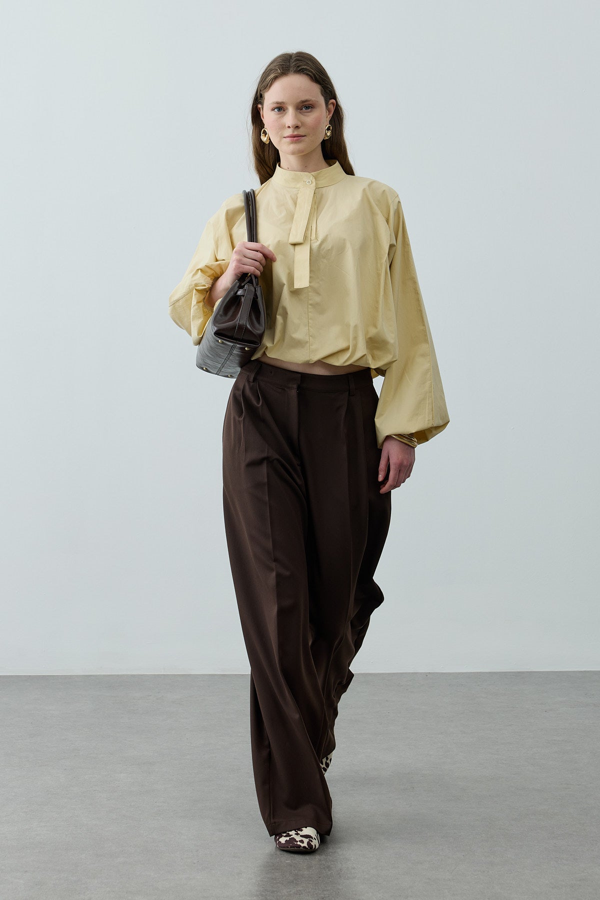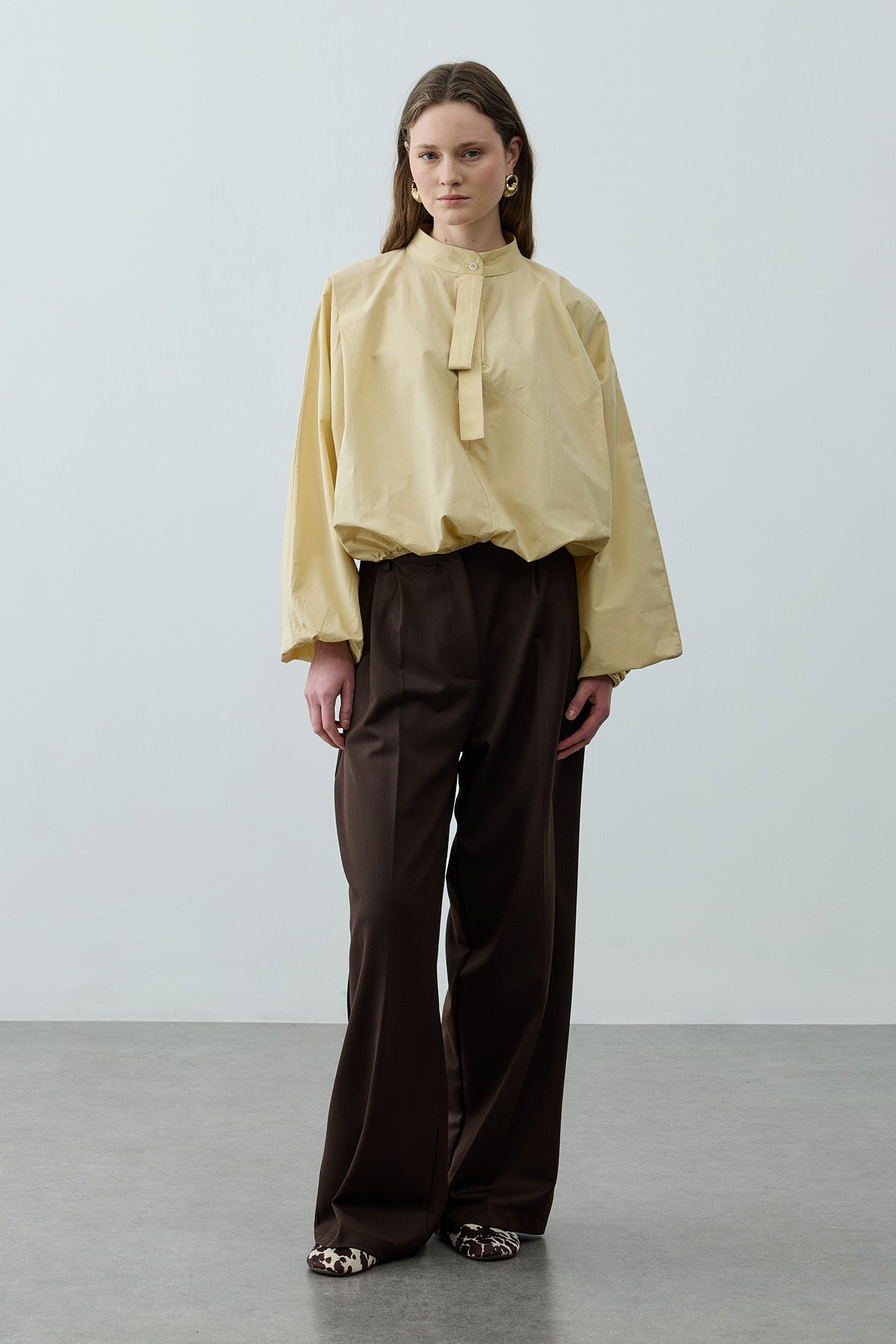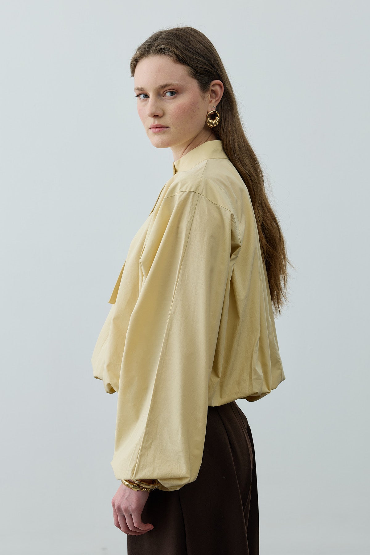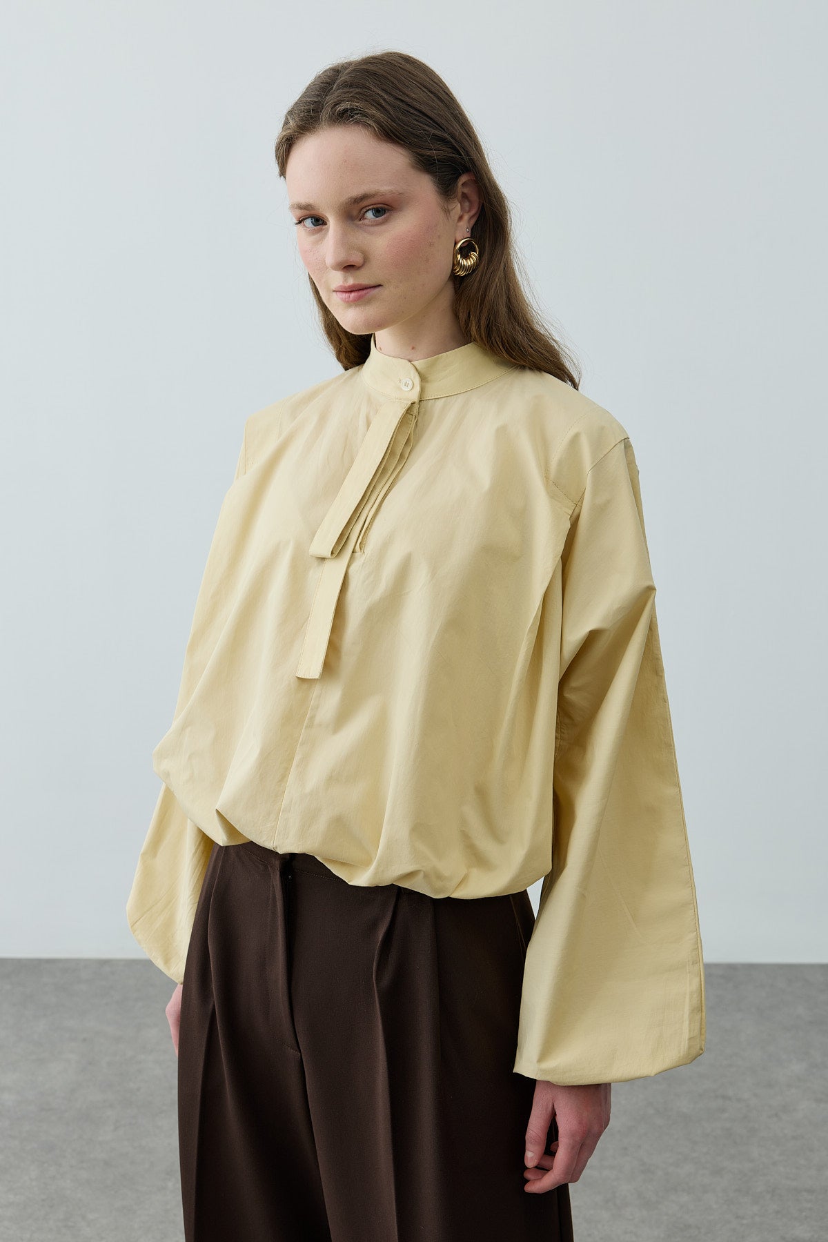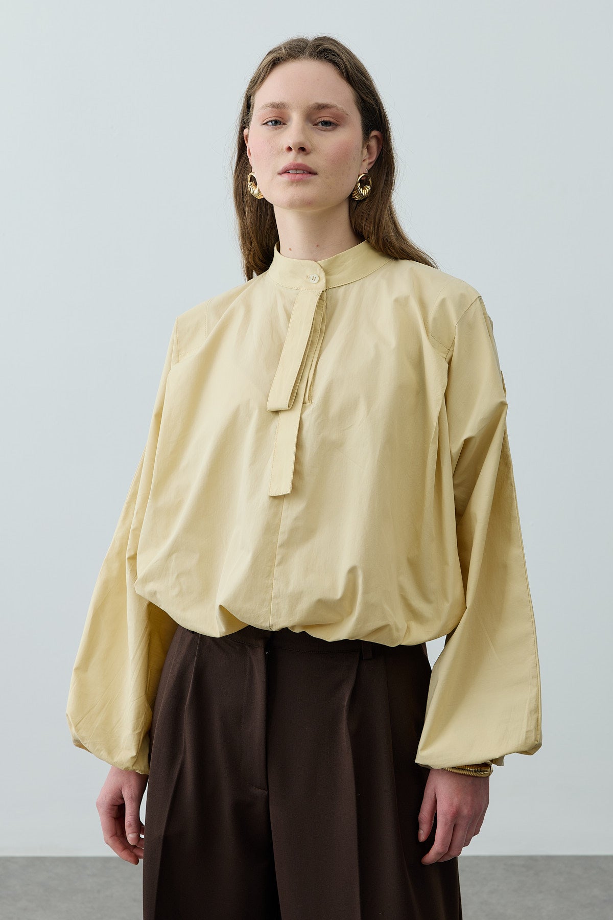 Poplin Büzgülü Gömlek Sarı