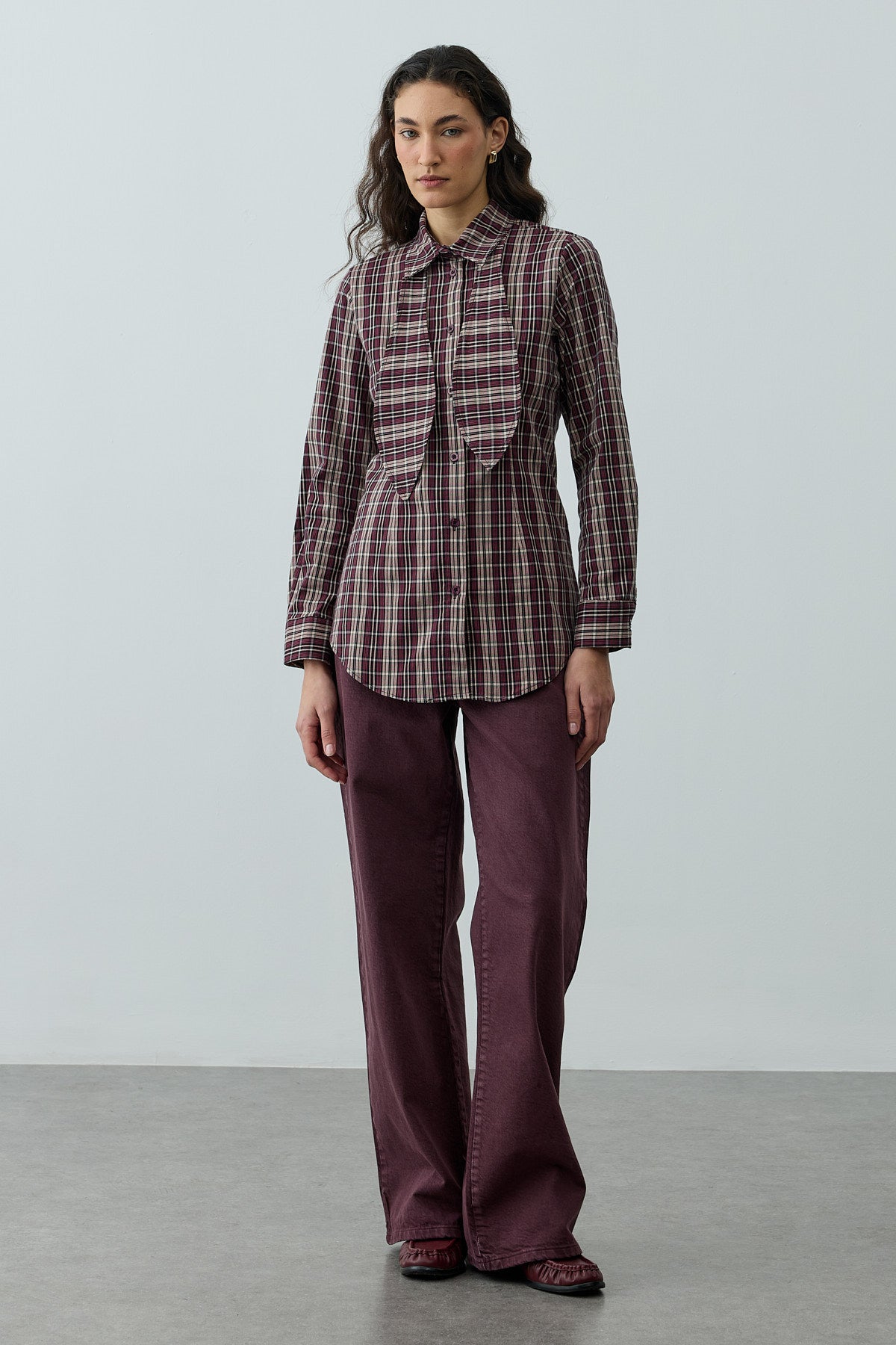 Seyyar Fularlı Ekose Gömlek Bordo