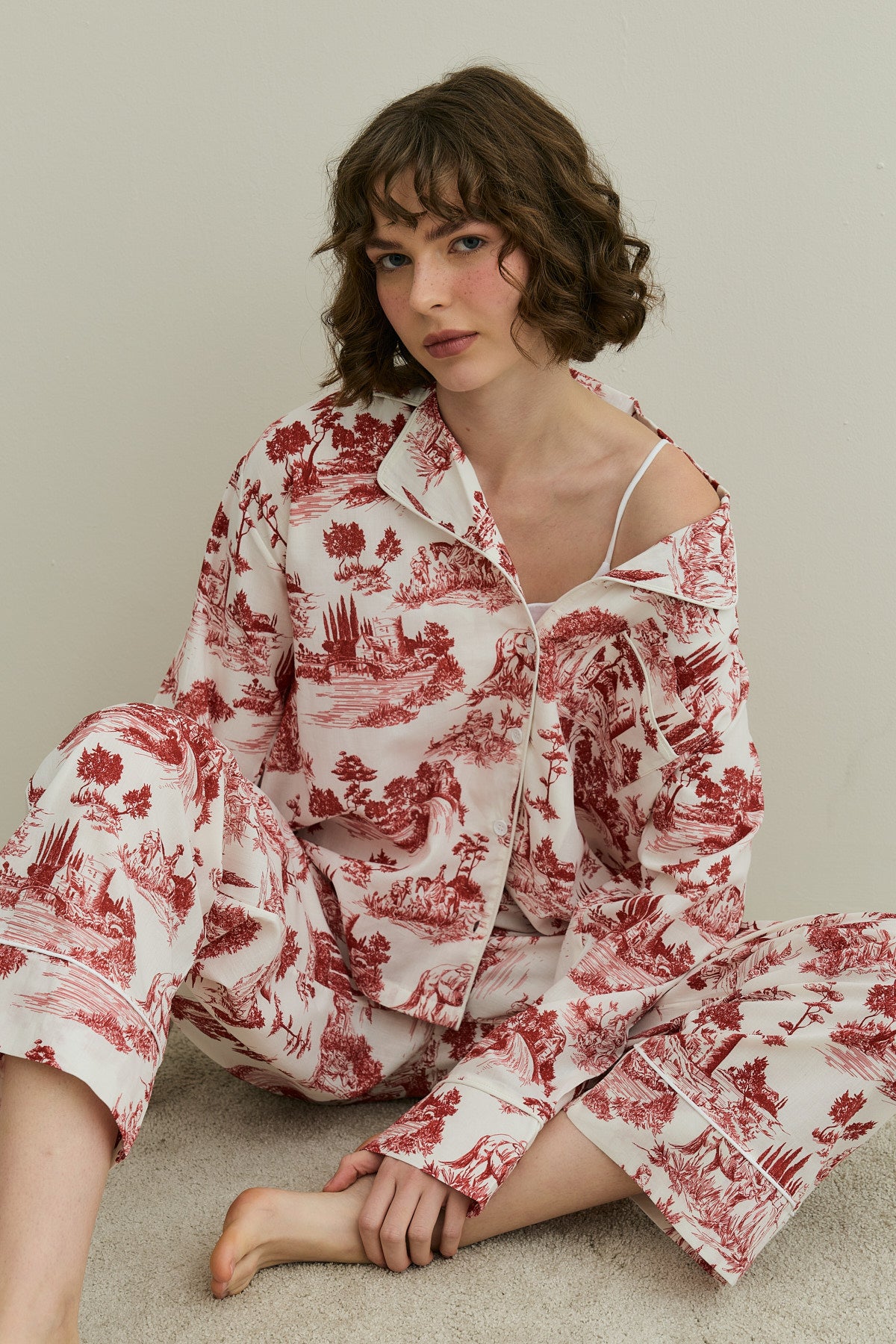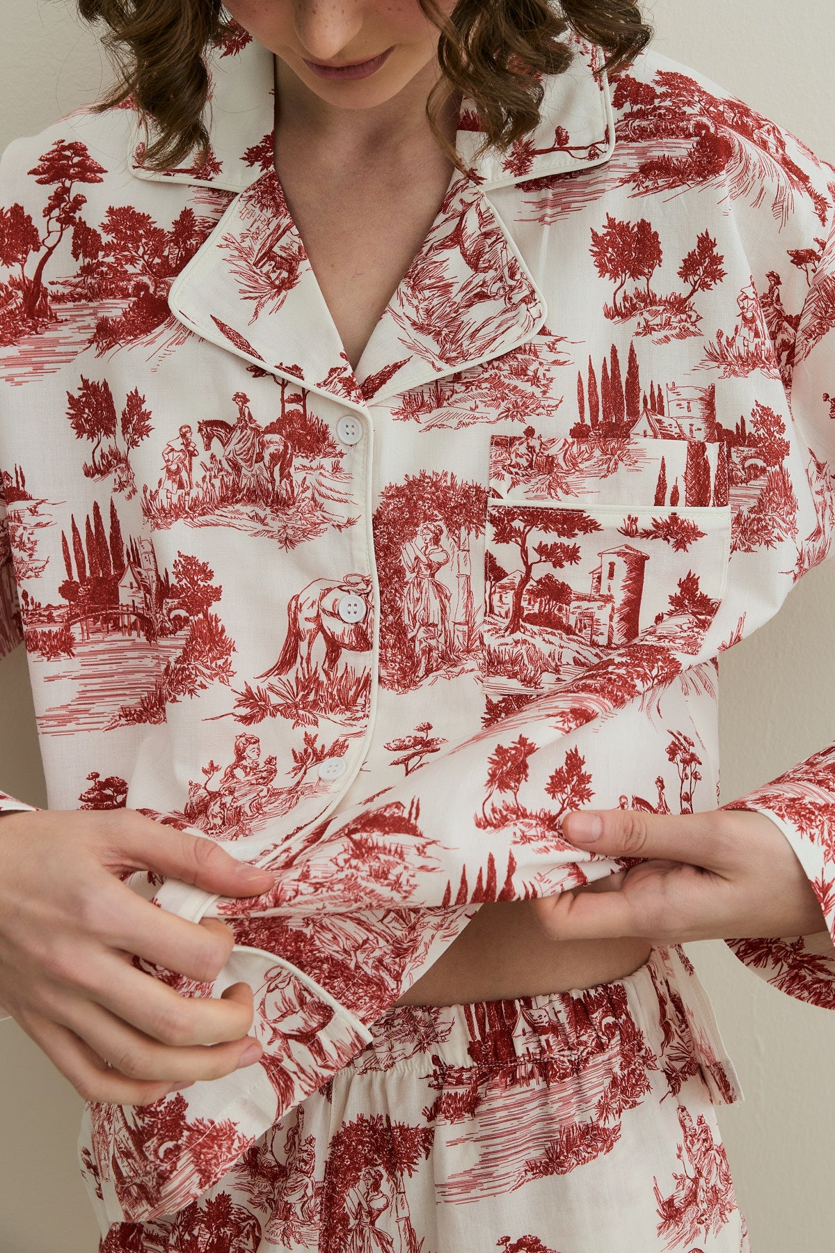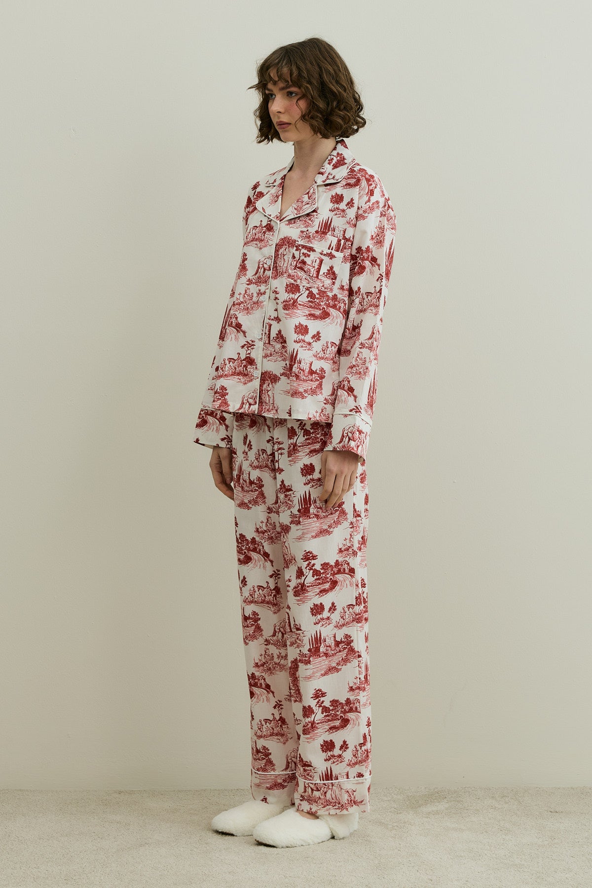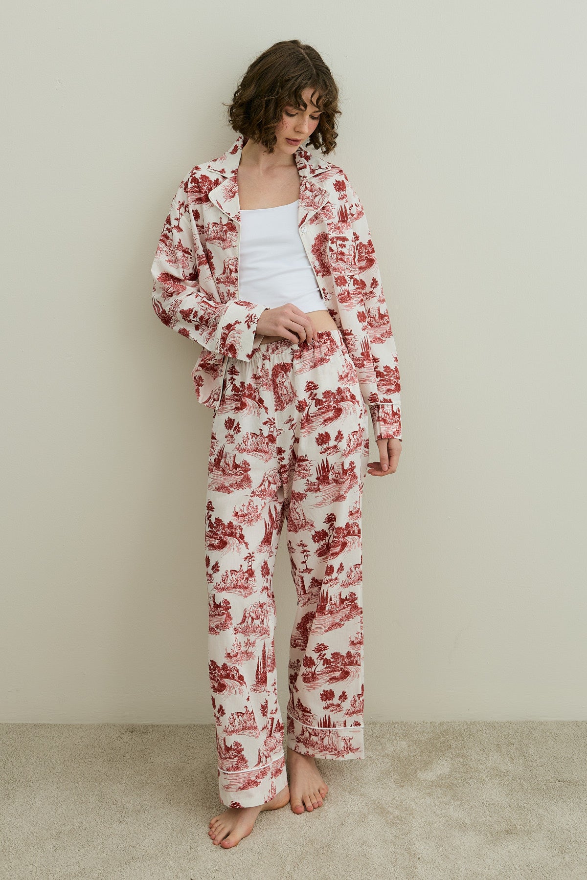 Blanc Desen Gömlekli Pijama Takımı Bordo