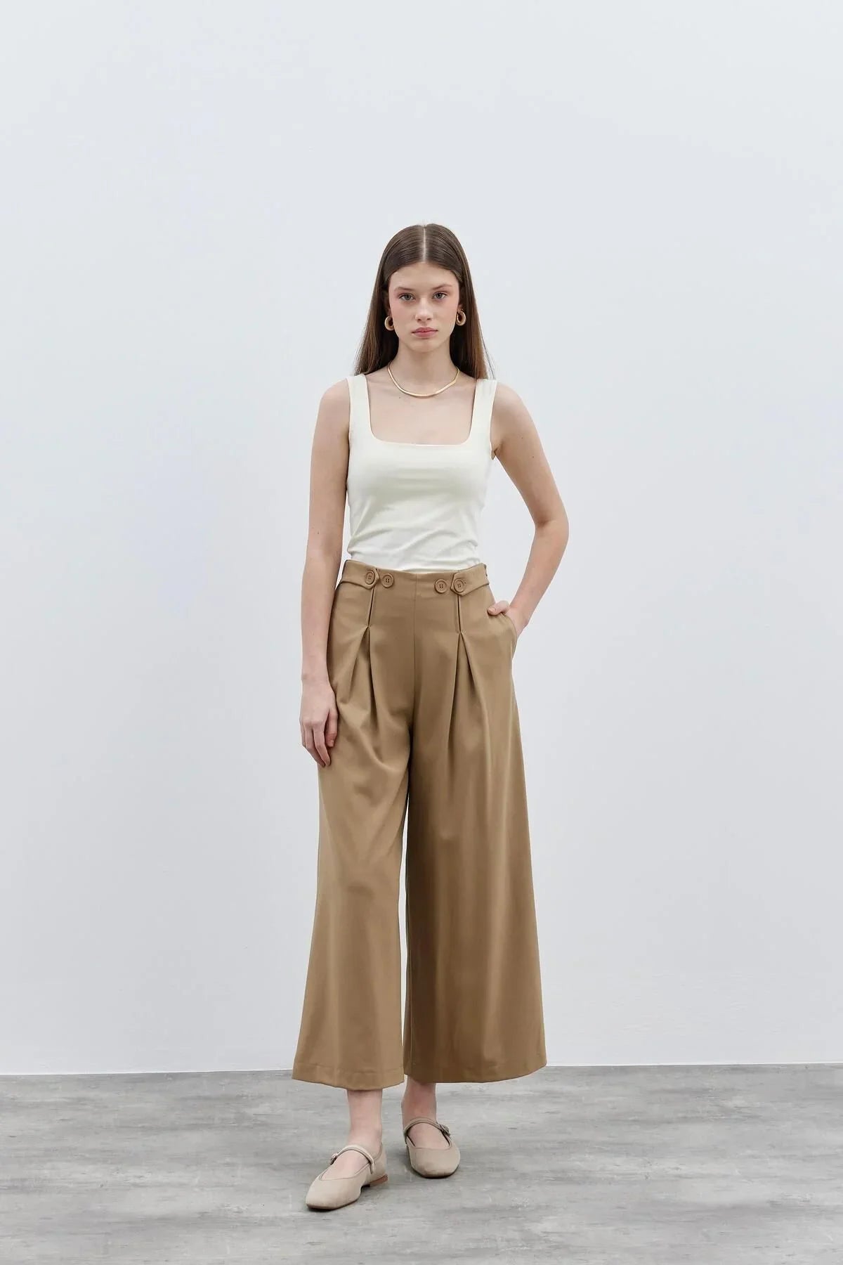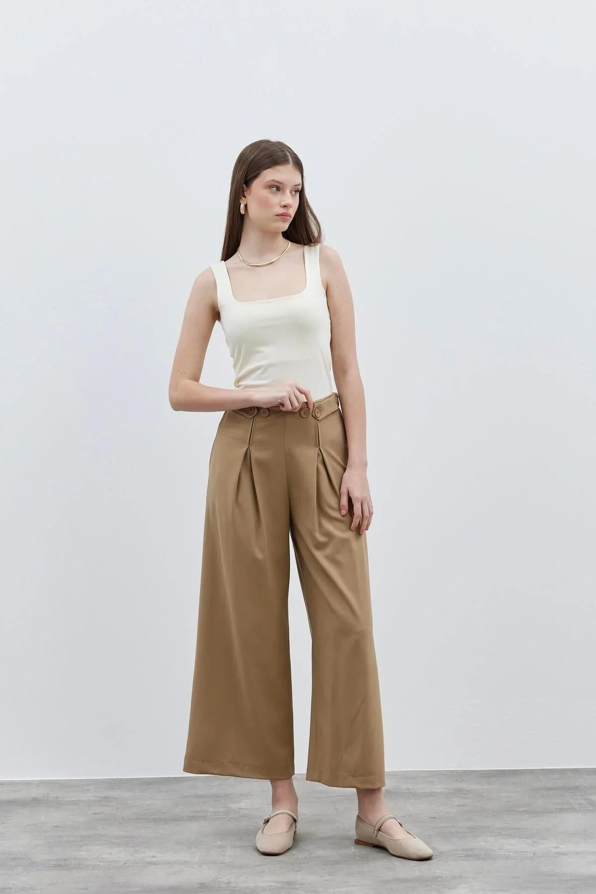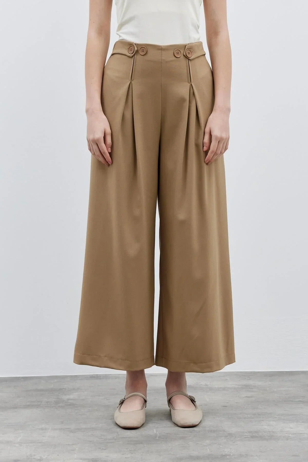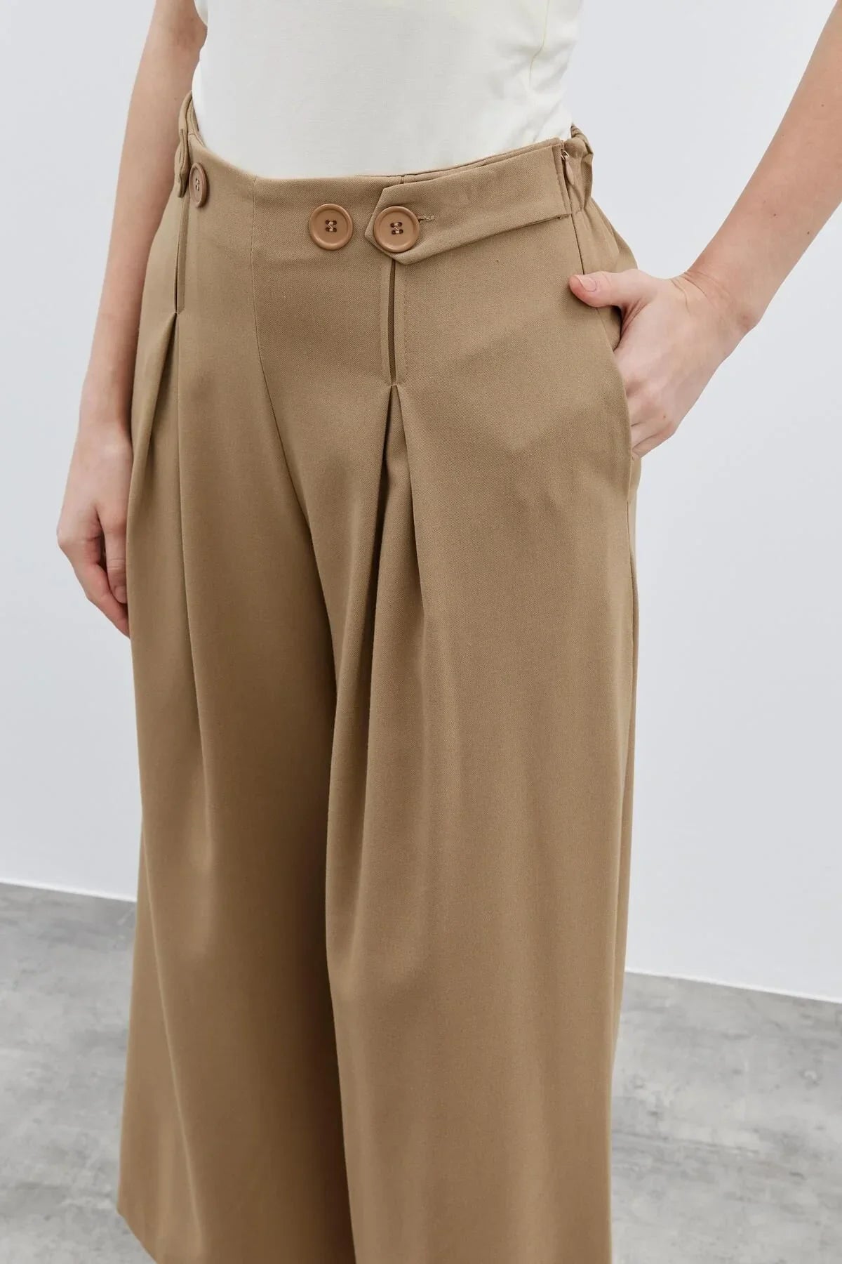 Belt Detailed Women's Trousers Camel