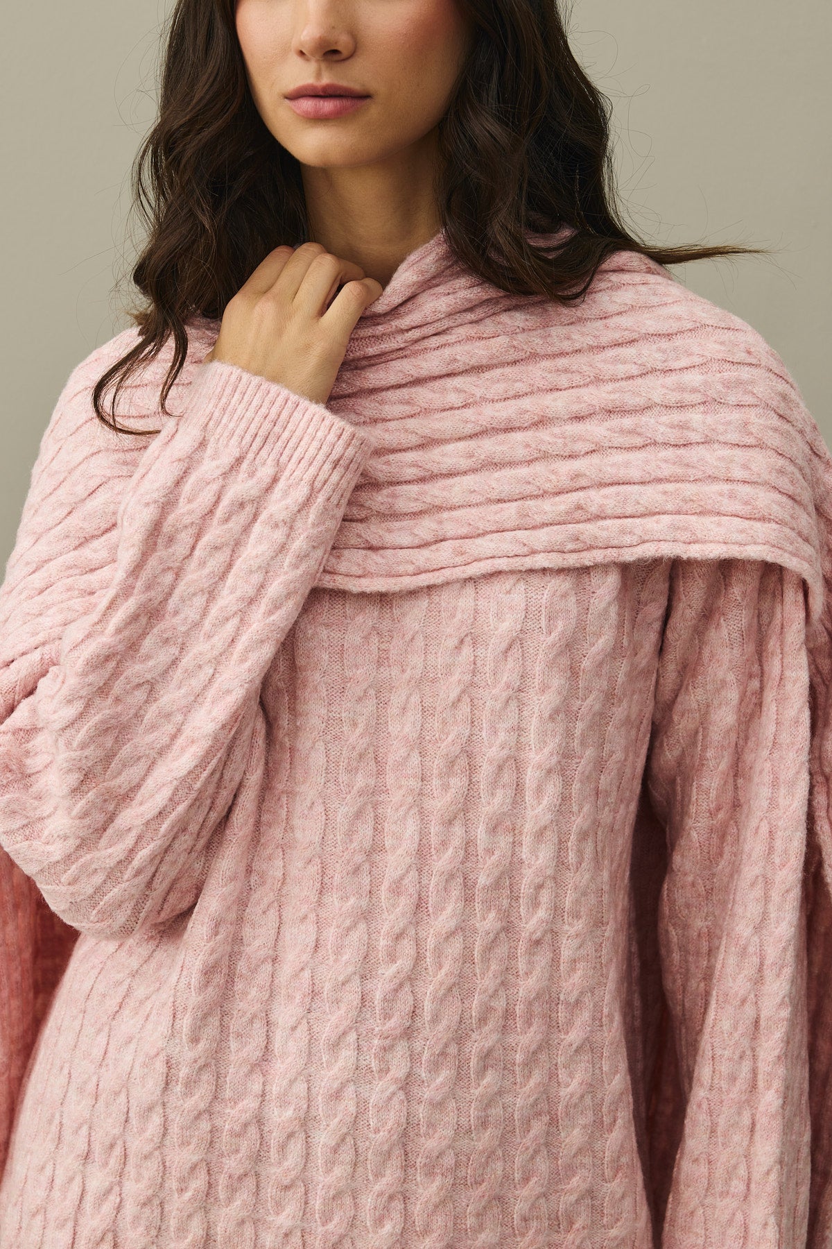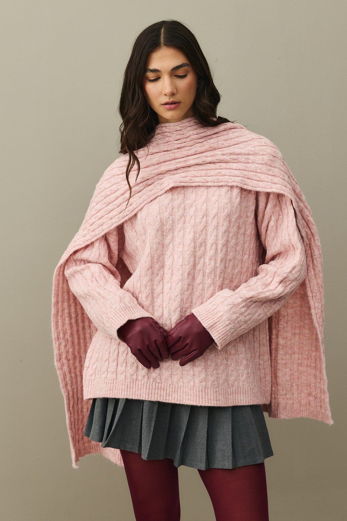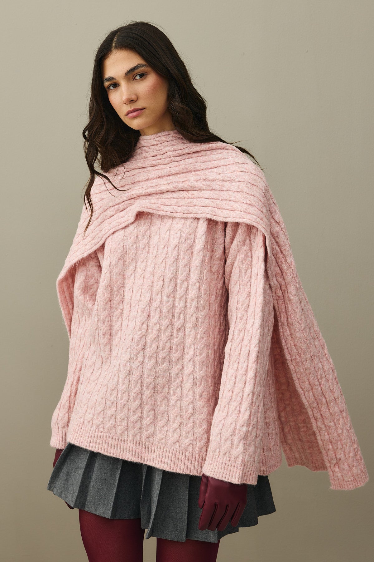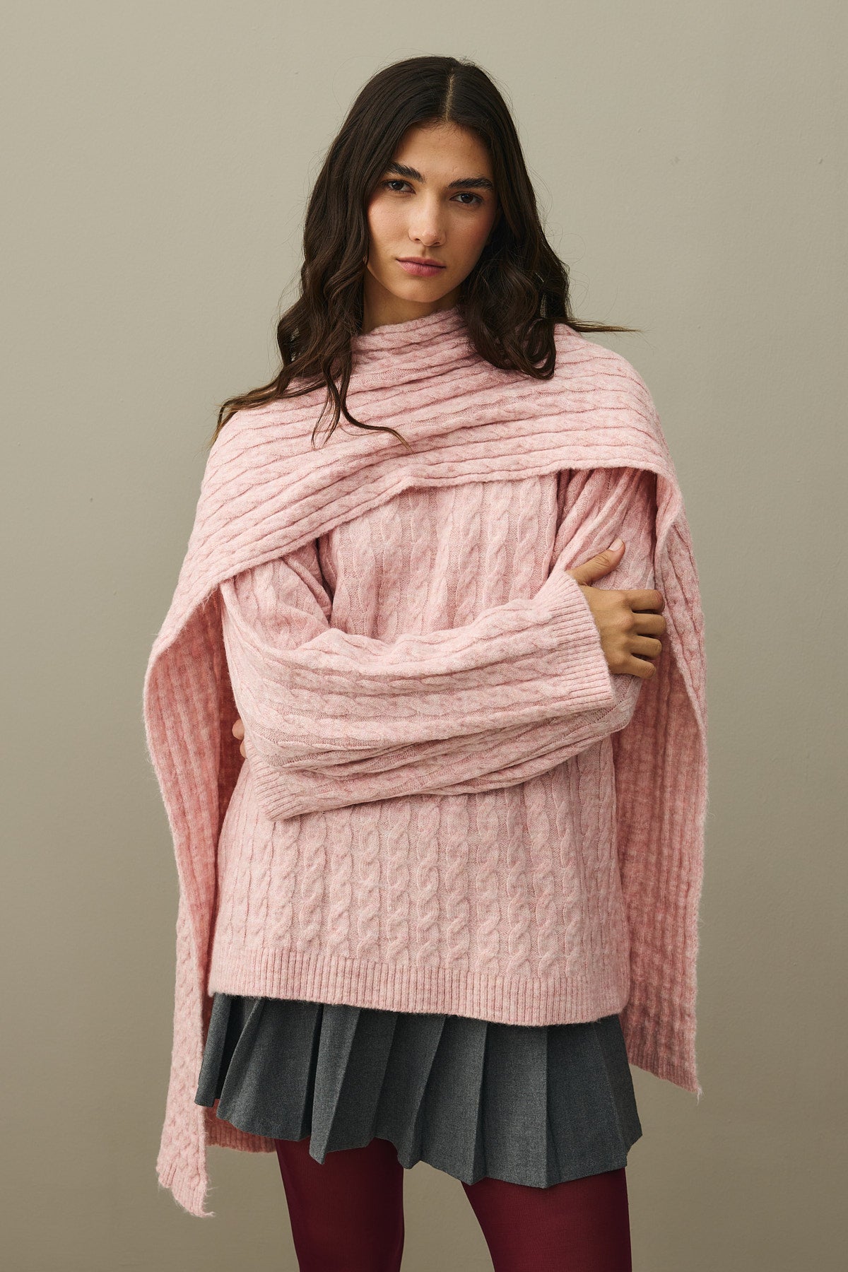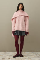 Saç Örgü Atkılı Kazak Pembe