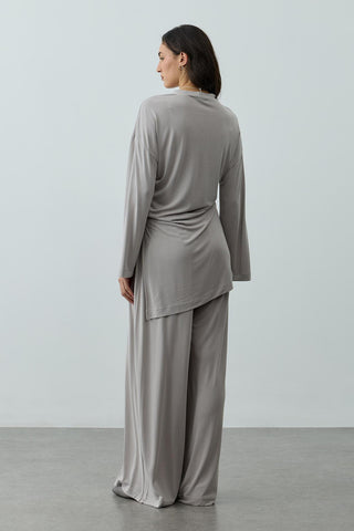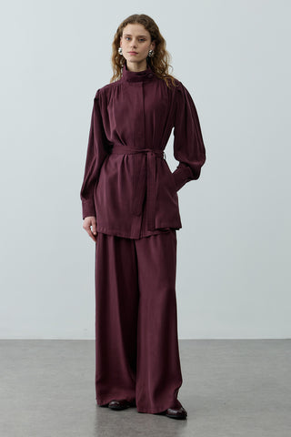Kıraşlı Bağlamalı Pantolonlu Takım Mürdüm