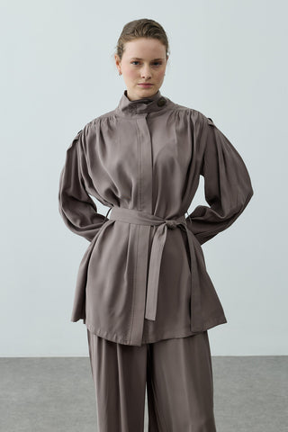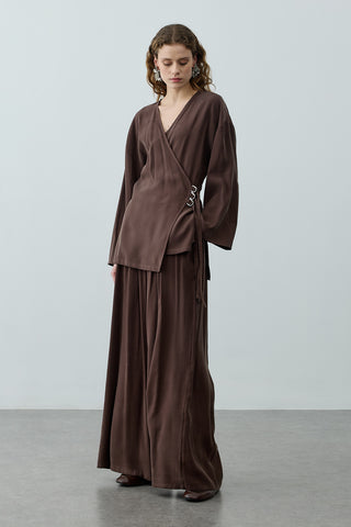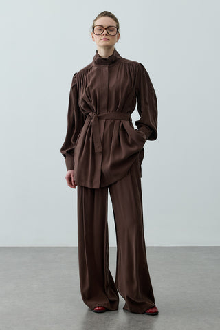 Kıraşlı Bağlamalı Pantolonlu Takım Kahverengi