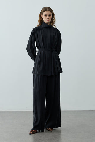 Kıraşlı Bağlamalı Pantolonlu Takım Siyah