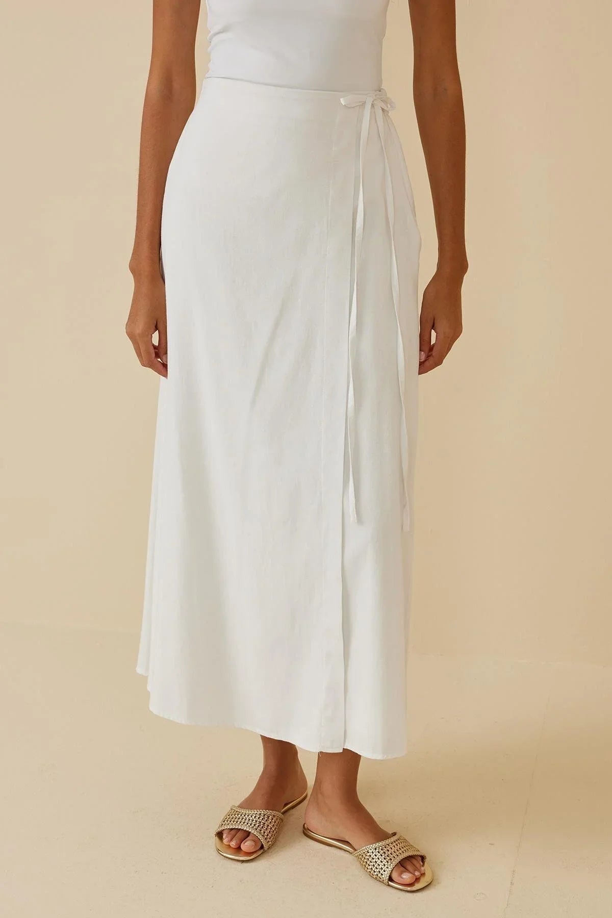 Wrapped Linen Skirt White