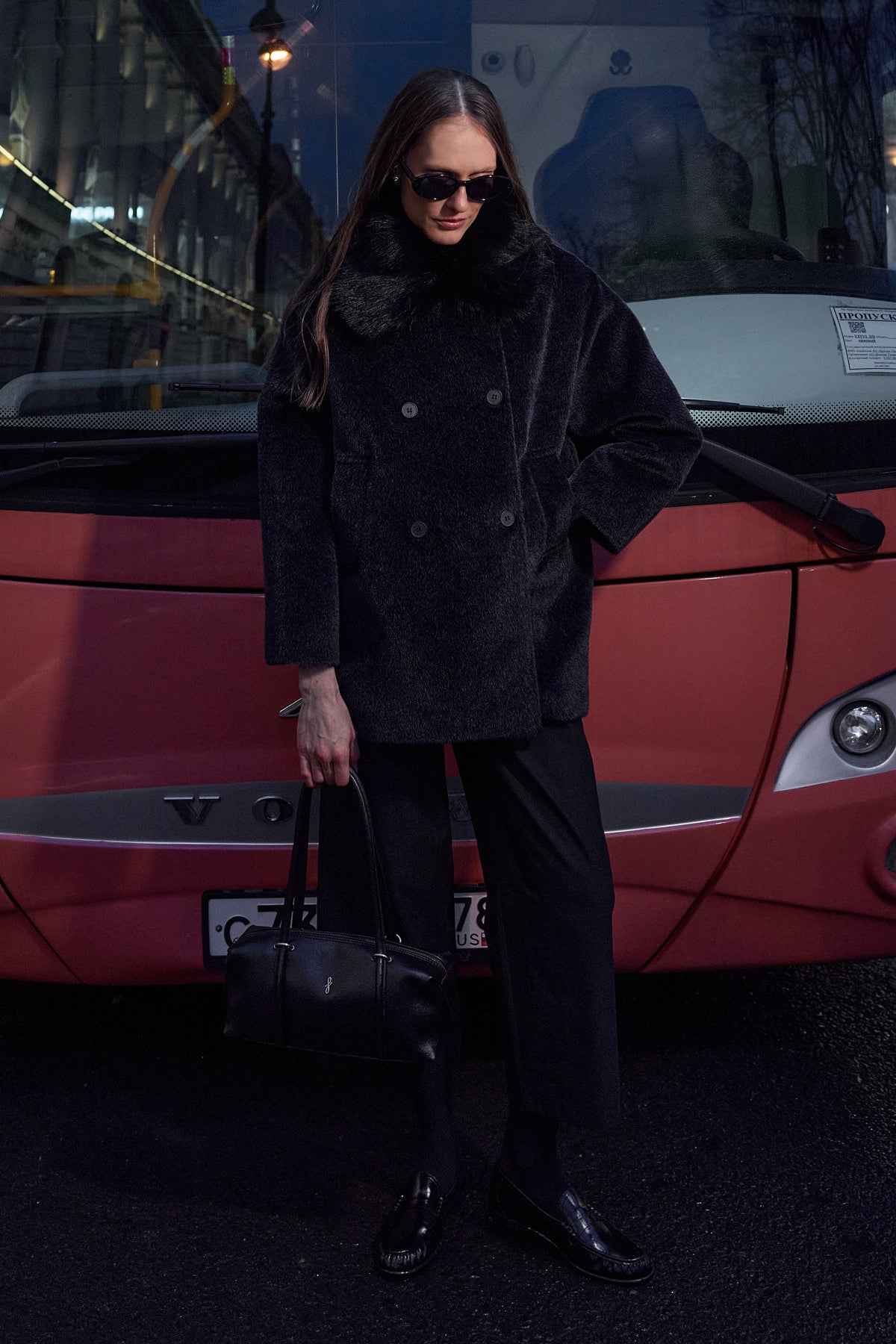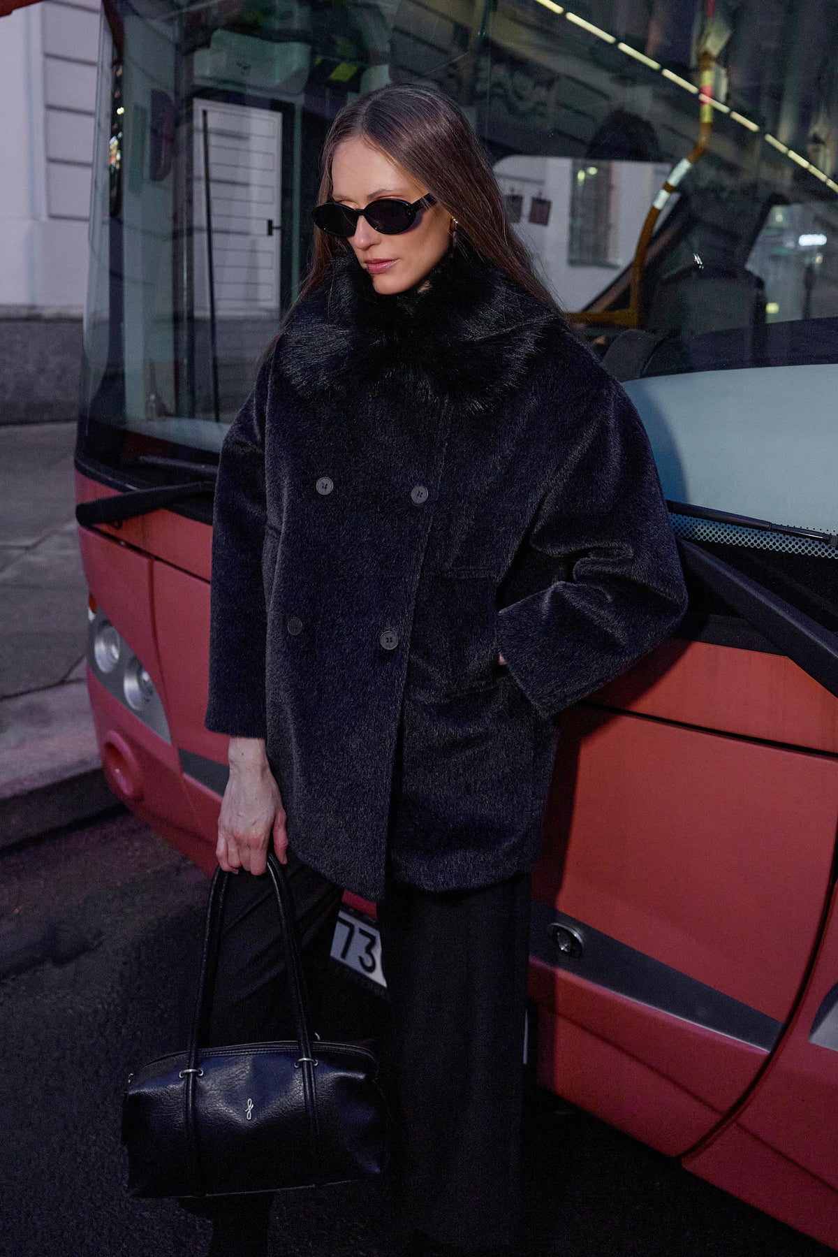 Çıkarılabilir Kürklü Bomb Kaban Siyah