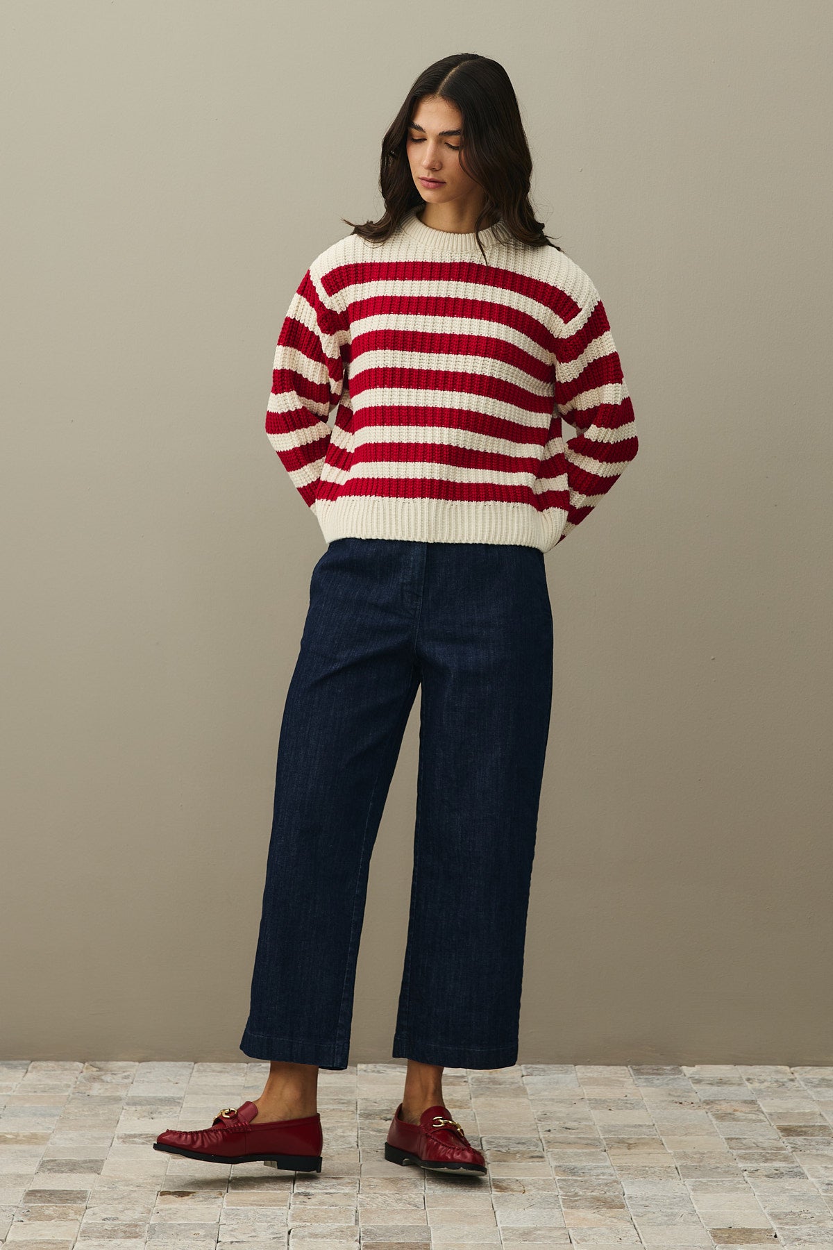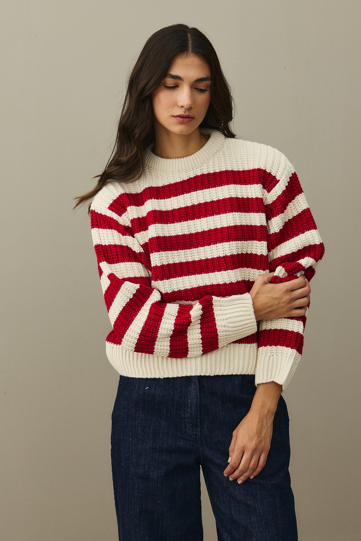 Striped Chunky Knit Sweater Red