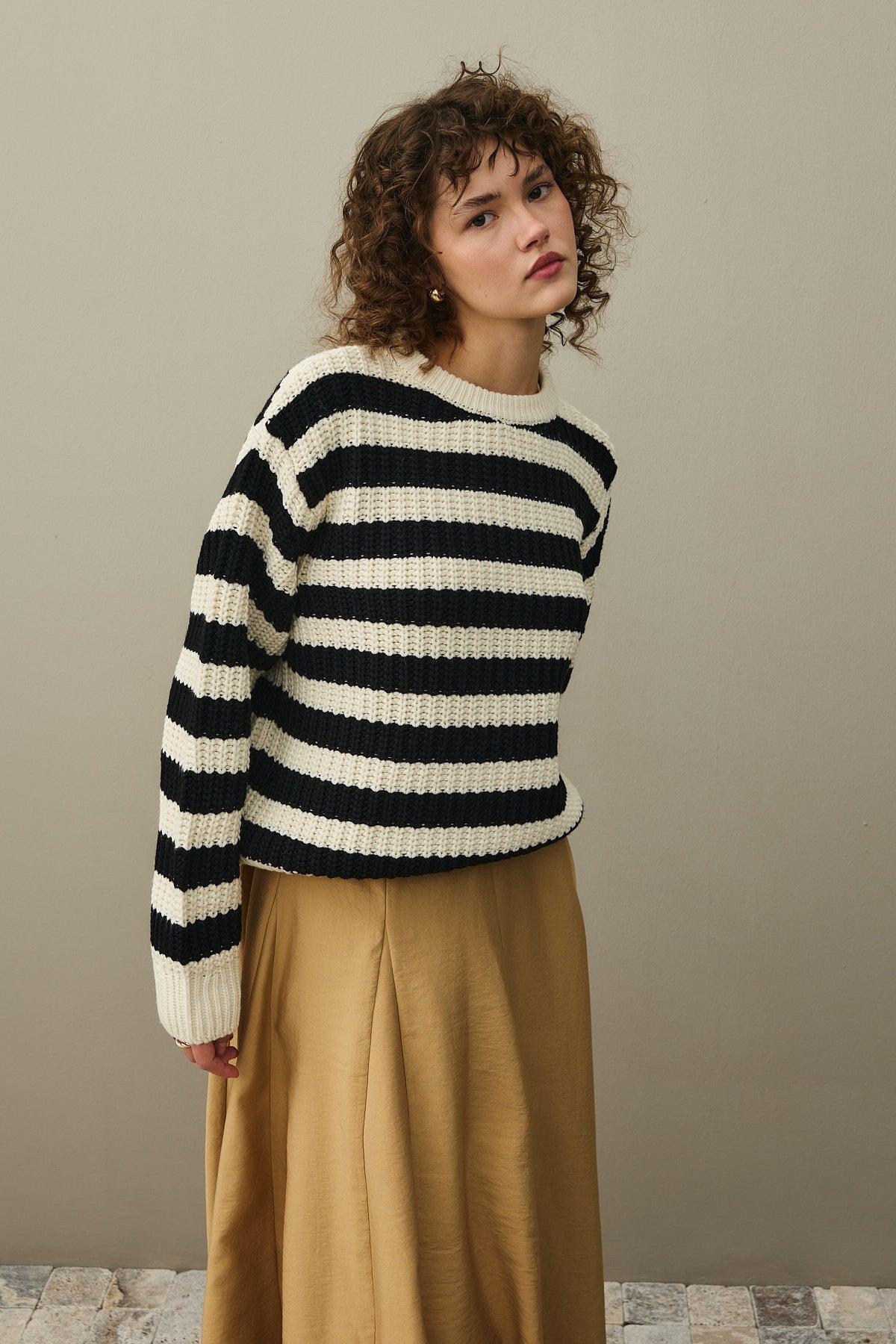 Thank you, we have now received and recorded your request to be notified should Striped Chunky Knit Sweater Black be restocked.