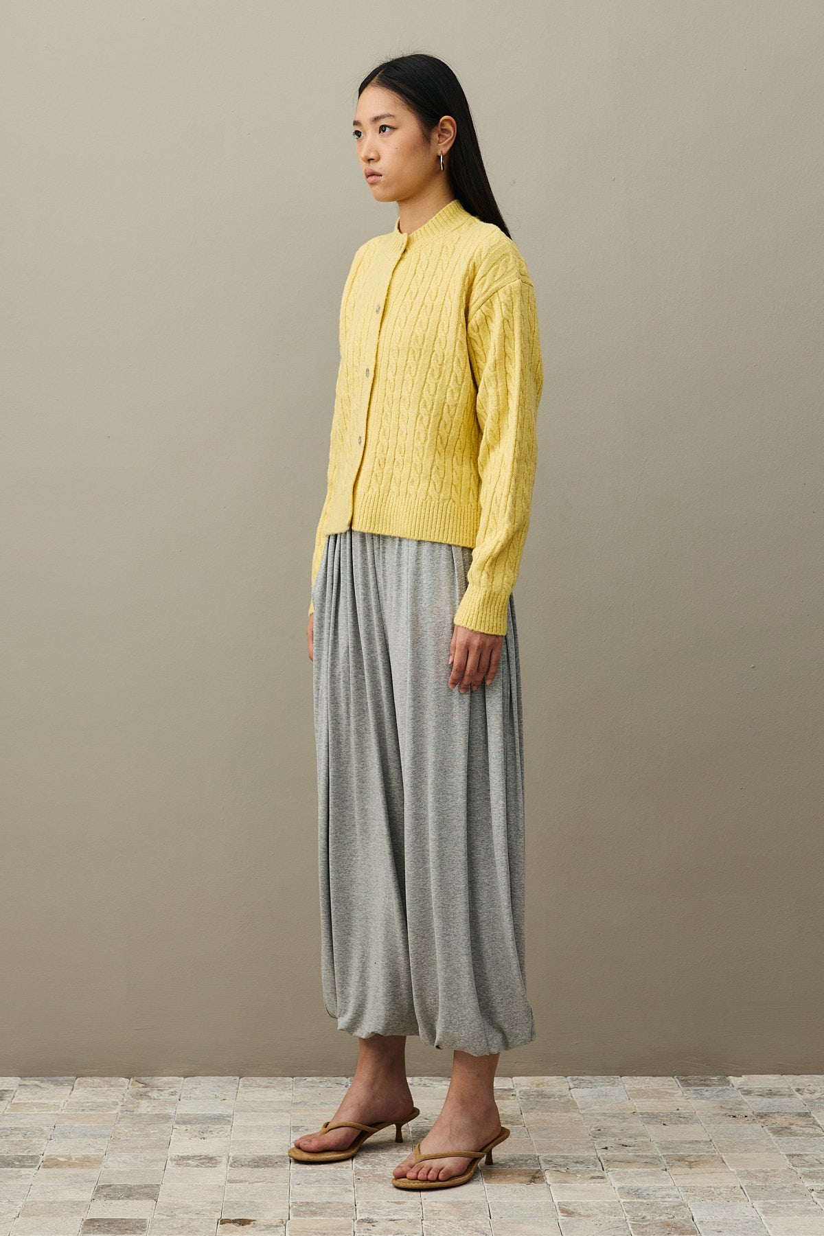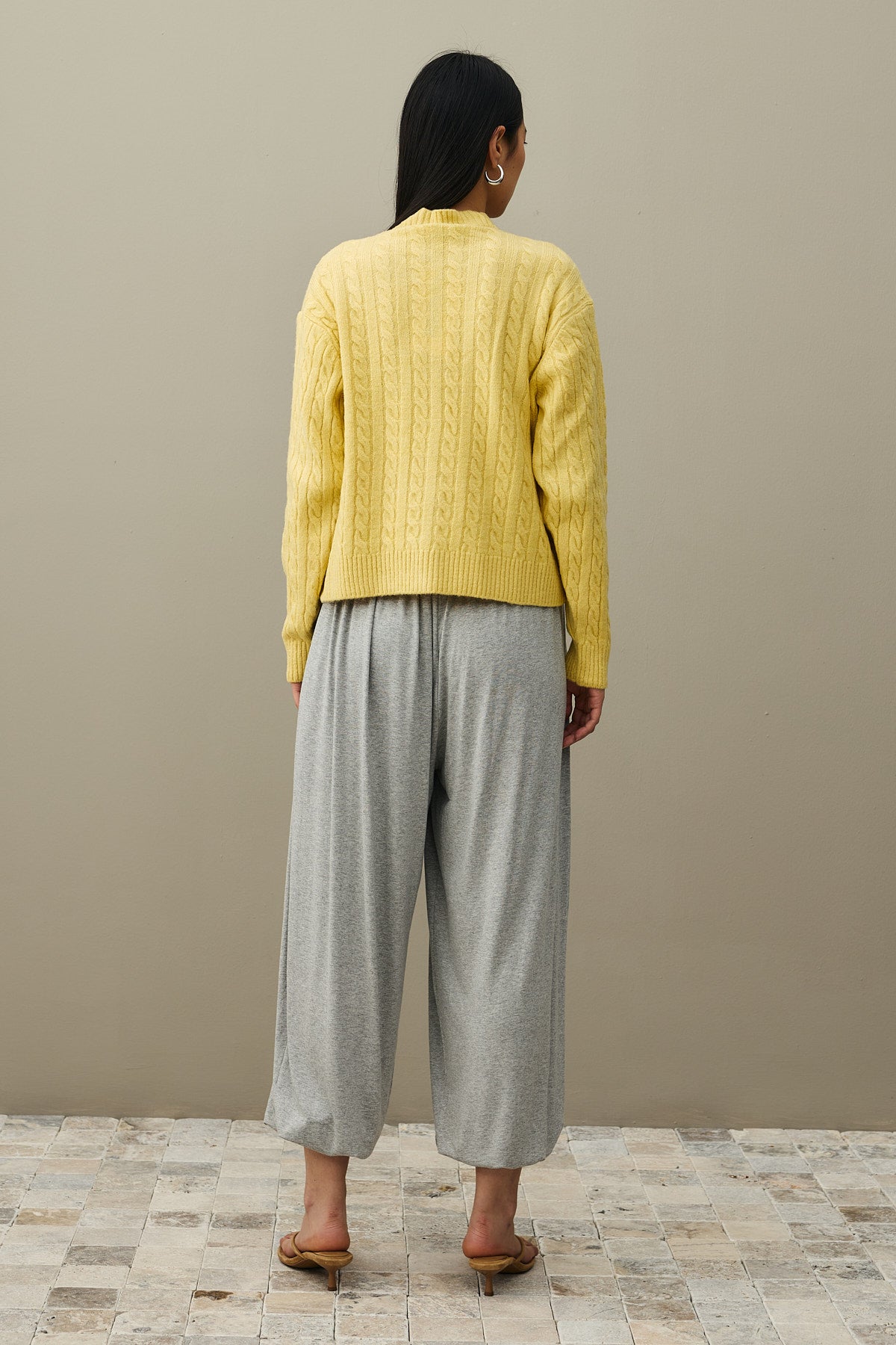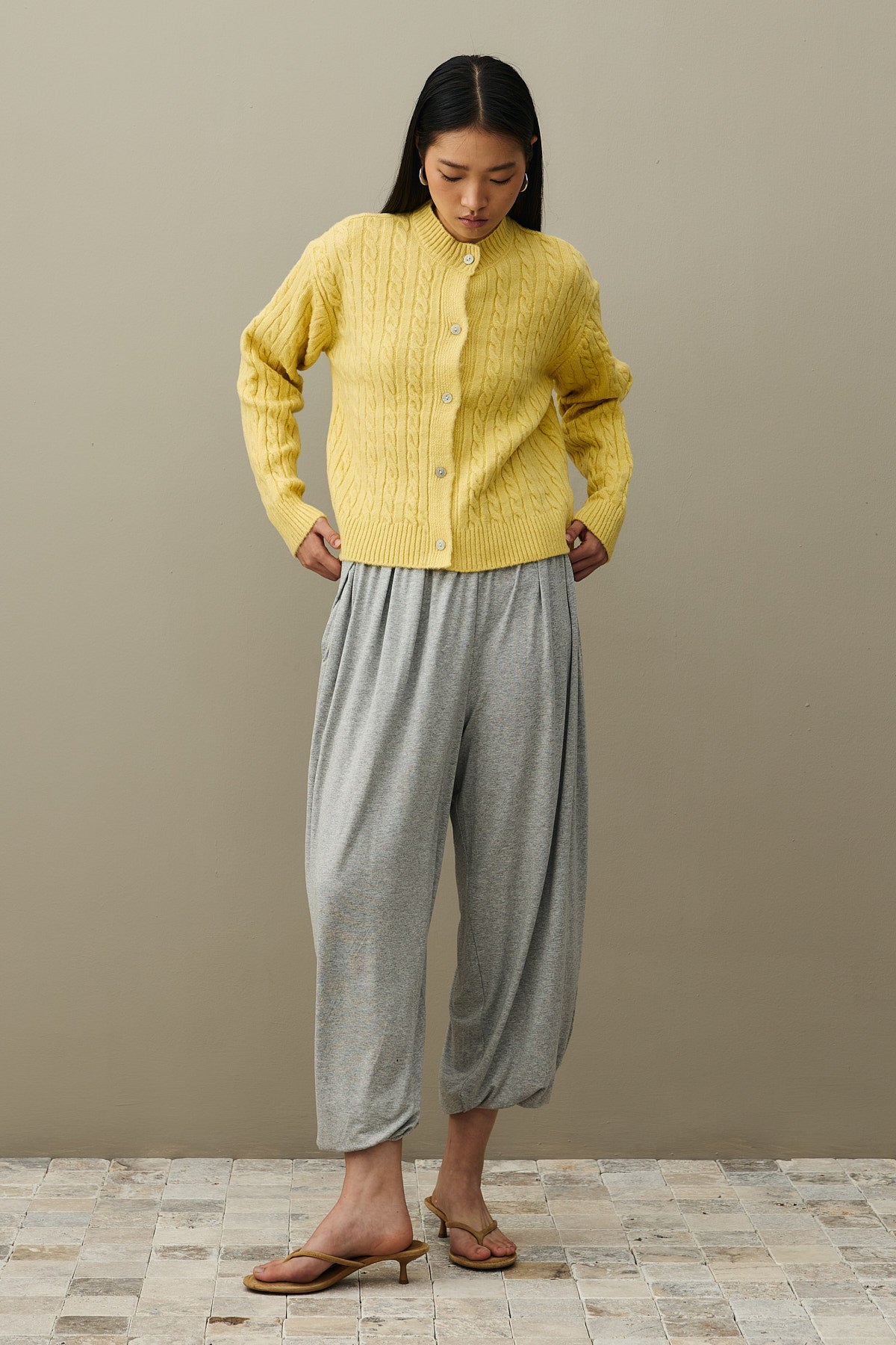Tiftik karışımlı ipli trikodan, saç örgülü, bisiklet yakalı, uzun kollu, önü düğme kapamalı hırka