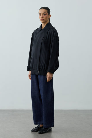 Işıltılı Baggy Straight Fit Denim Pantolon Lacivert