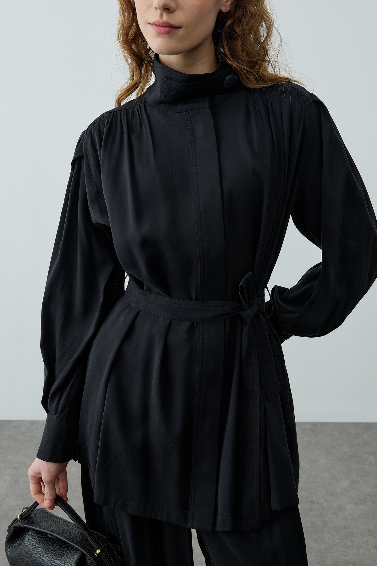 Dik Yaka Büzgülü Takım Siyah
