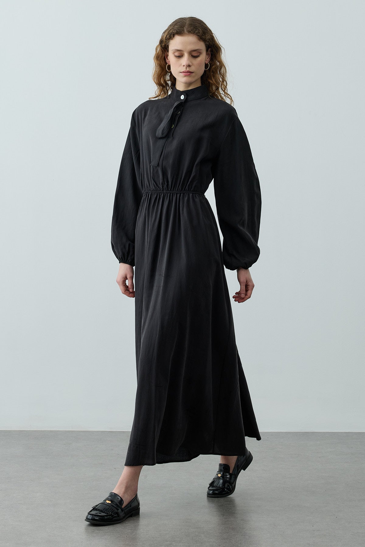 Foulardı Maxi Elbise Siyah