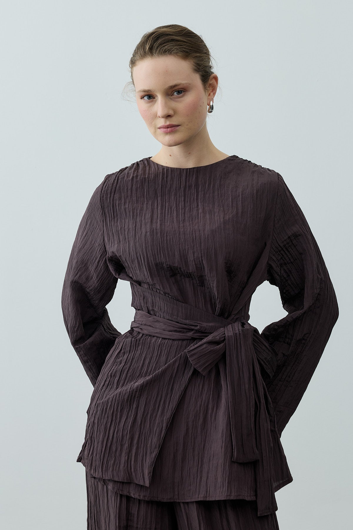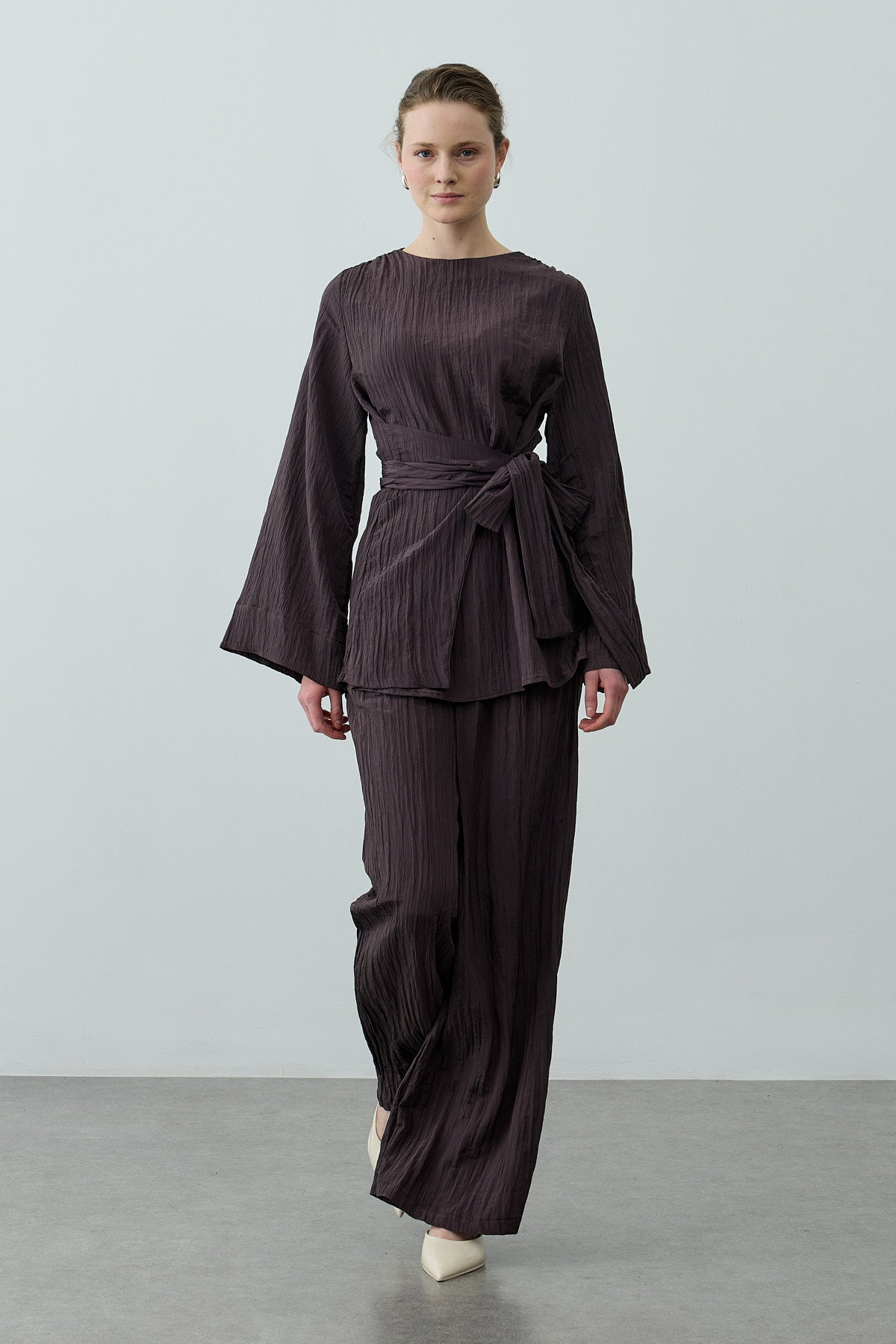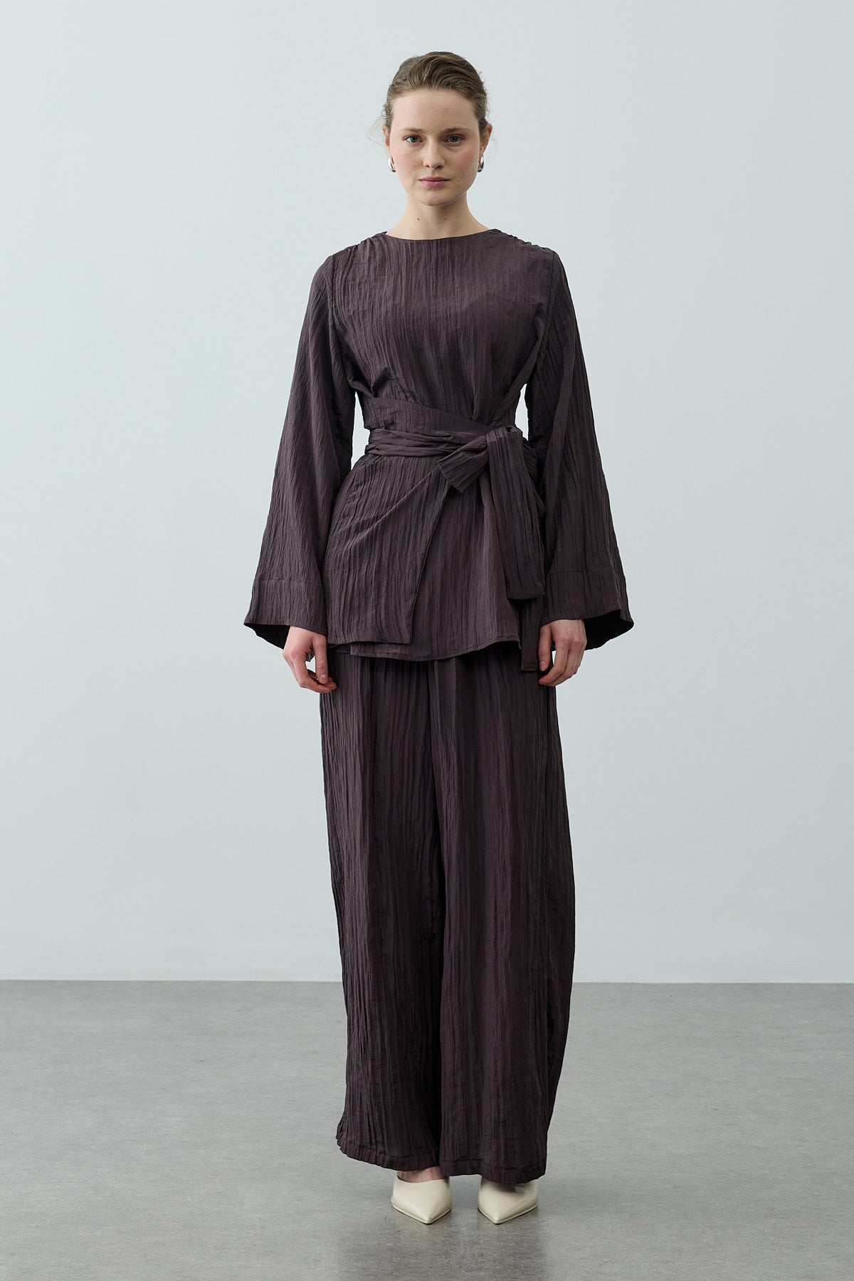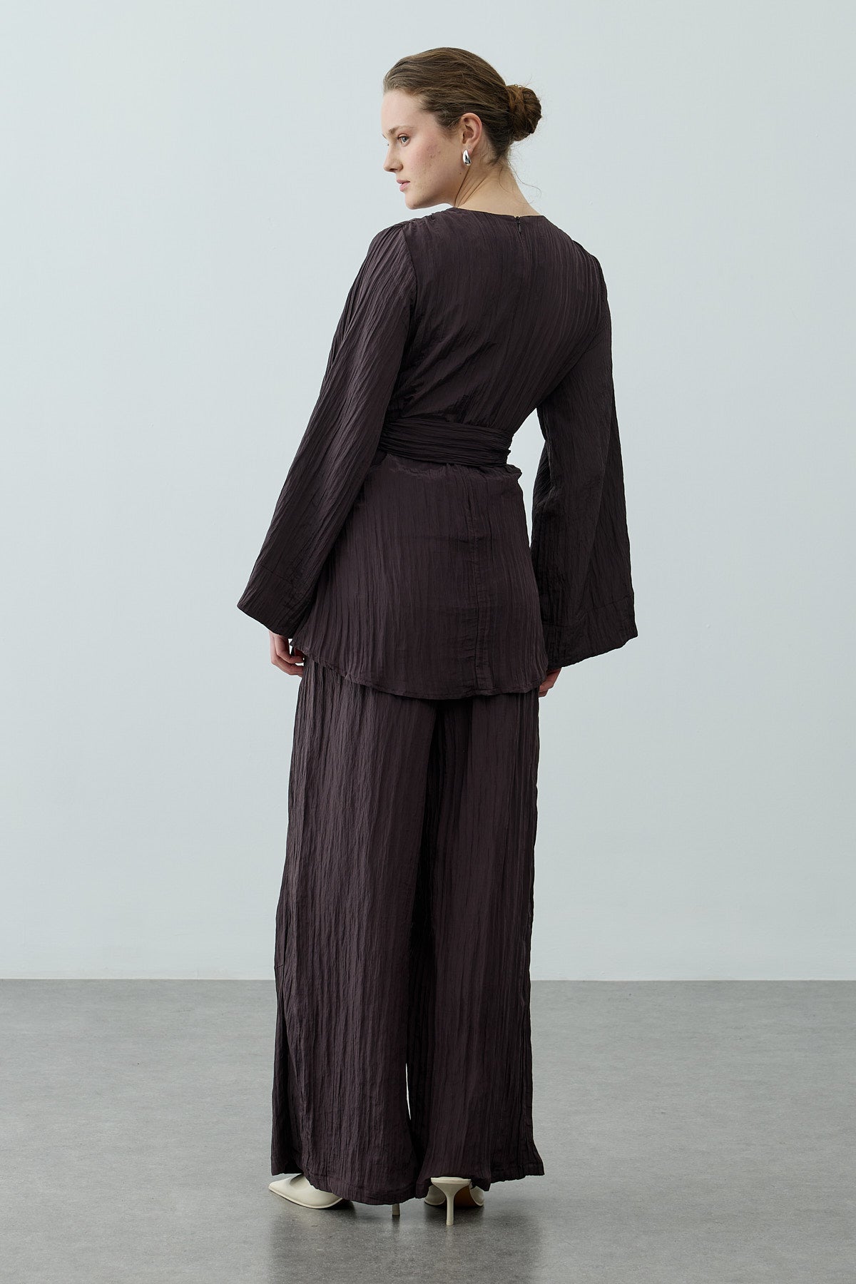 Kıraşlı Bağlamalı Pantolonlu Takım Kahverengi