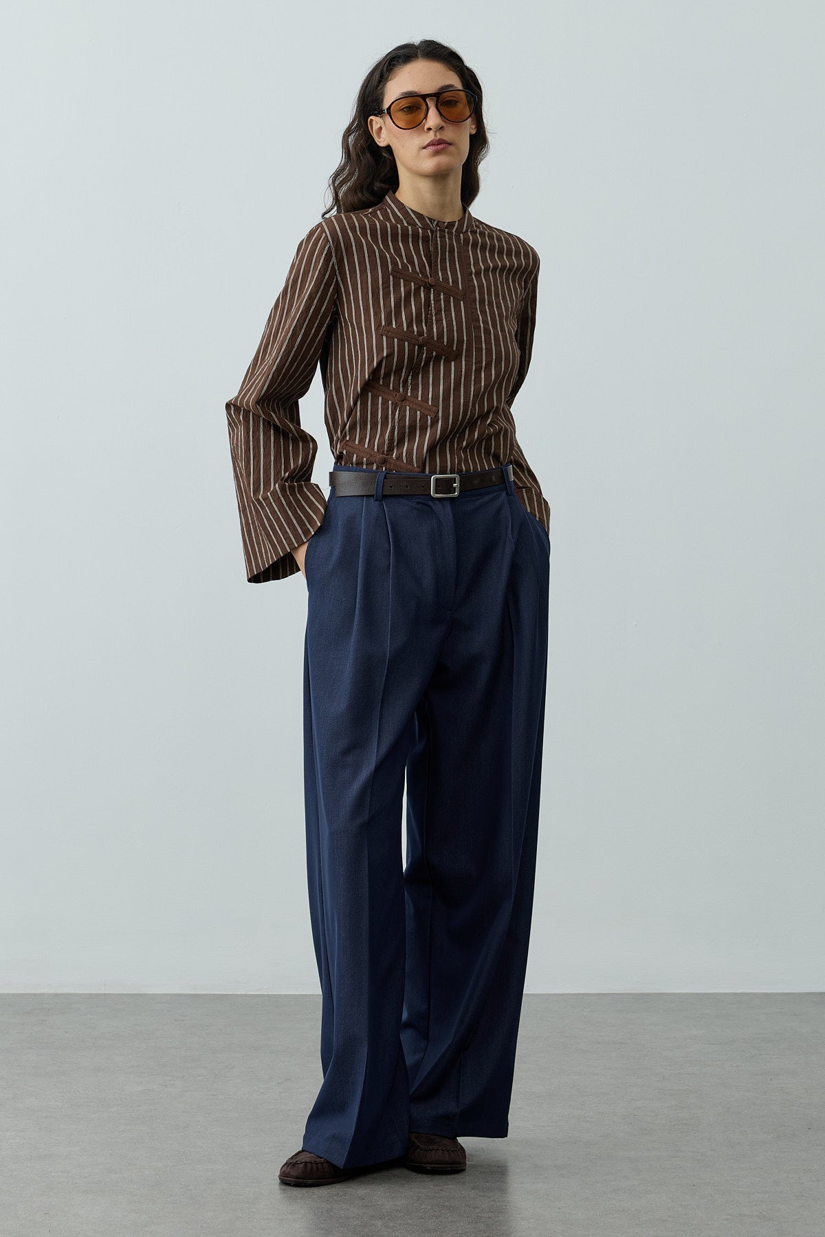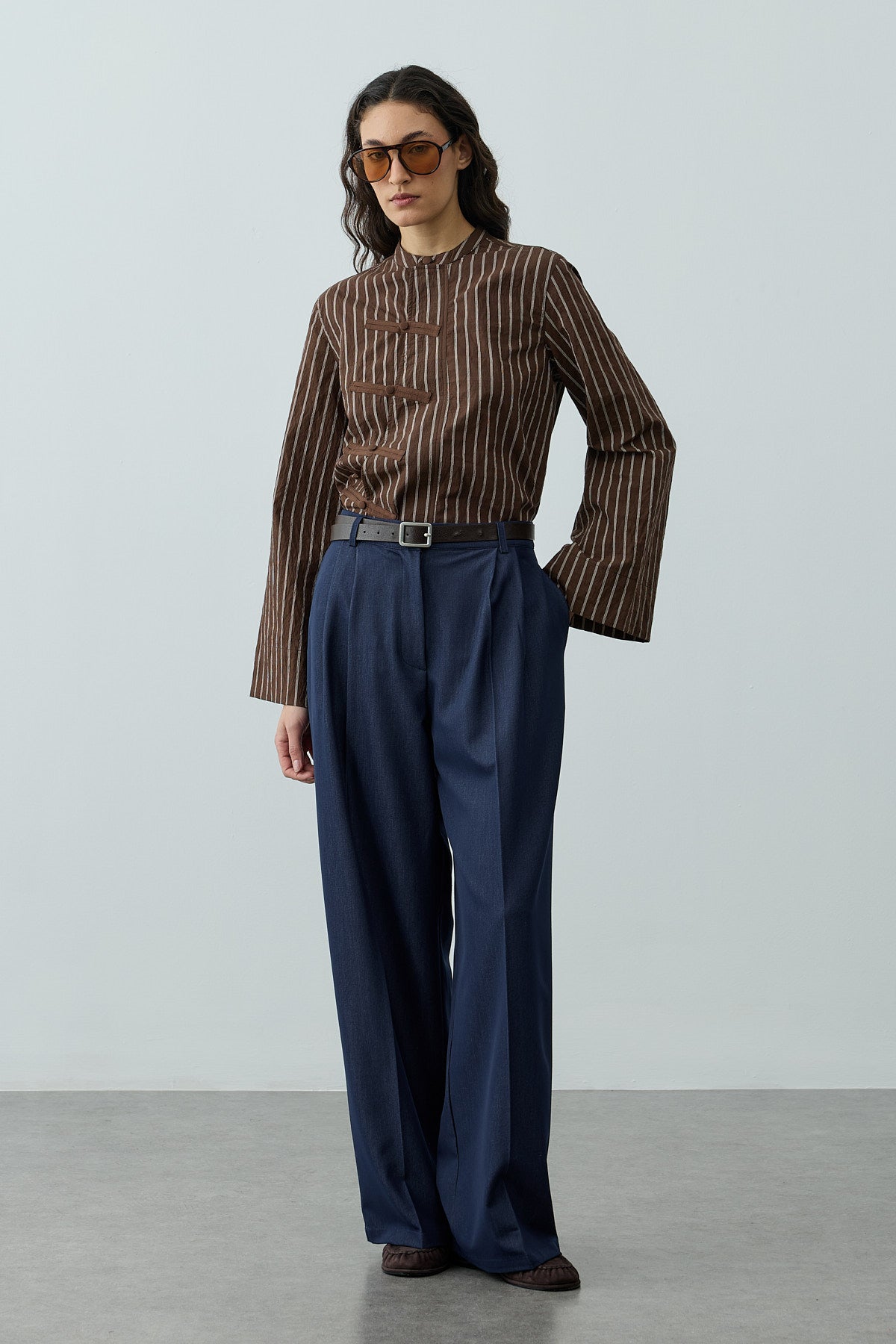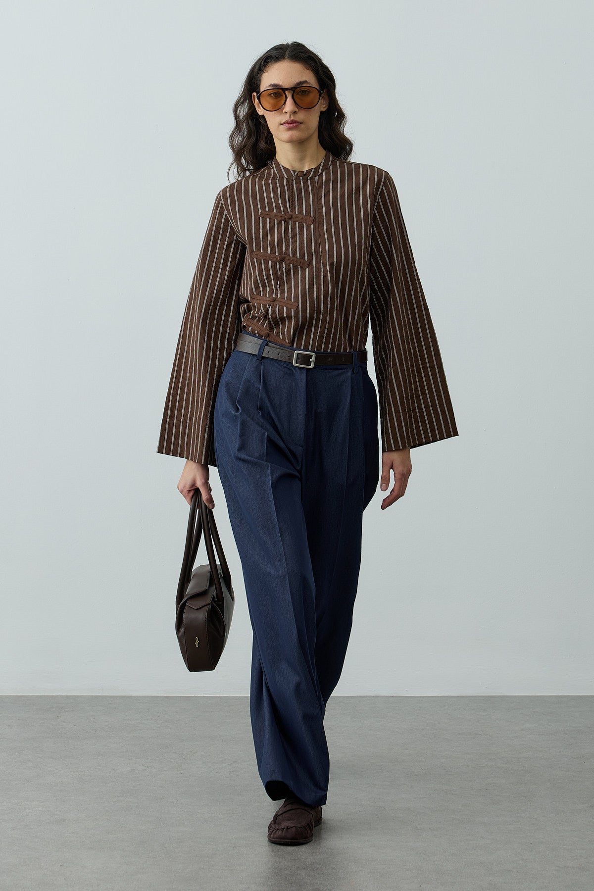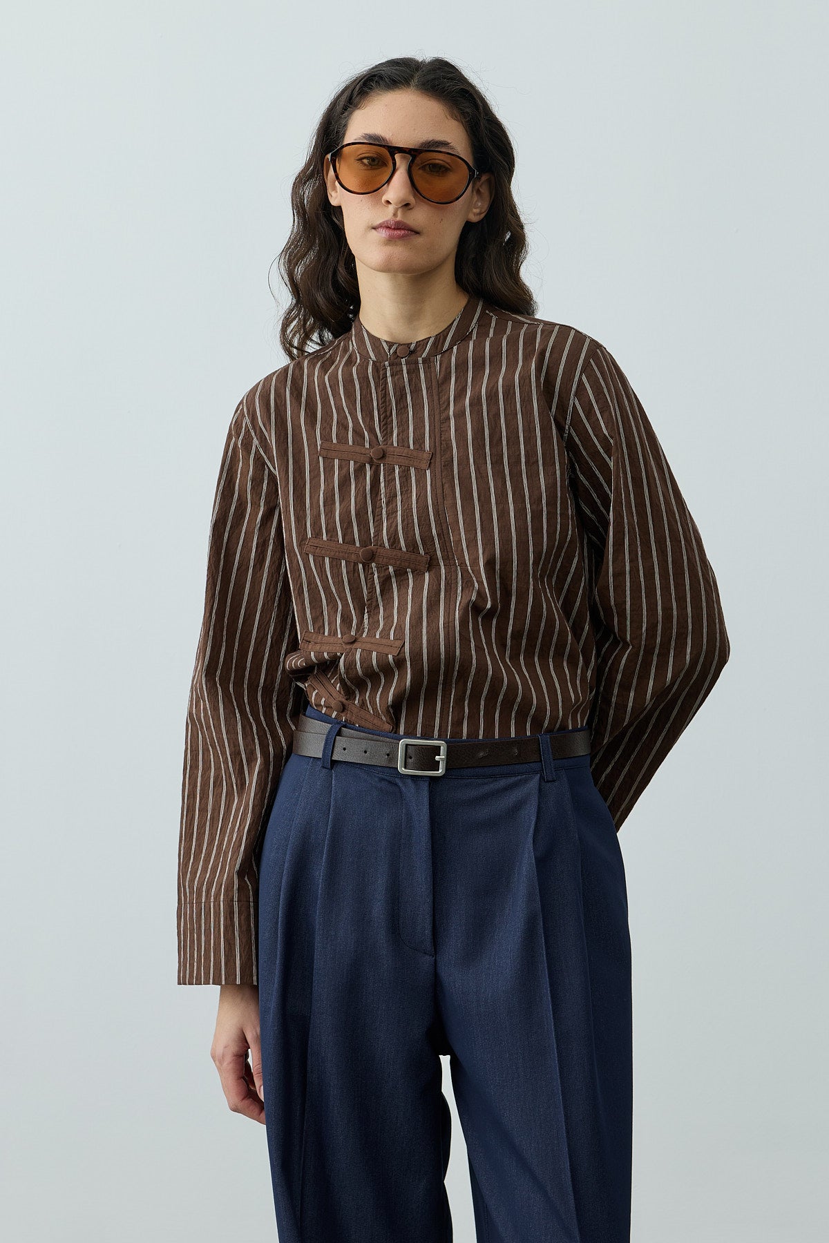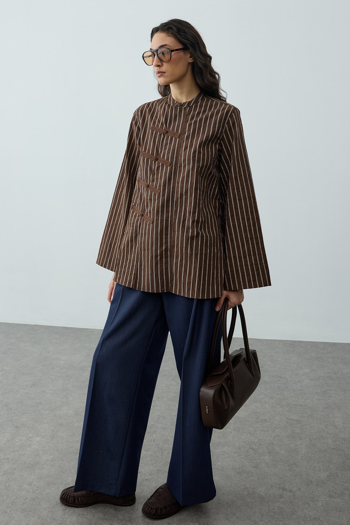 Britli Çizgili Gömlek Kahverengi