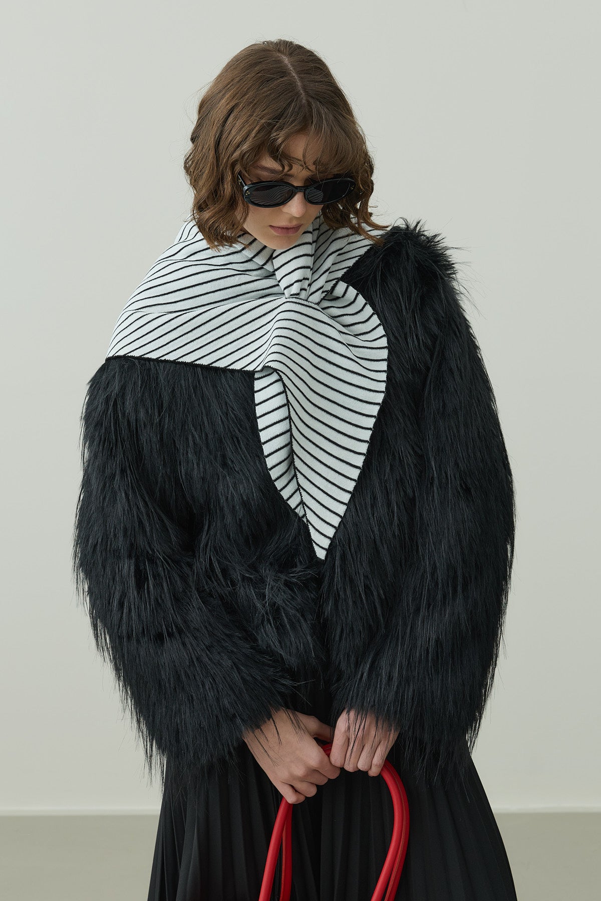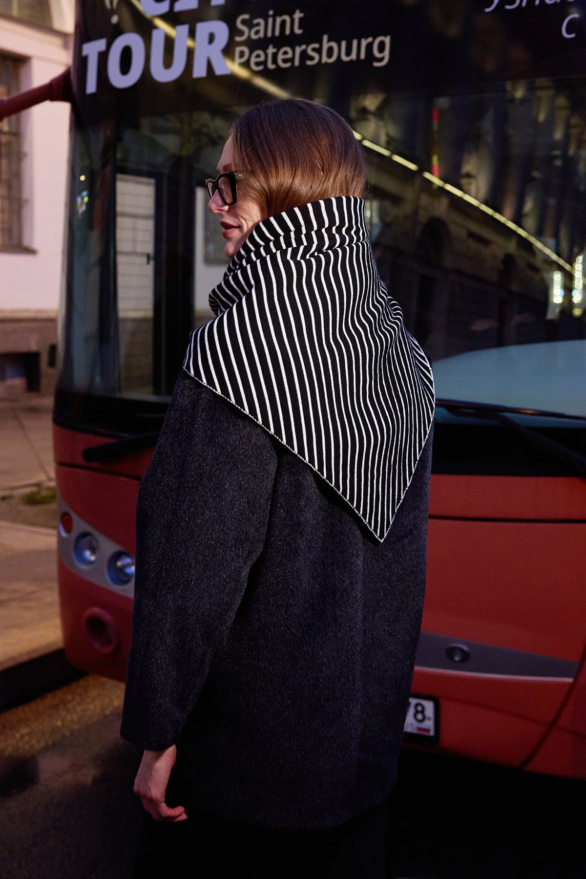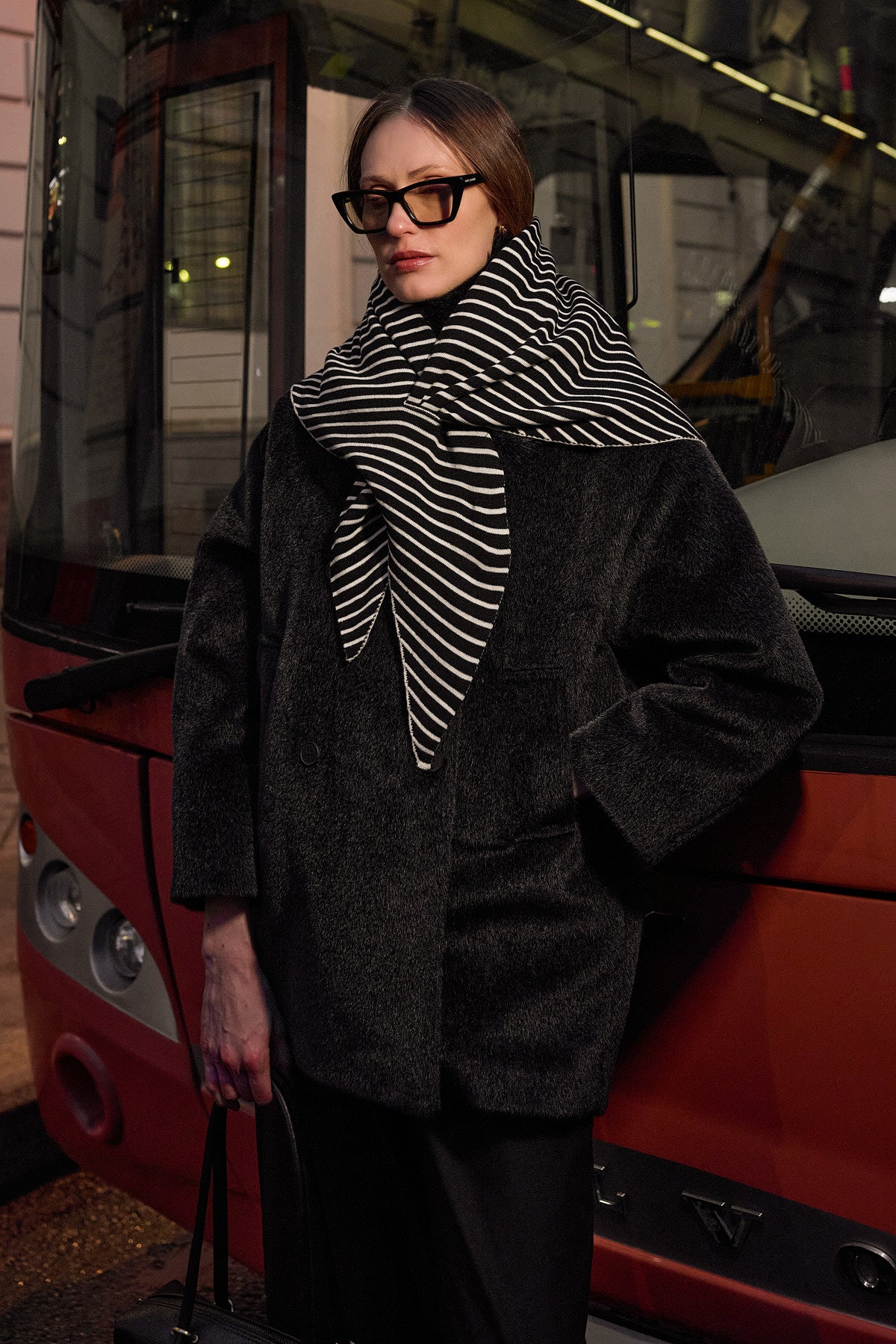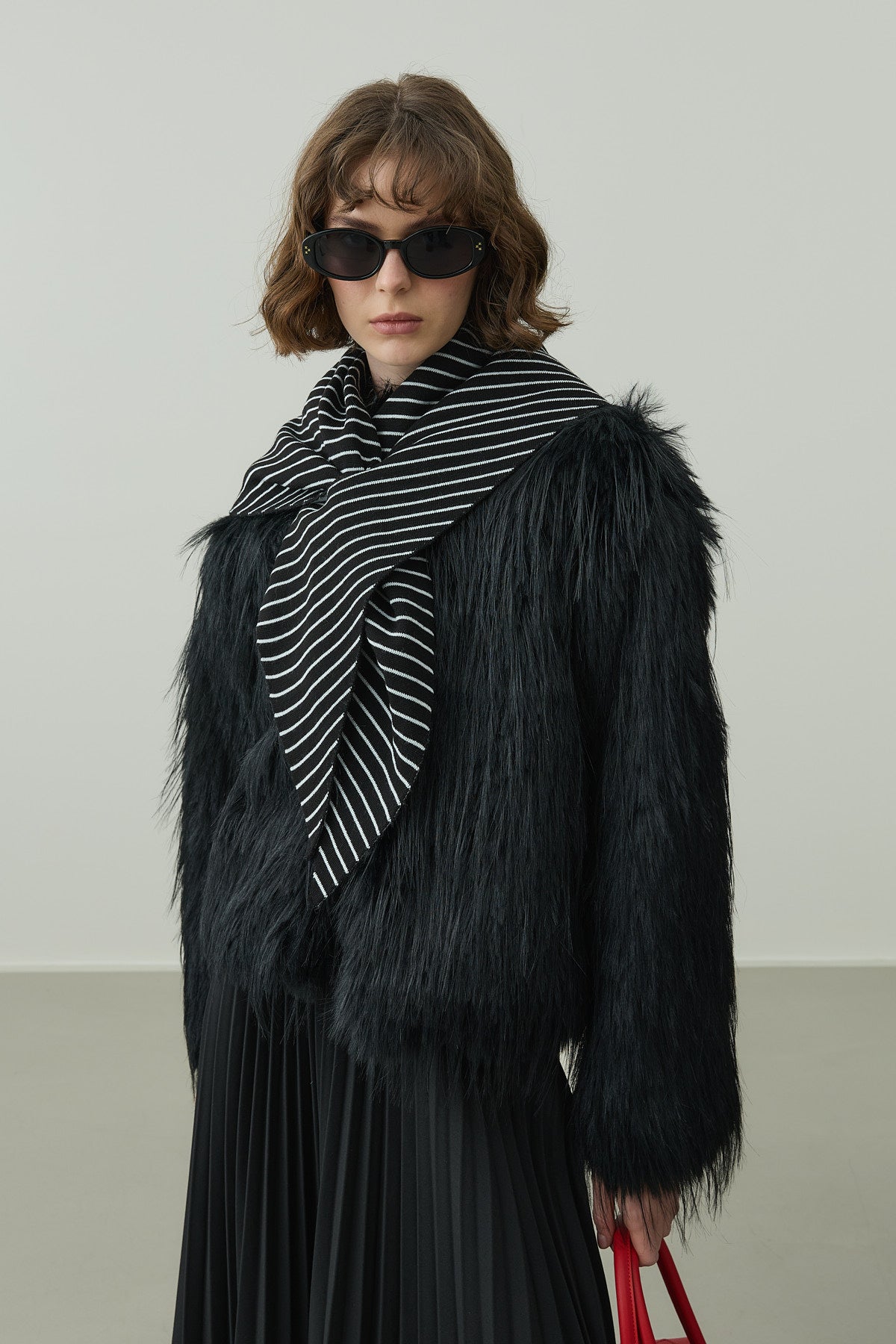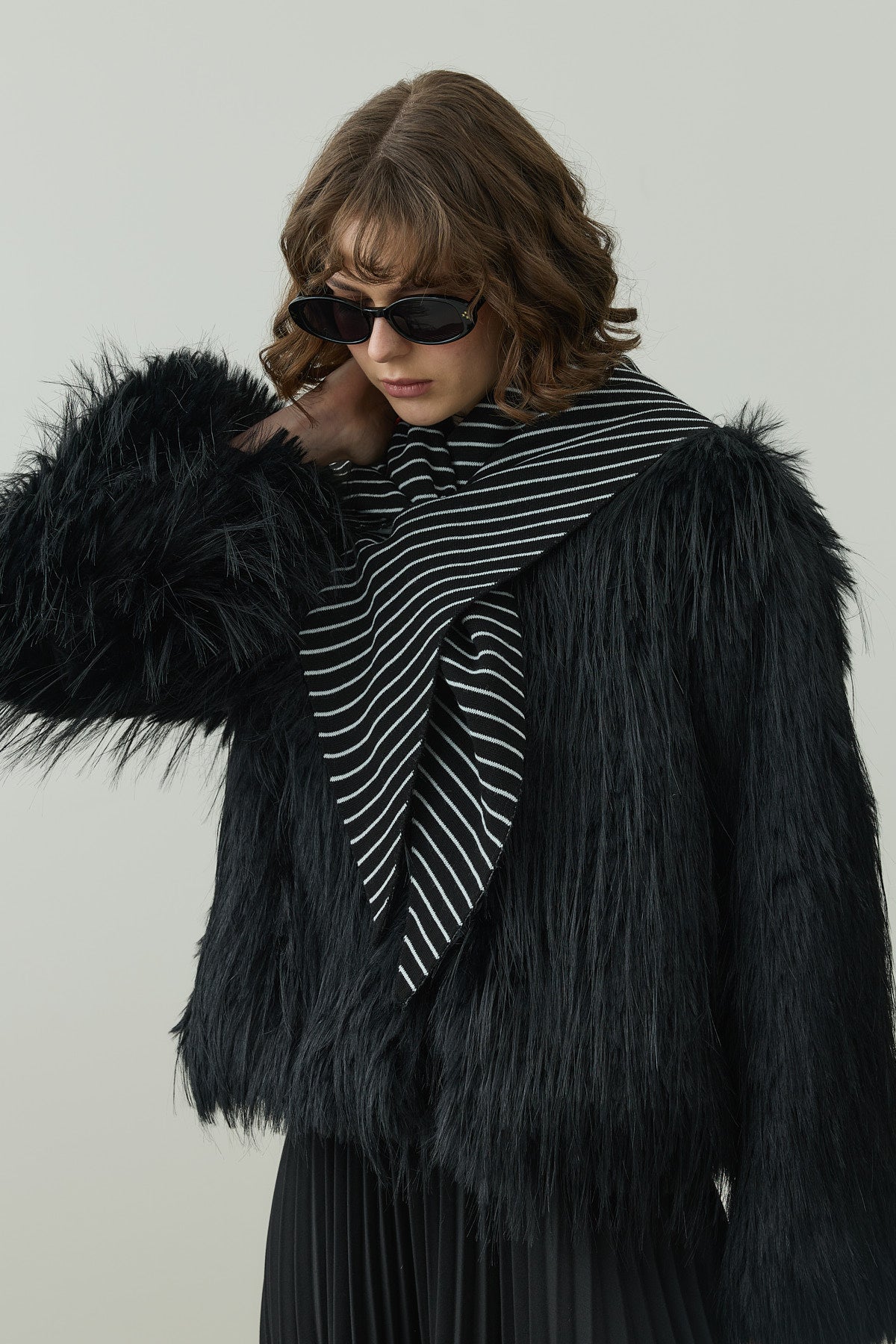 Çift Yönlü Çizgili Fular Atkı Siyah
