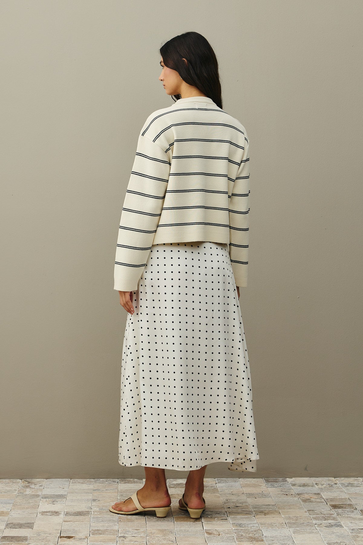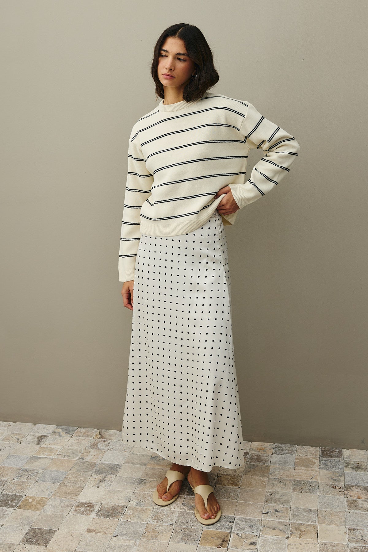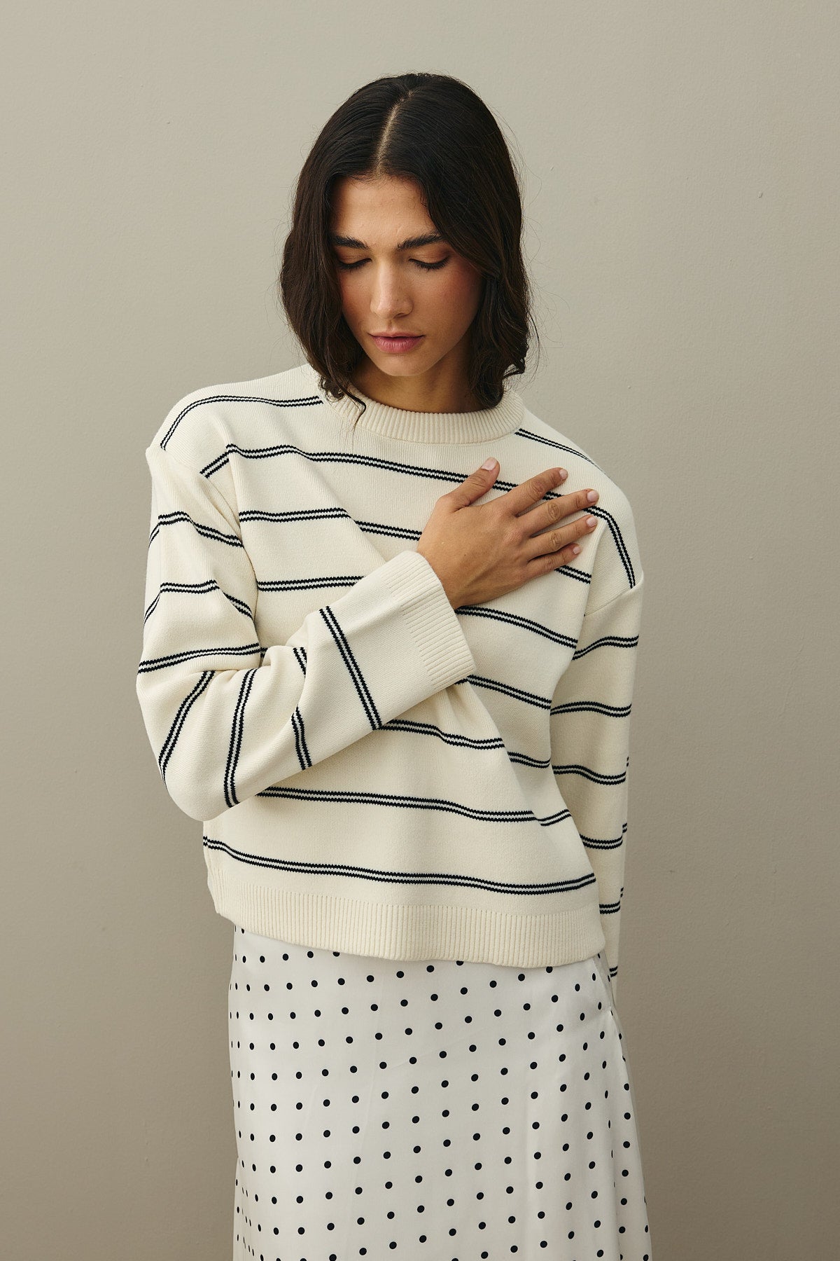 Striped Basic Knit Sweater Ecru