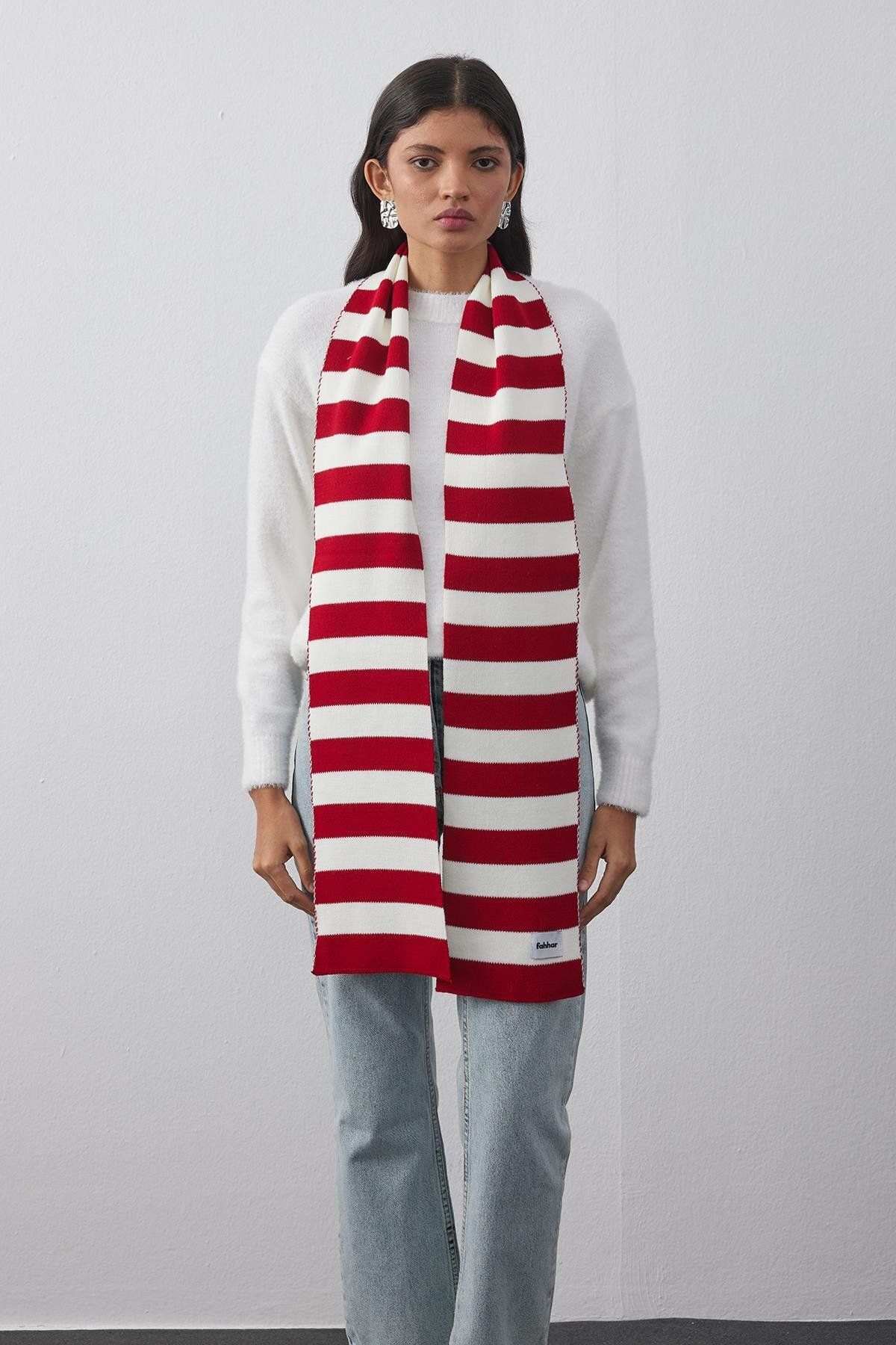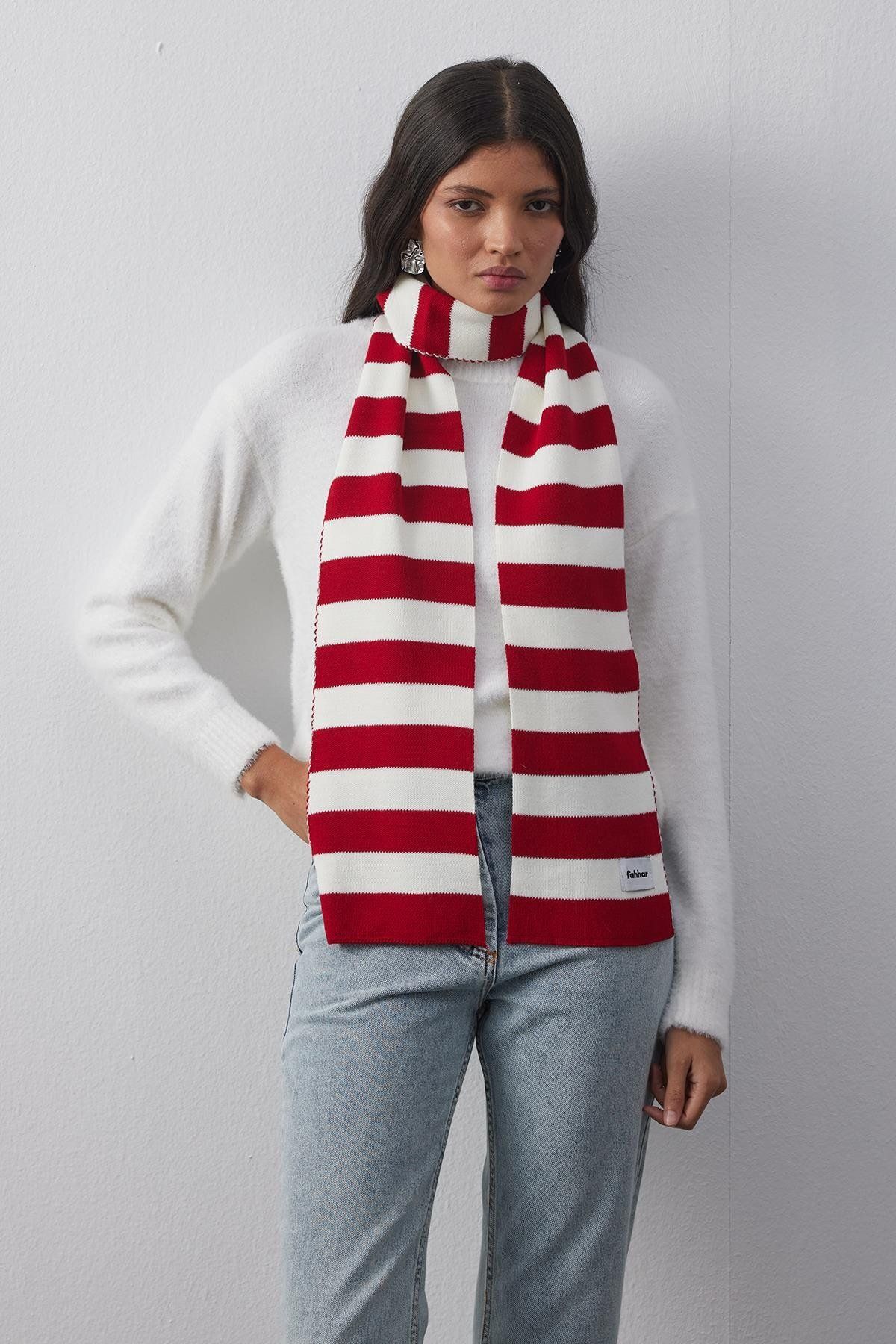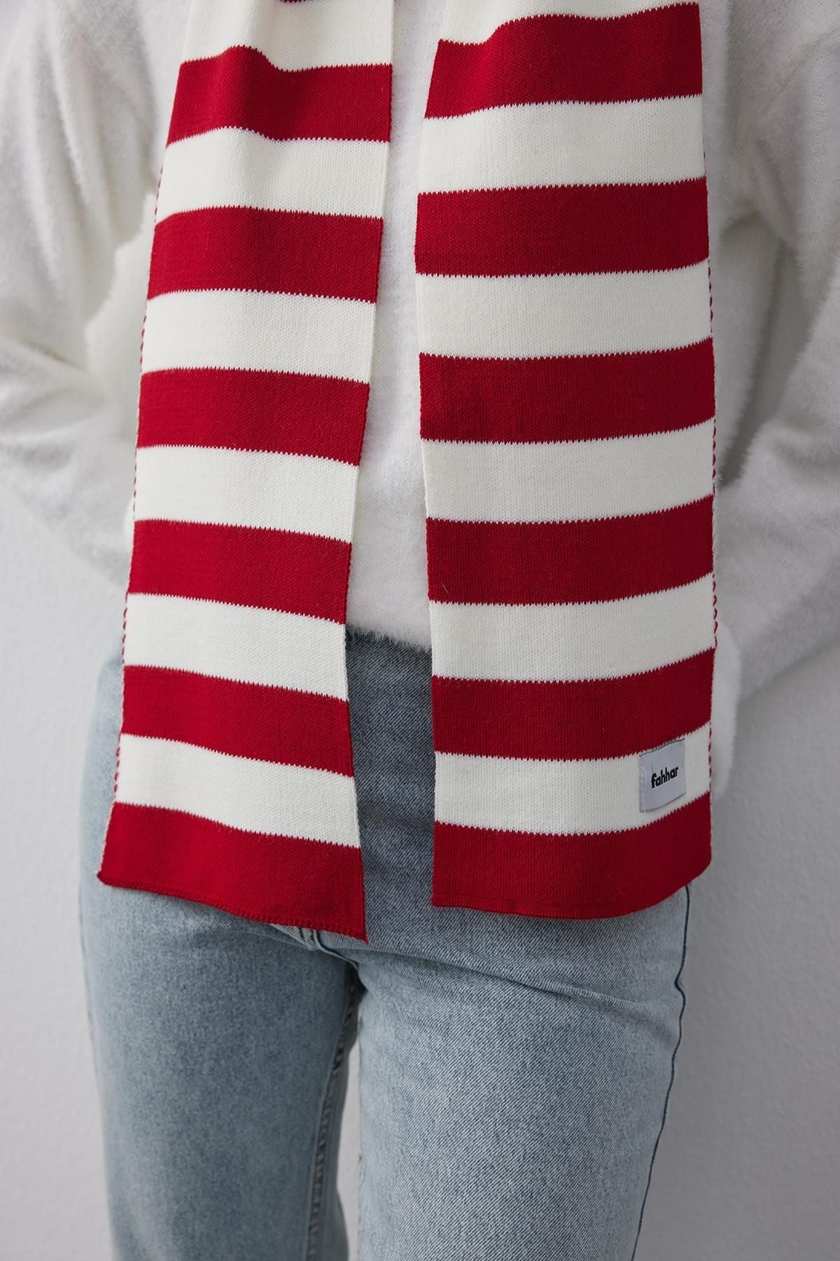 Striped Thin Scarf Red