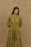 Multi-Pleated Dress Oil Green