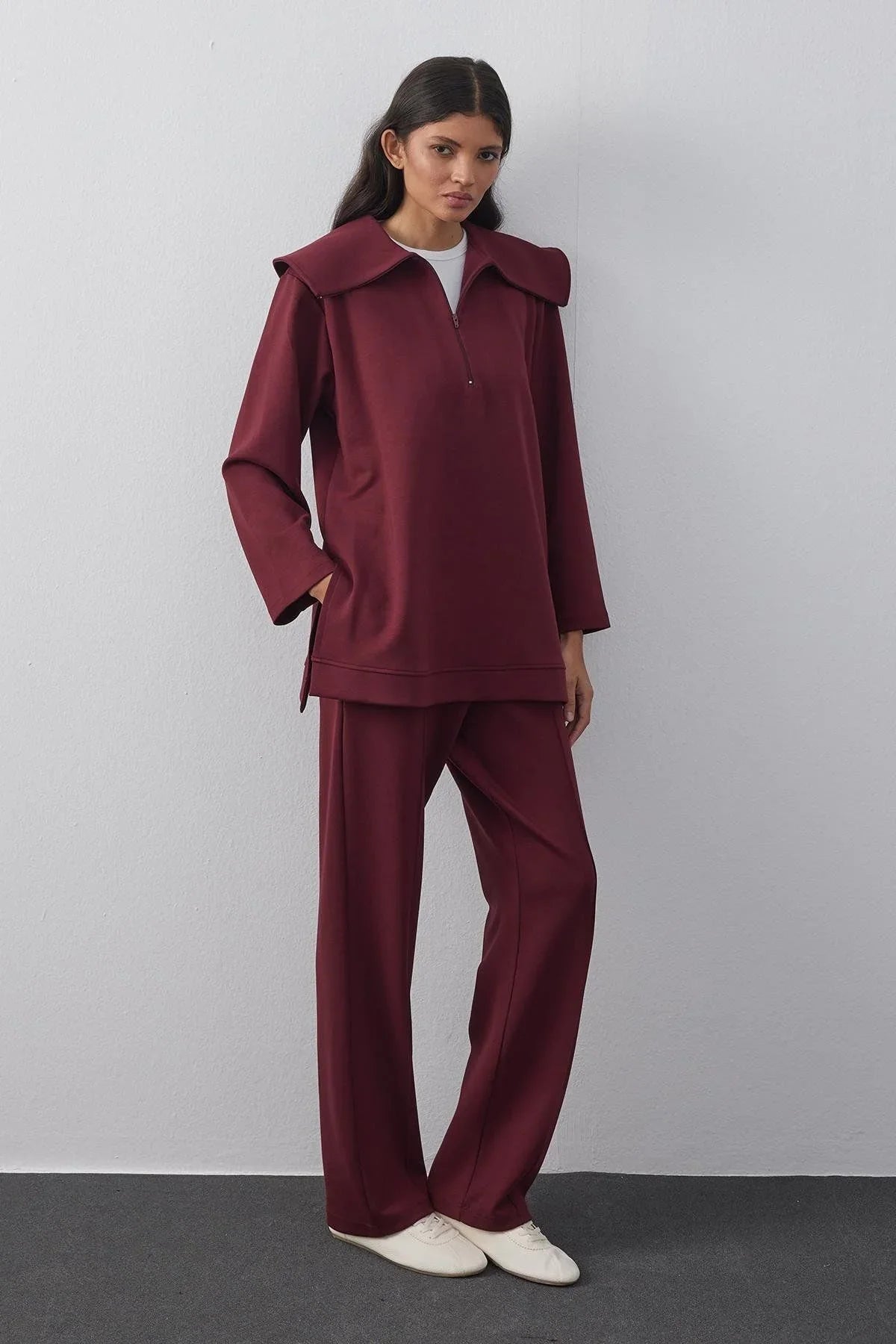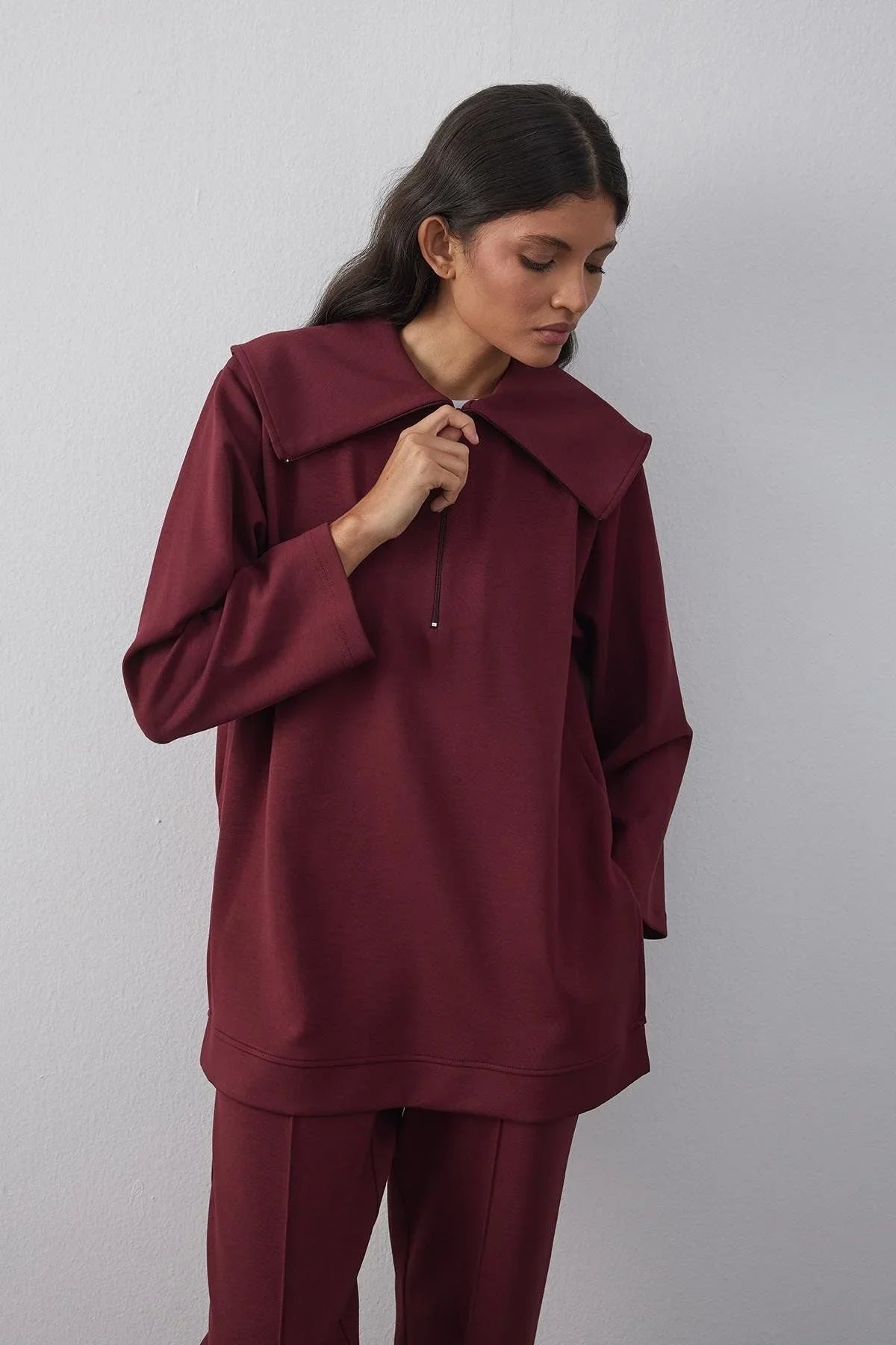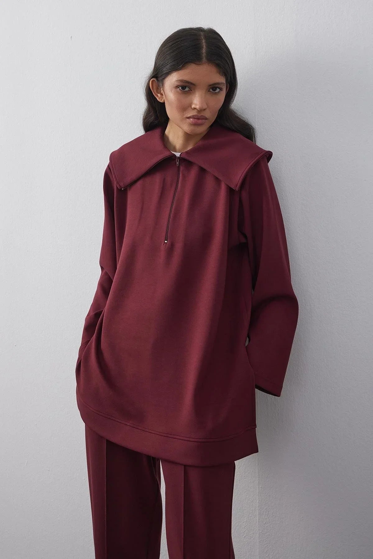 Zippered Modal Scuba Suit Claret Red