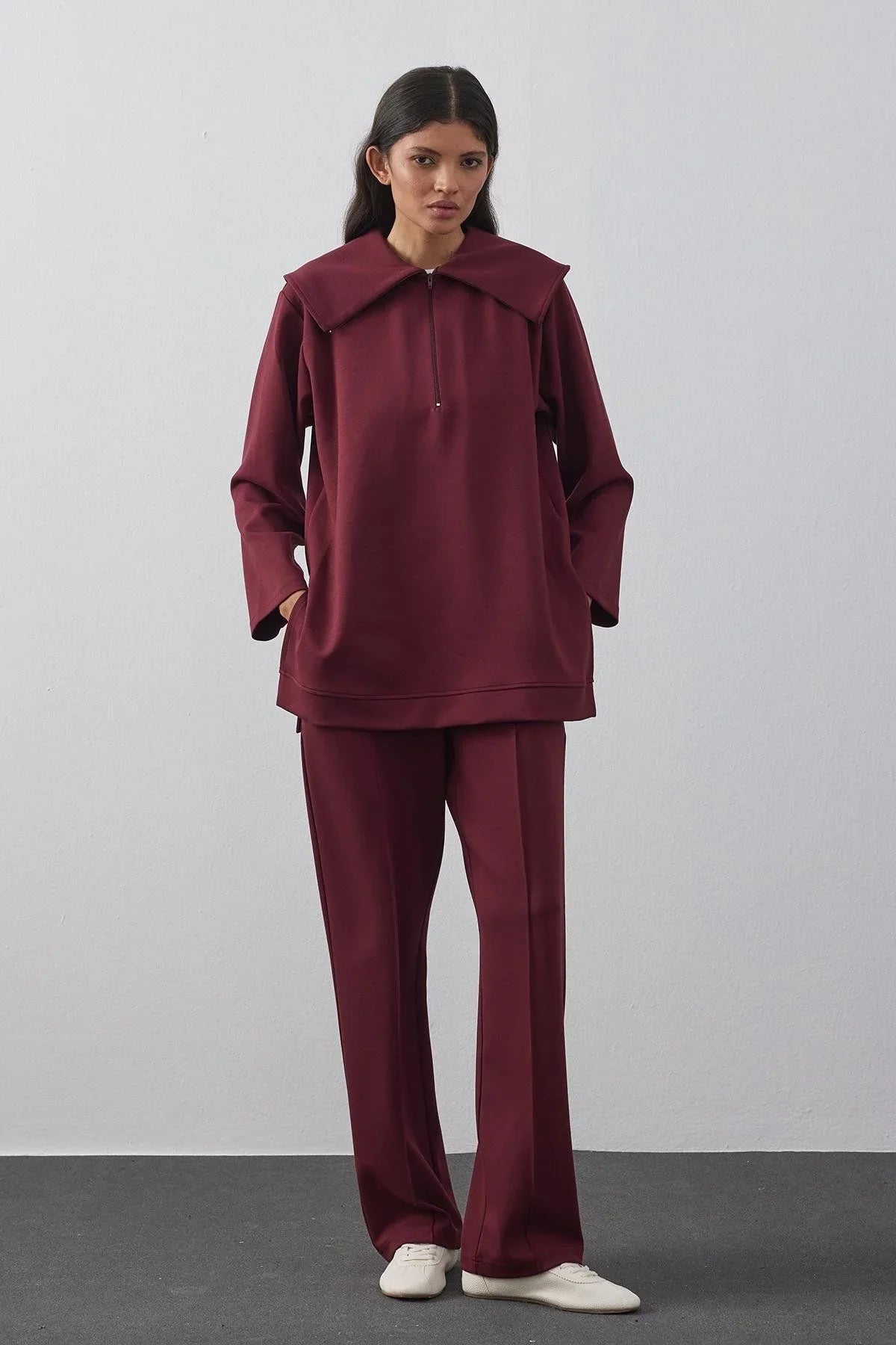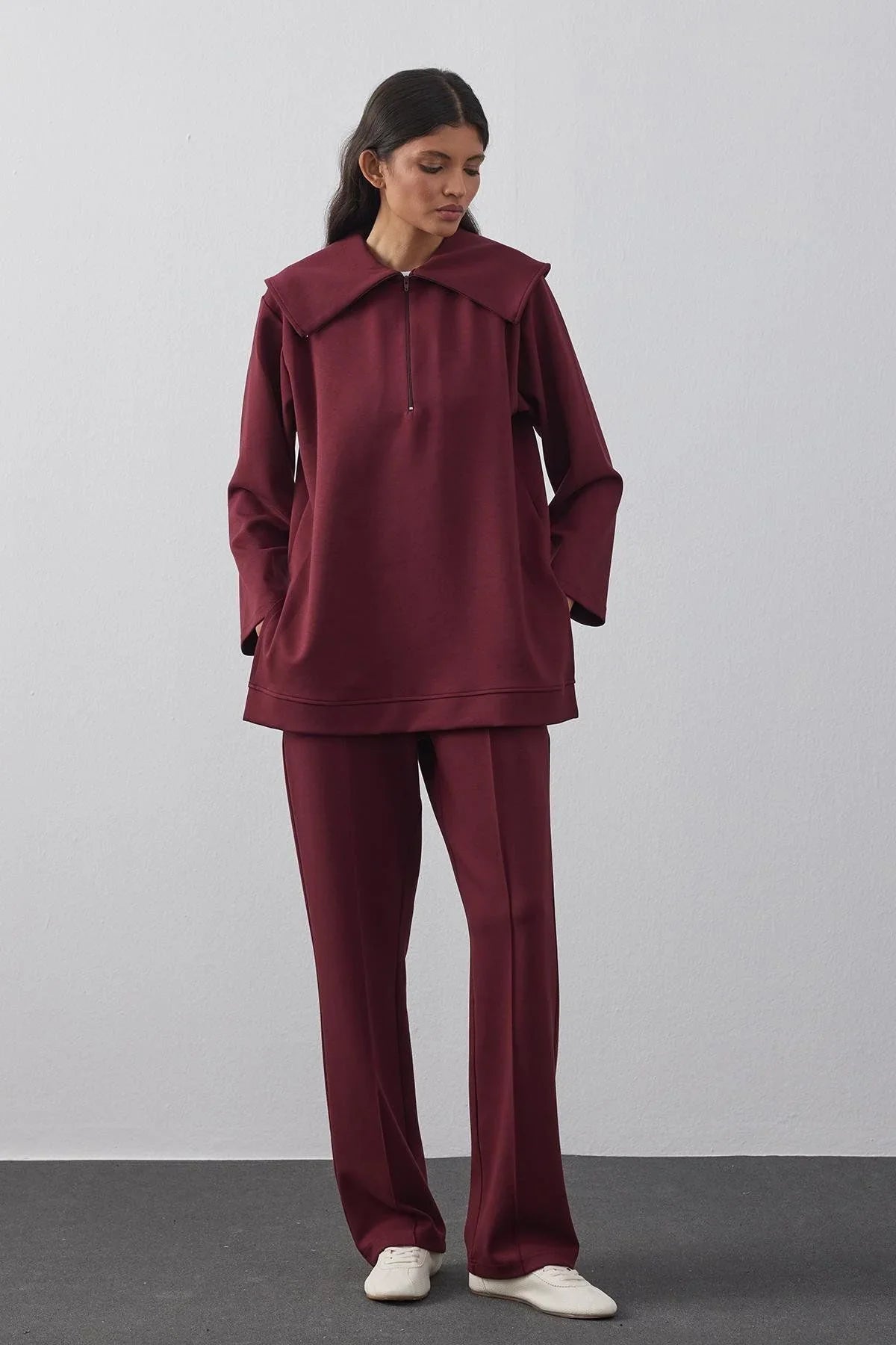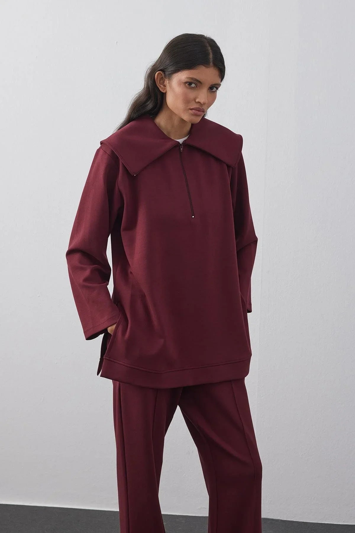 Zippered Modal Scuba Suit Claret Red