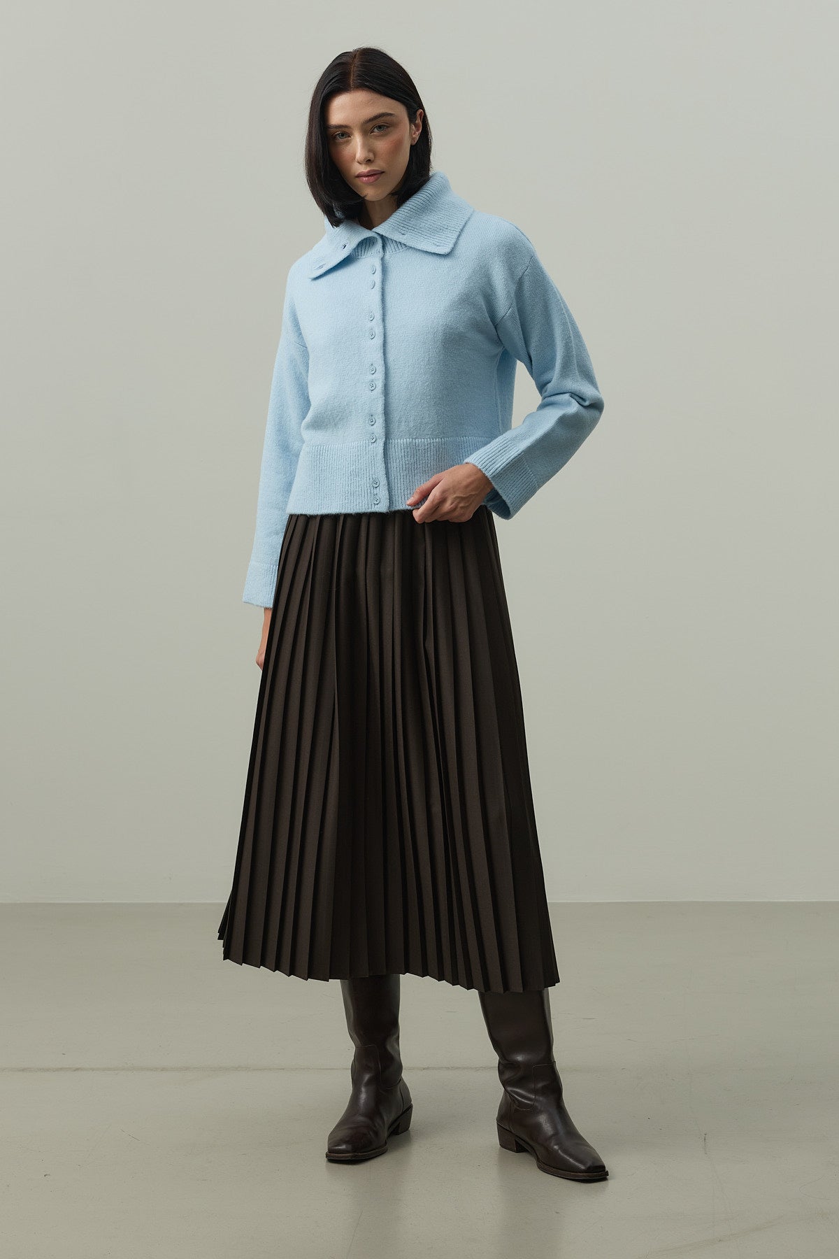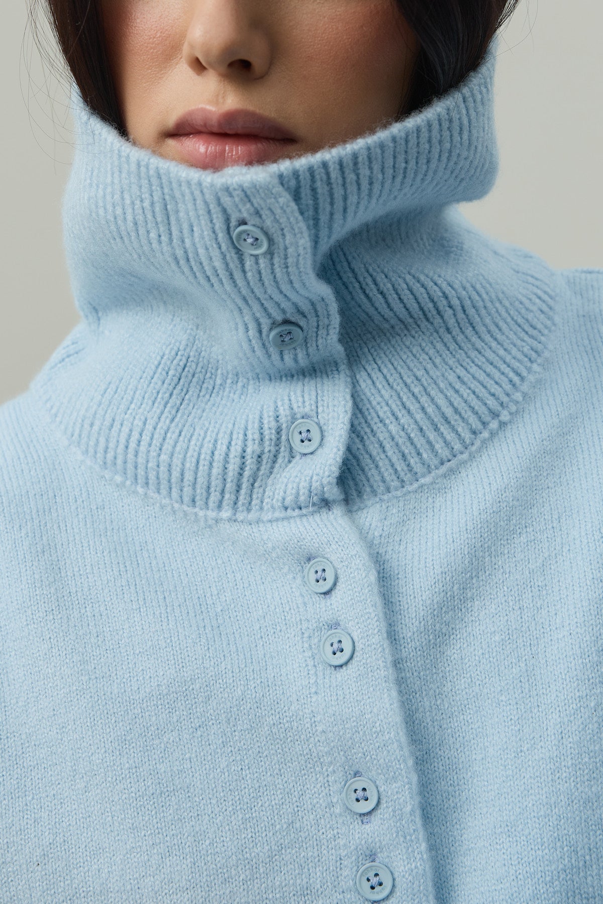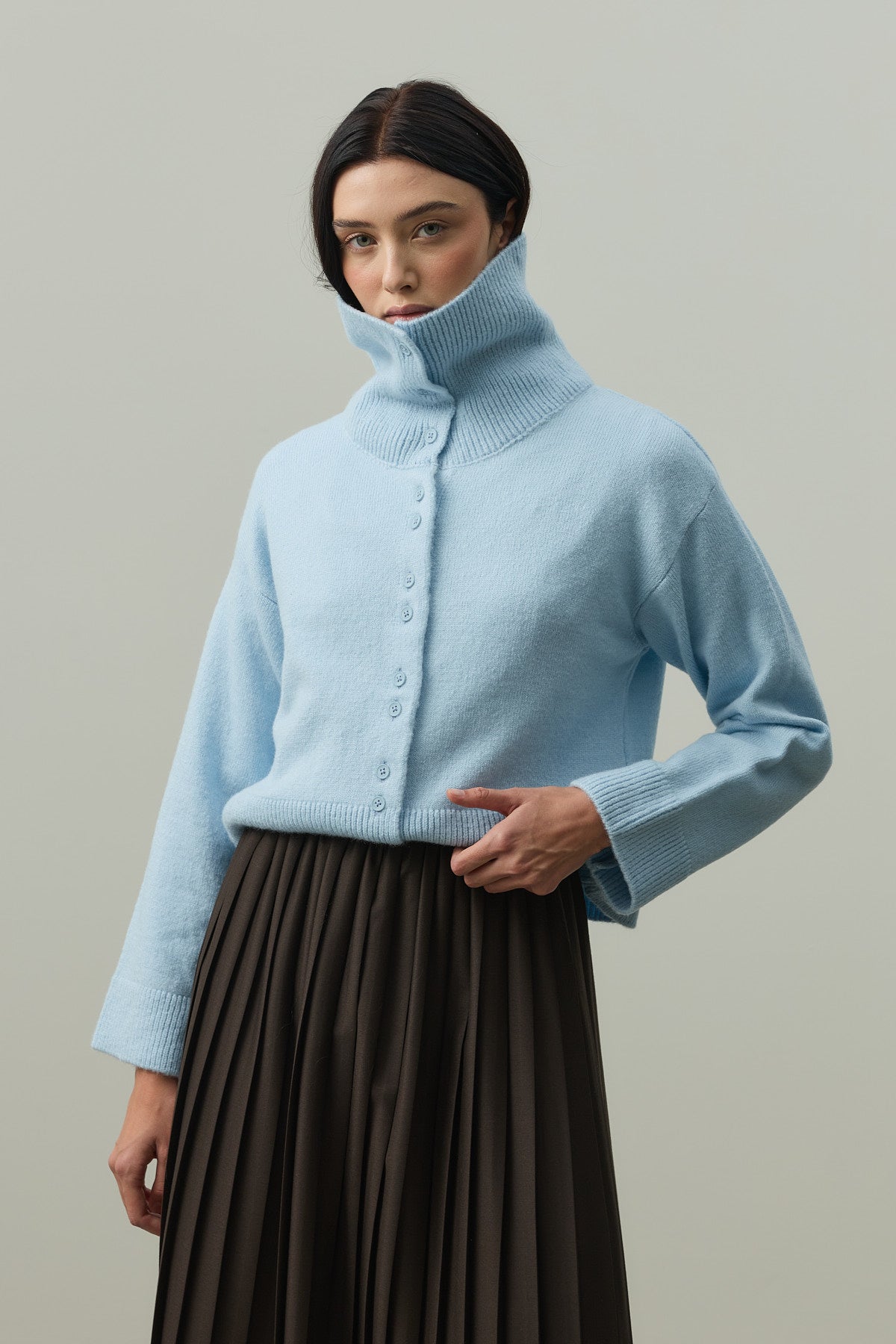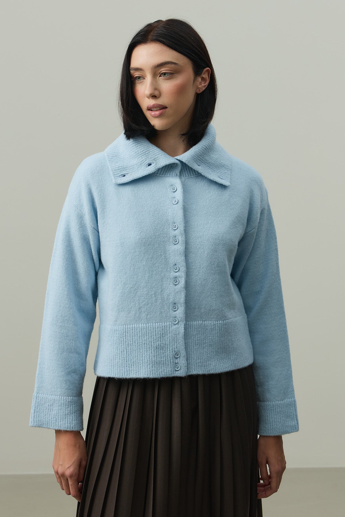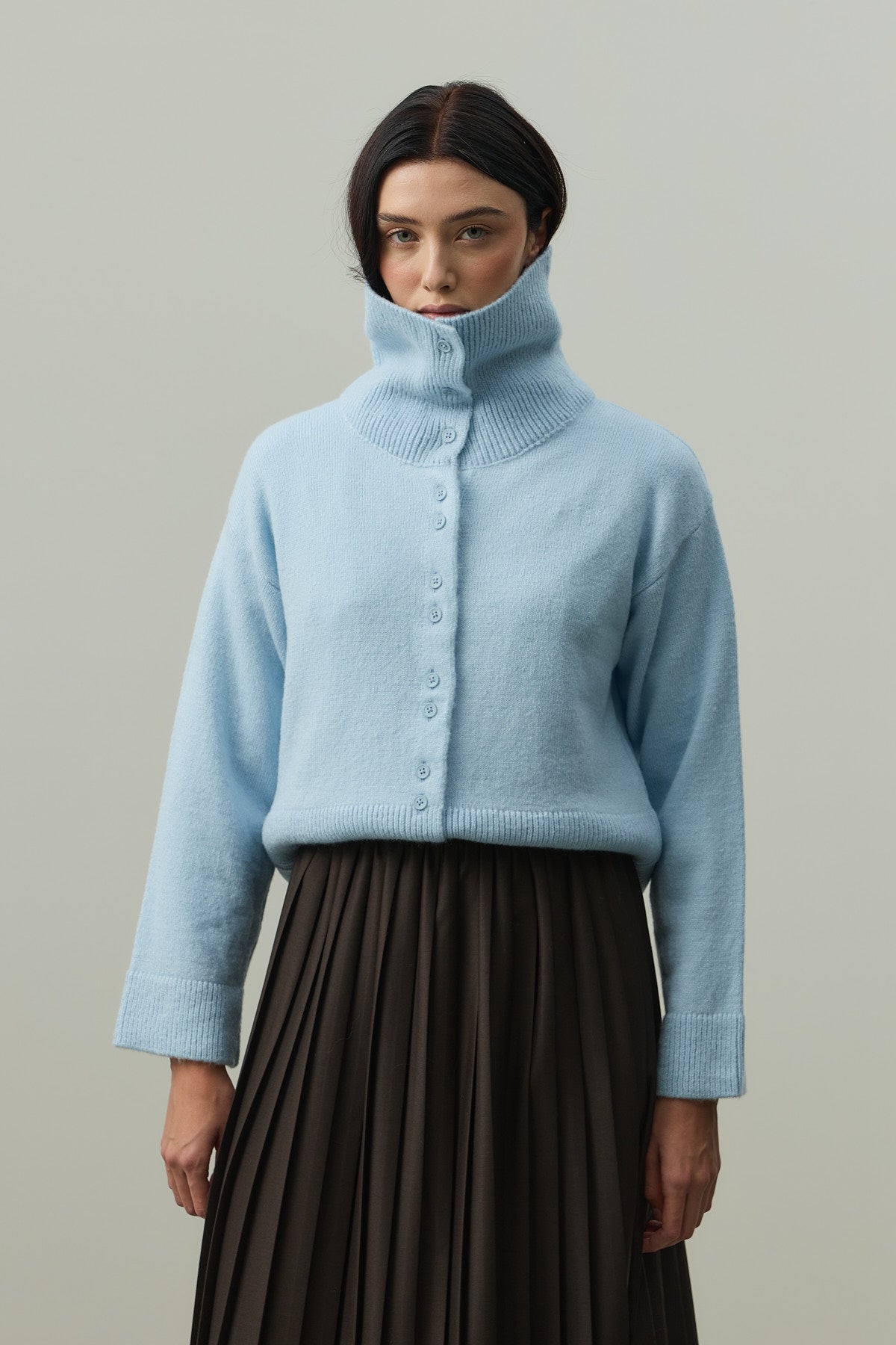 Geniş Yakalı Tiftik Hırka Bebe Mavisi