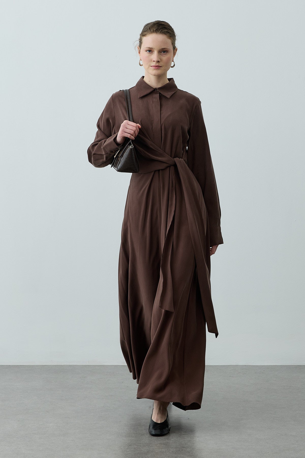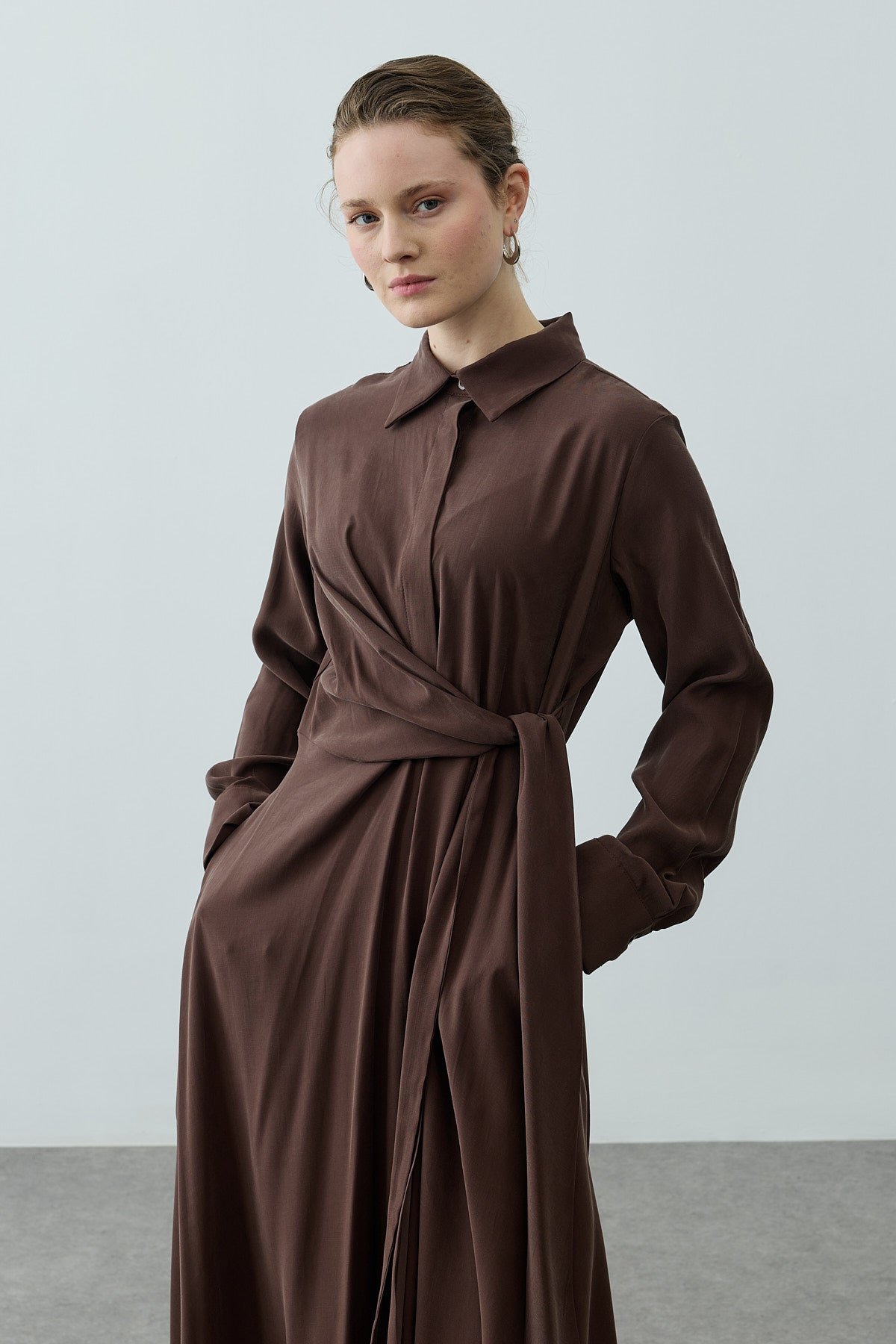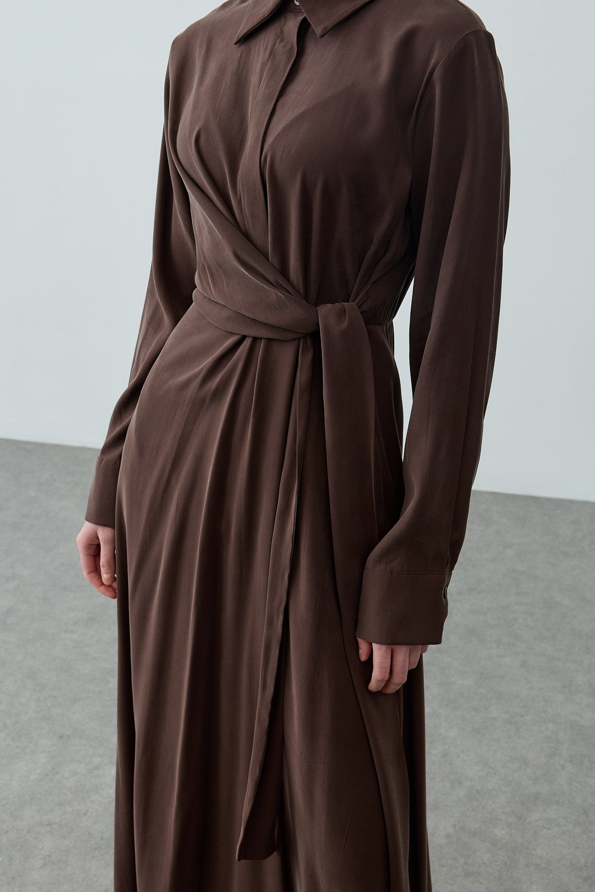 Kruvaze Bağlamalı Elbise Kahverengi