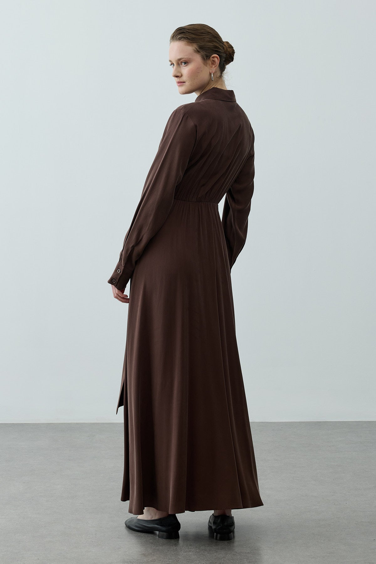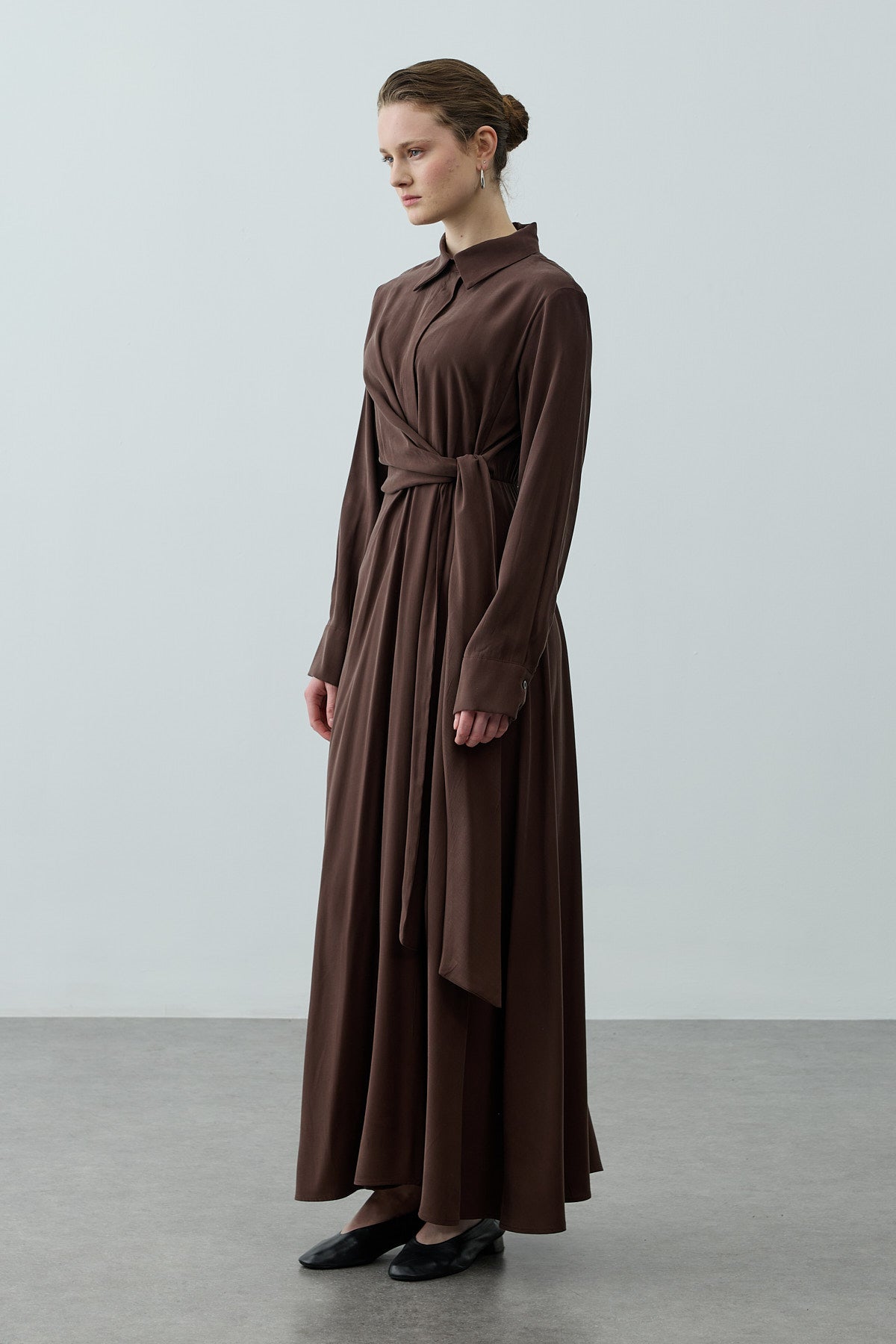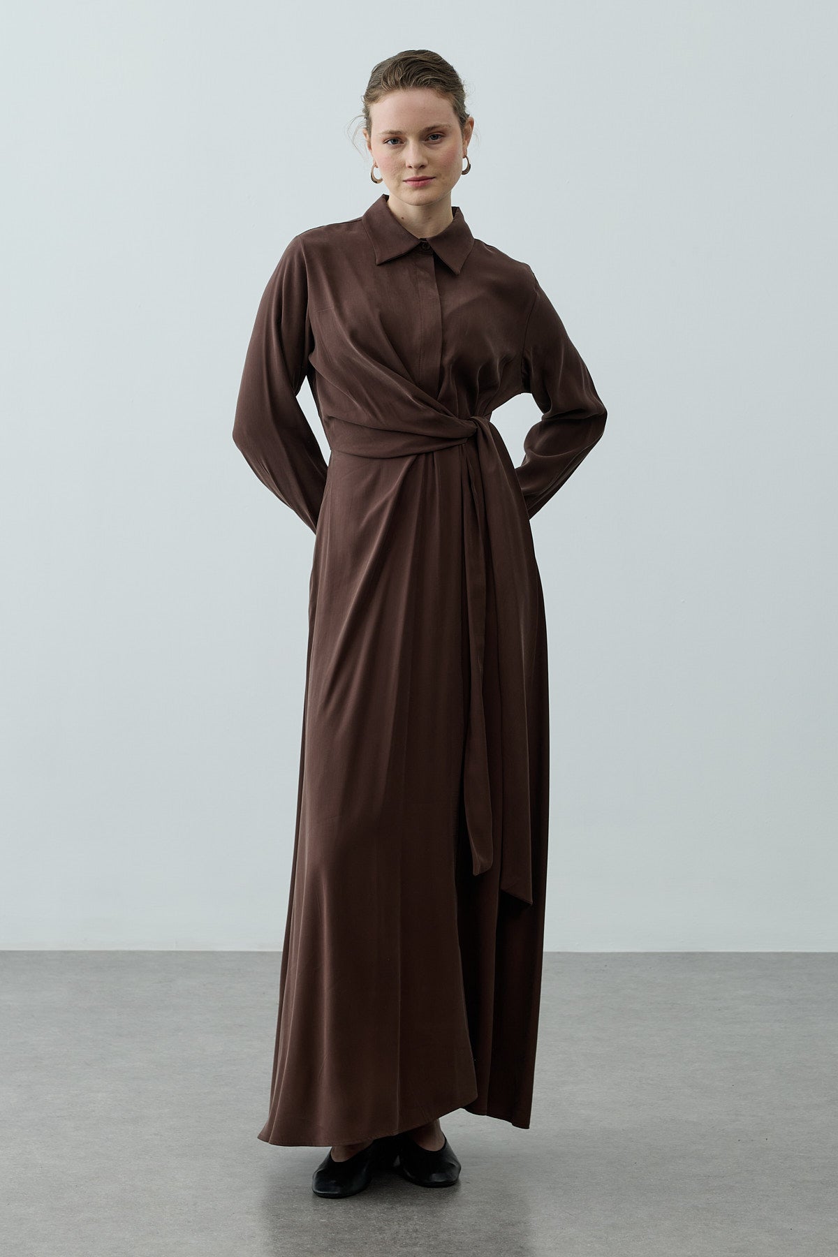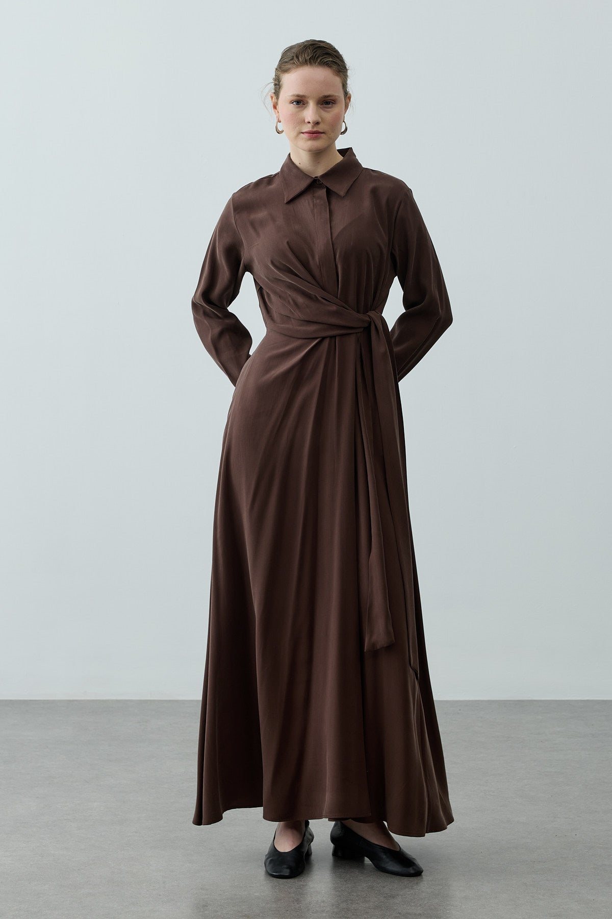 Kruvaze Bağlamalı Elbise Kahverengi