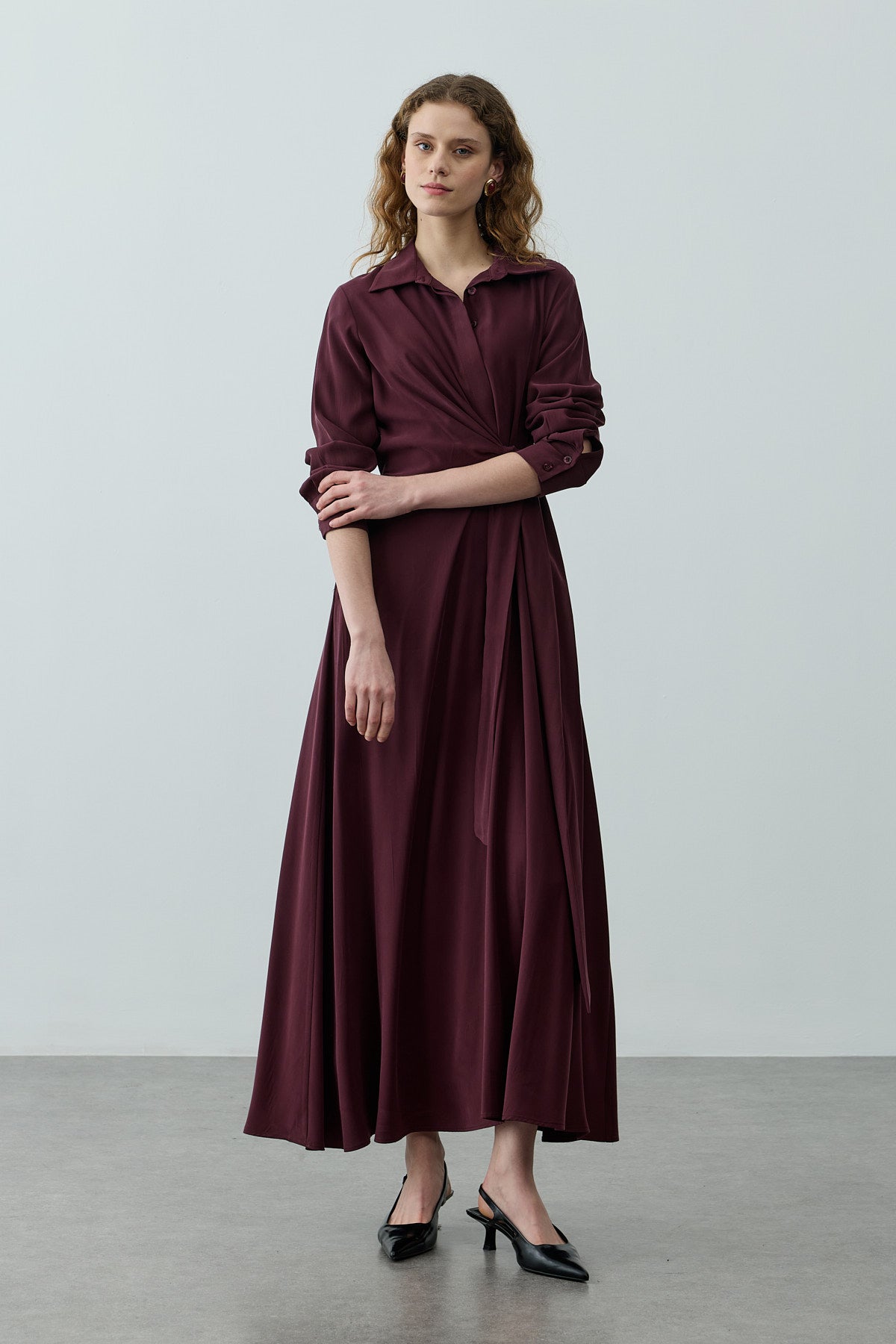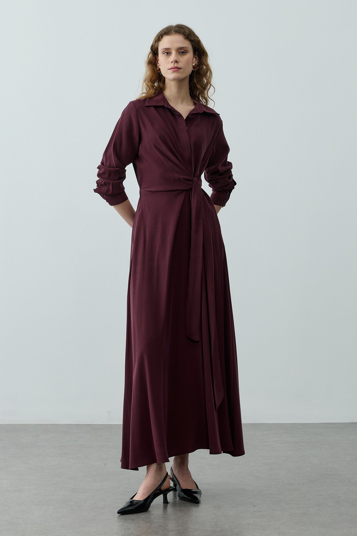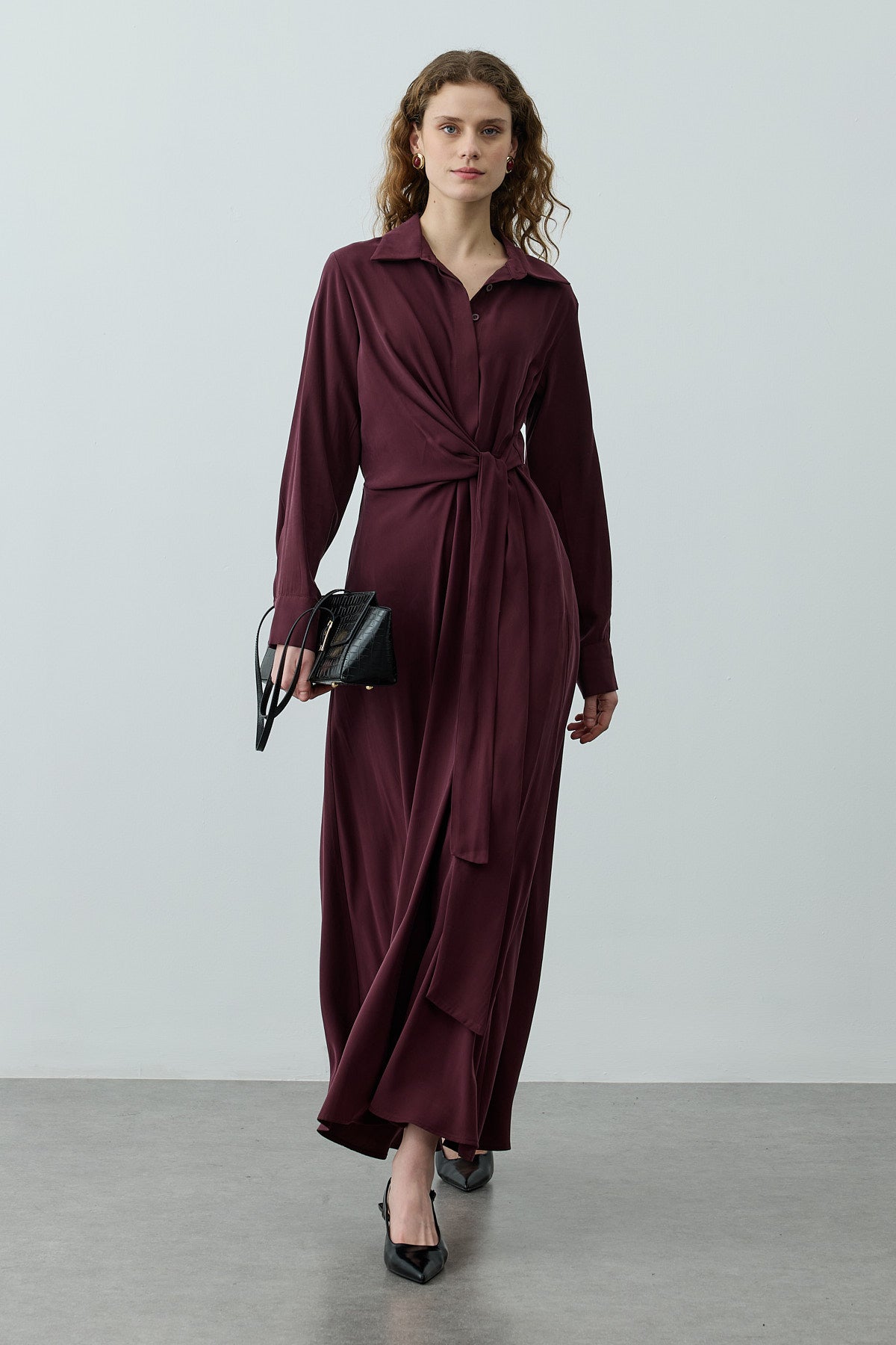 Kruvaze Bağlamalı Elbise Mürdüm