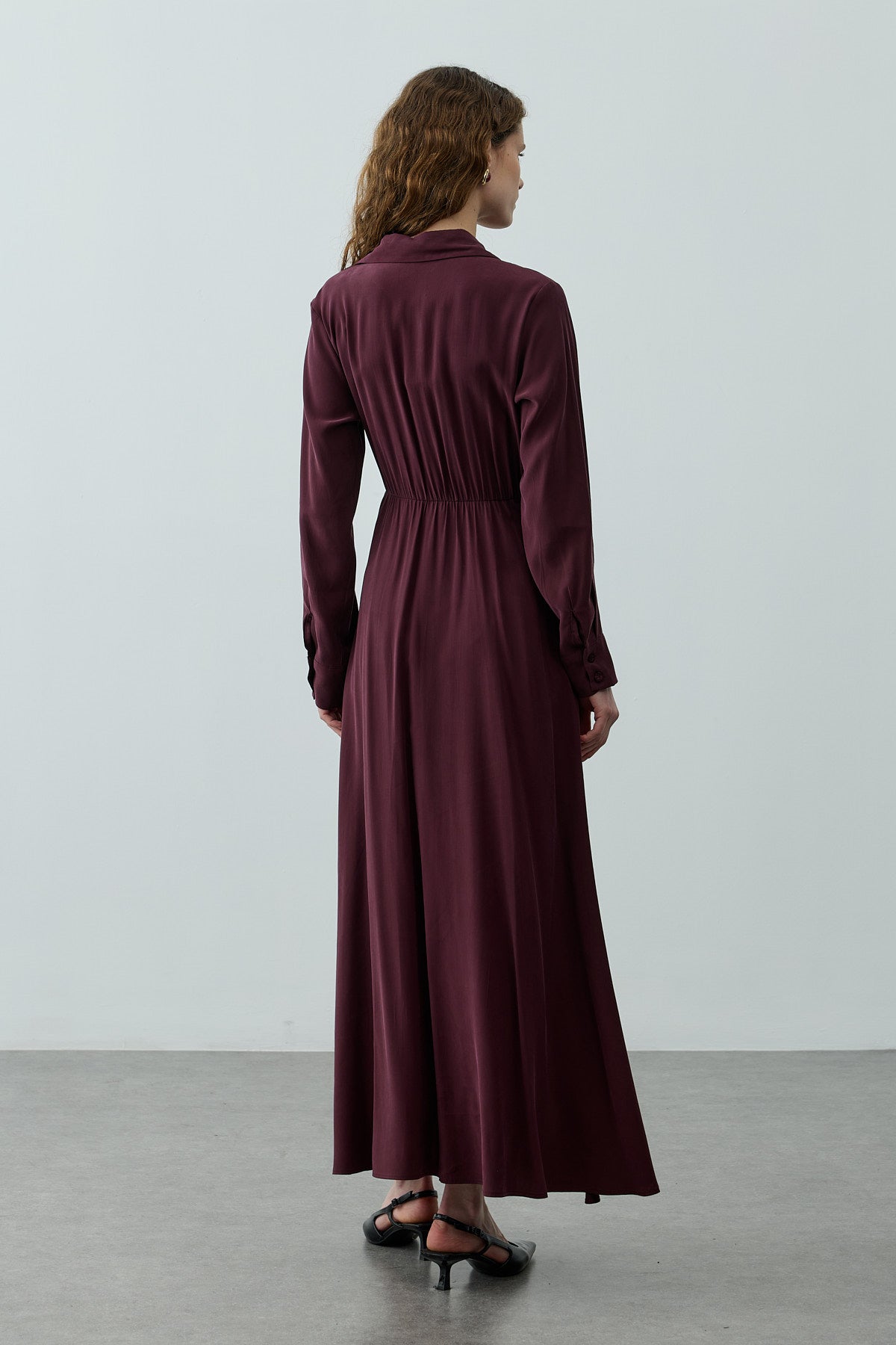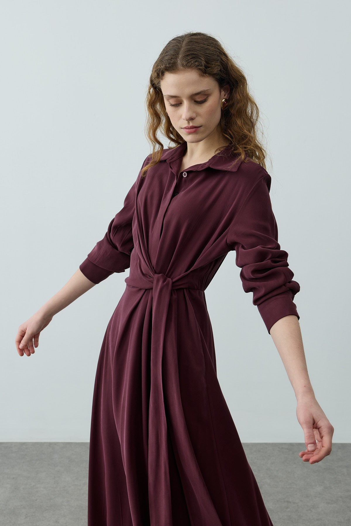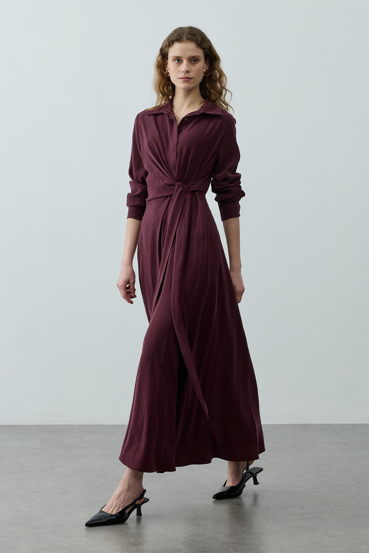 Kruvaze Bağlamalı Elbise Mürdüm
