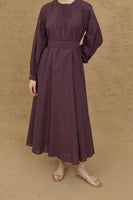 Ribbed Detailed Voile Dress, Plum