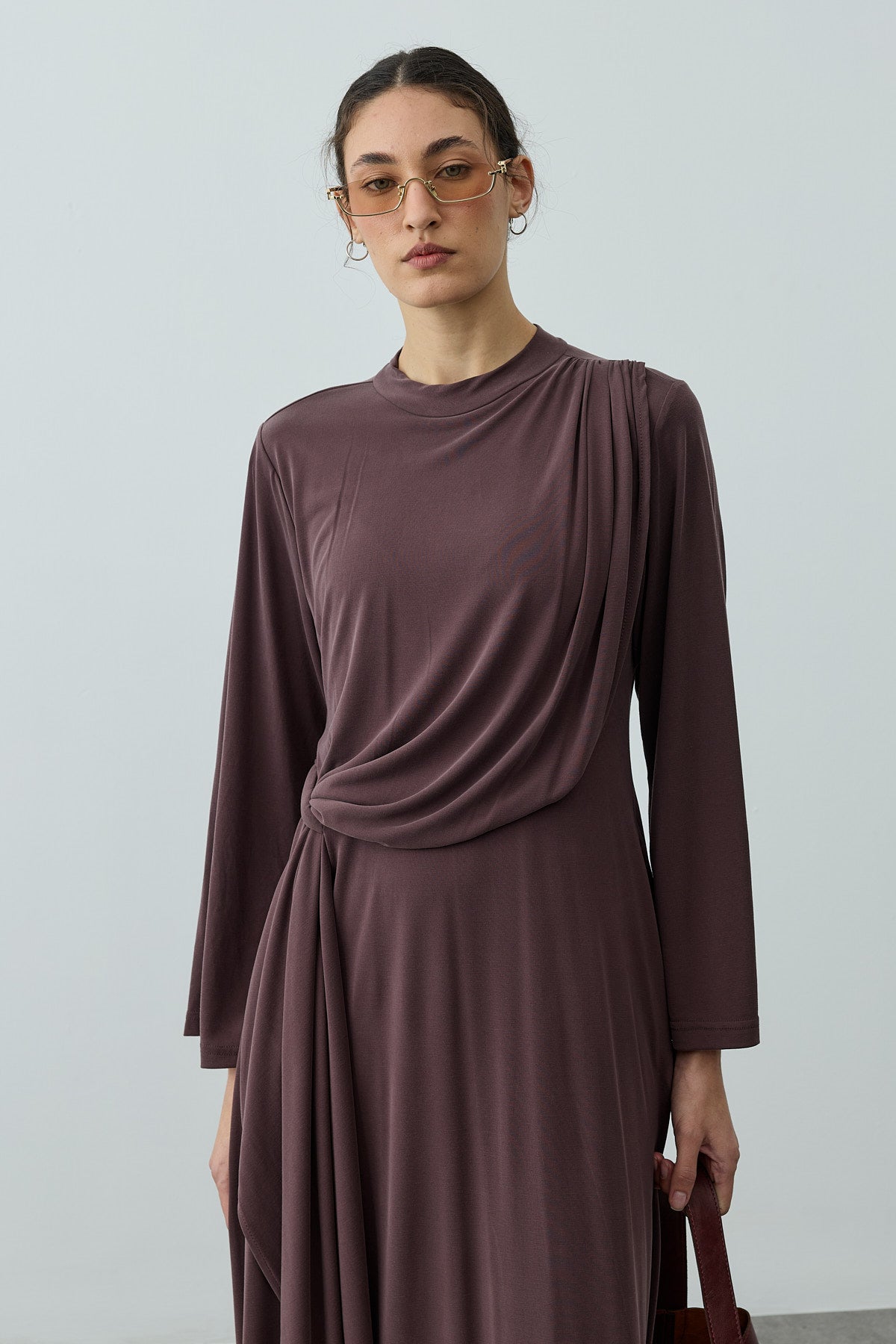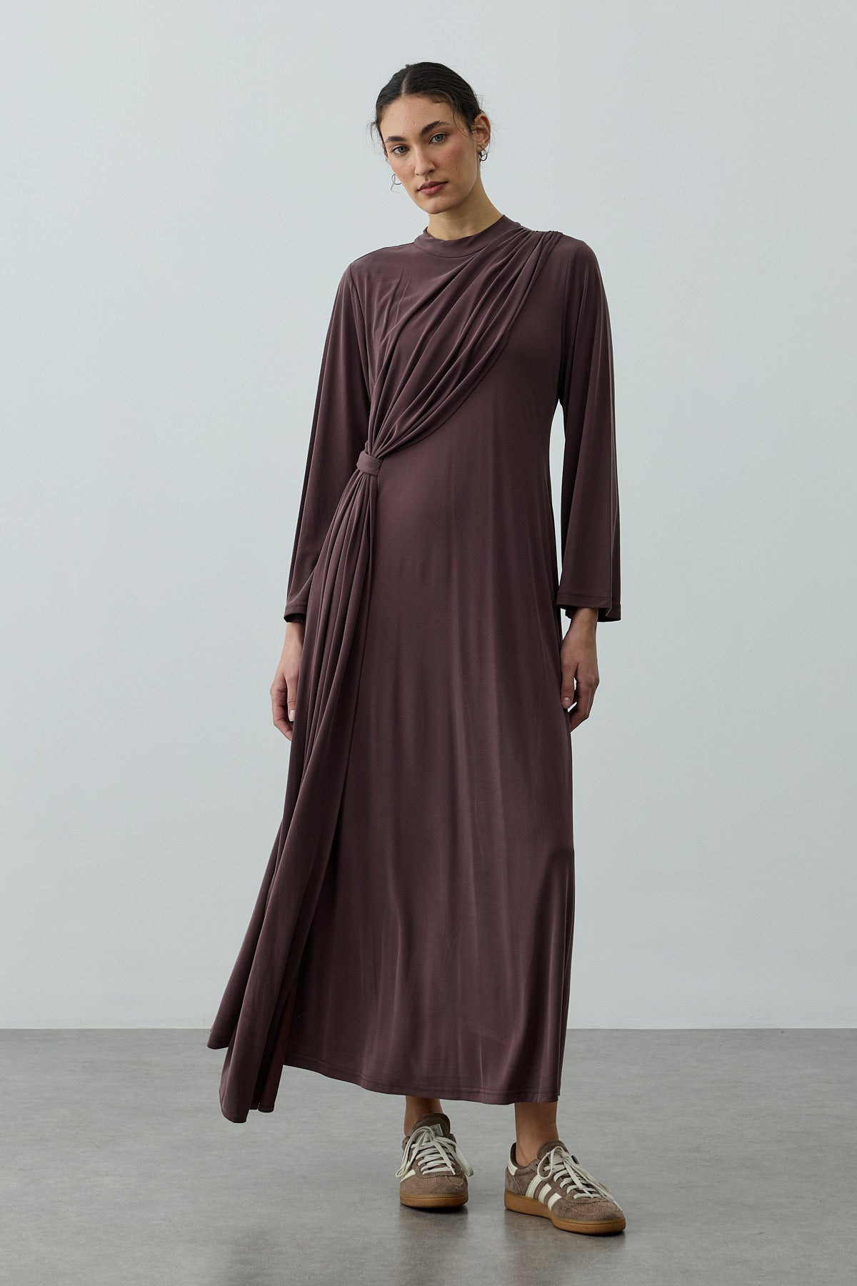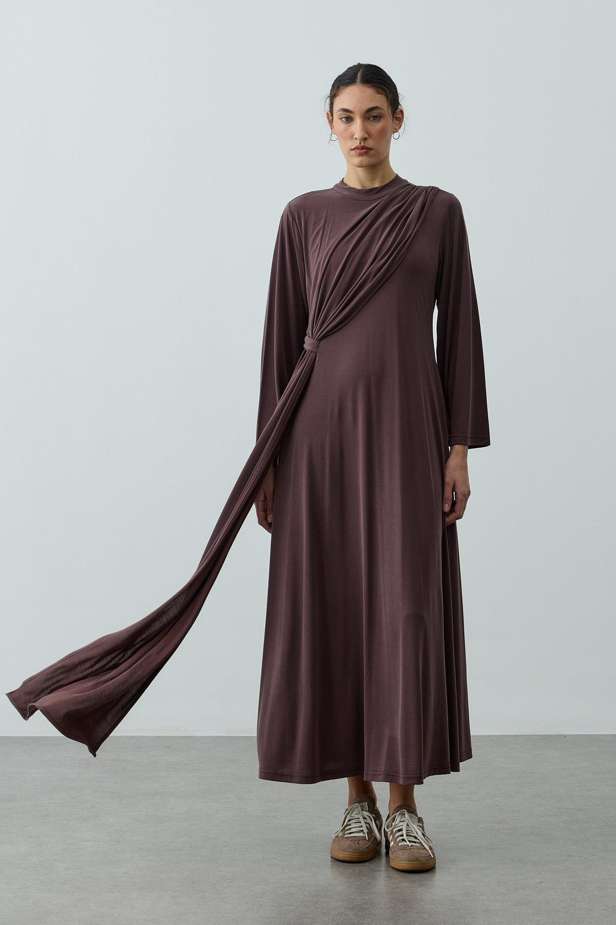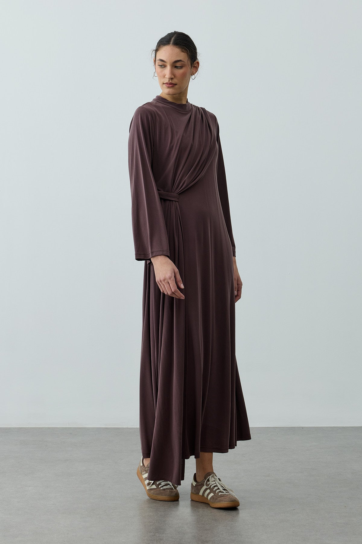 Parça Detaylı Modal Elbise Kahverengi