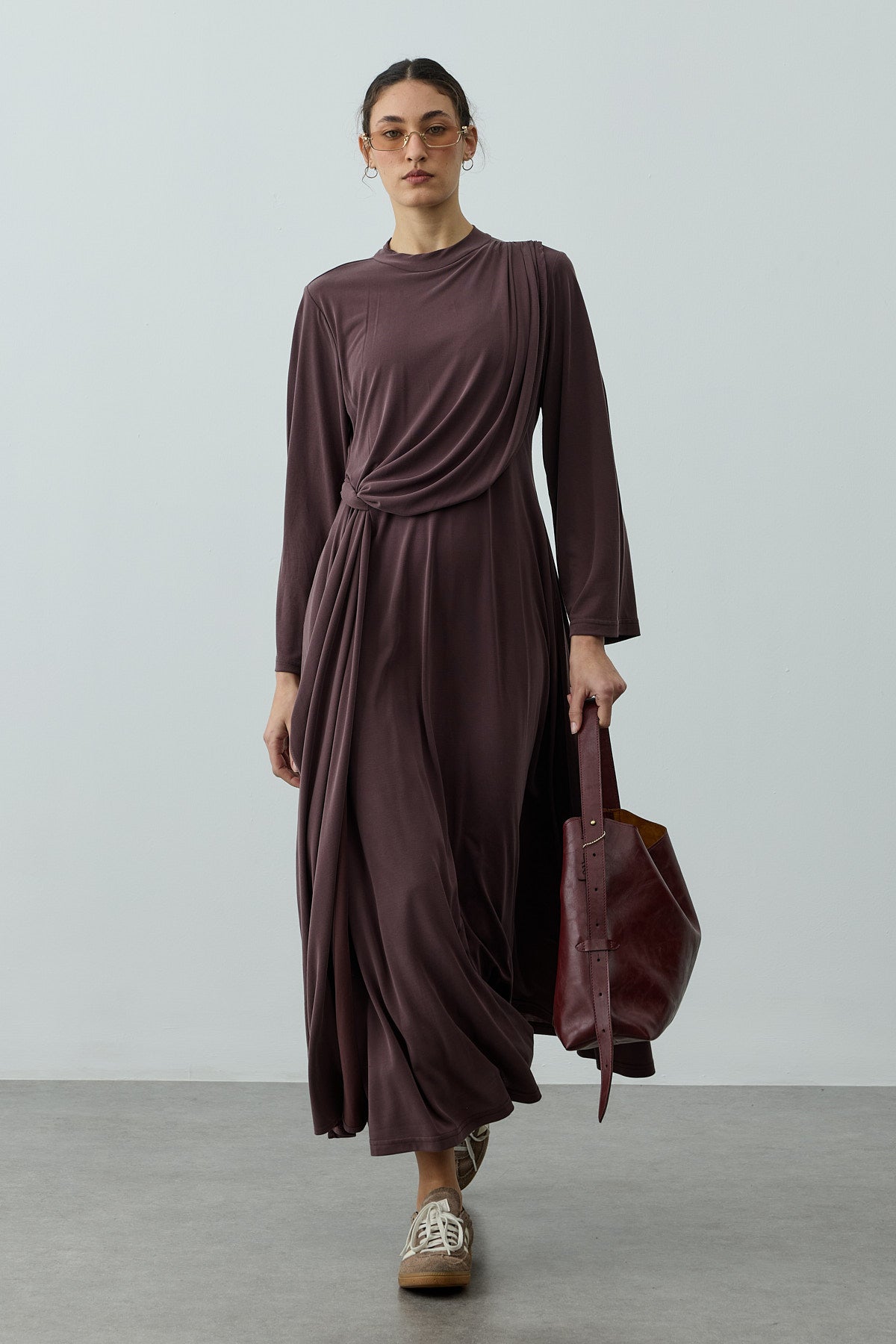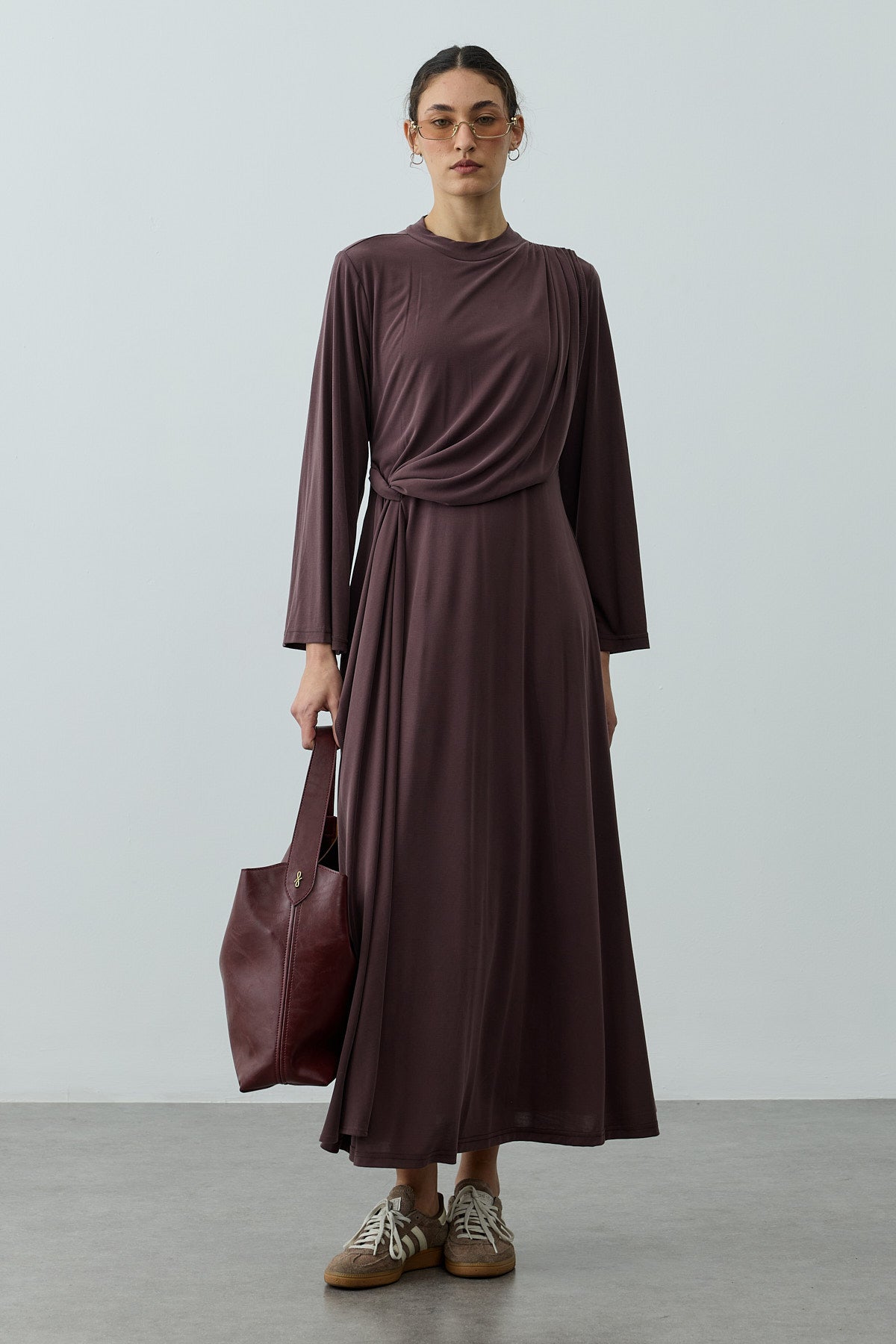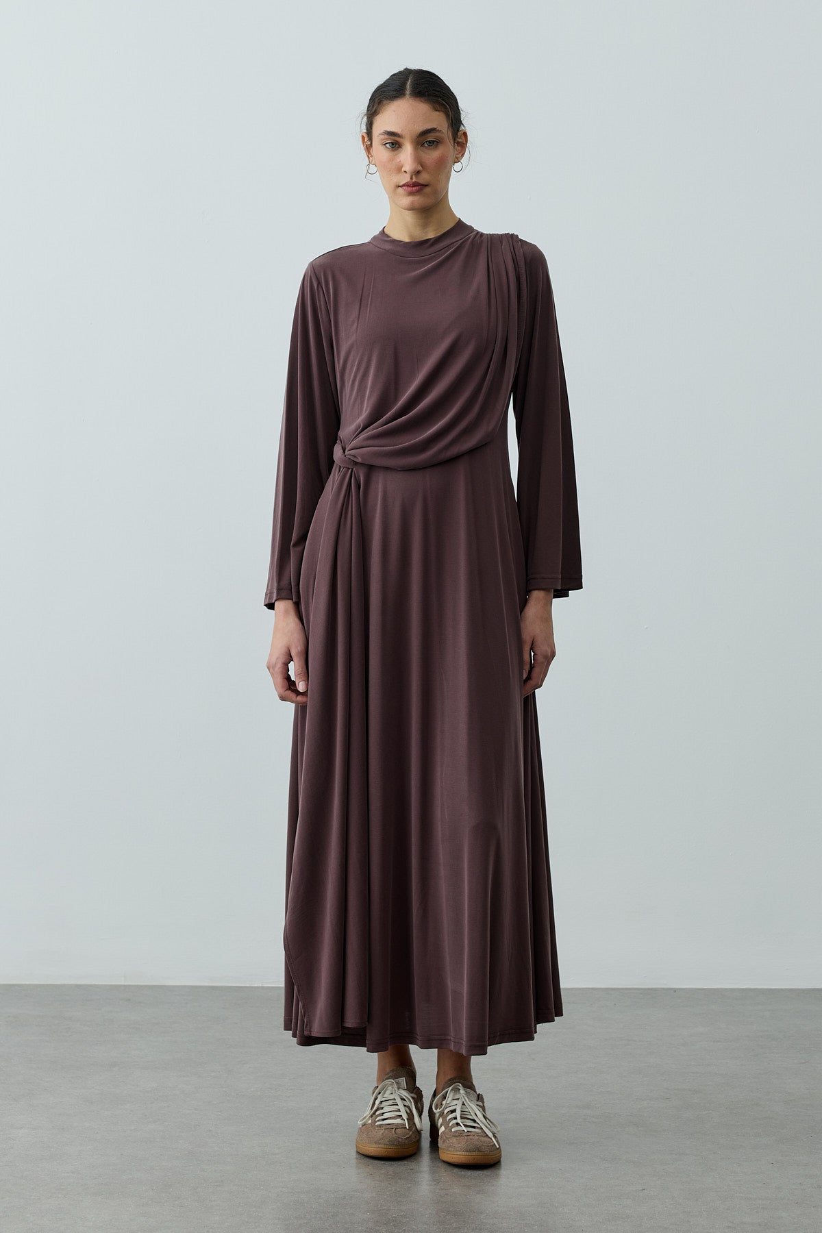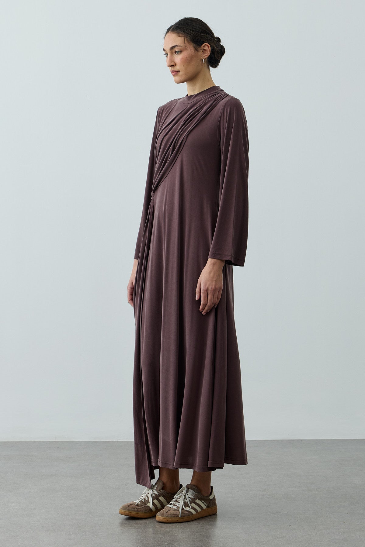 Parça Detaylı Modal Elbise Kahverengi