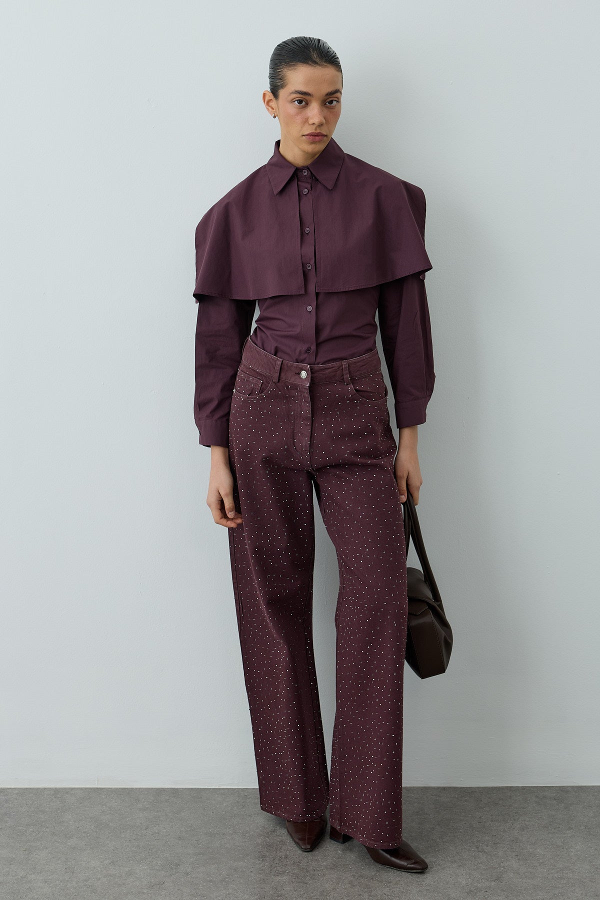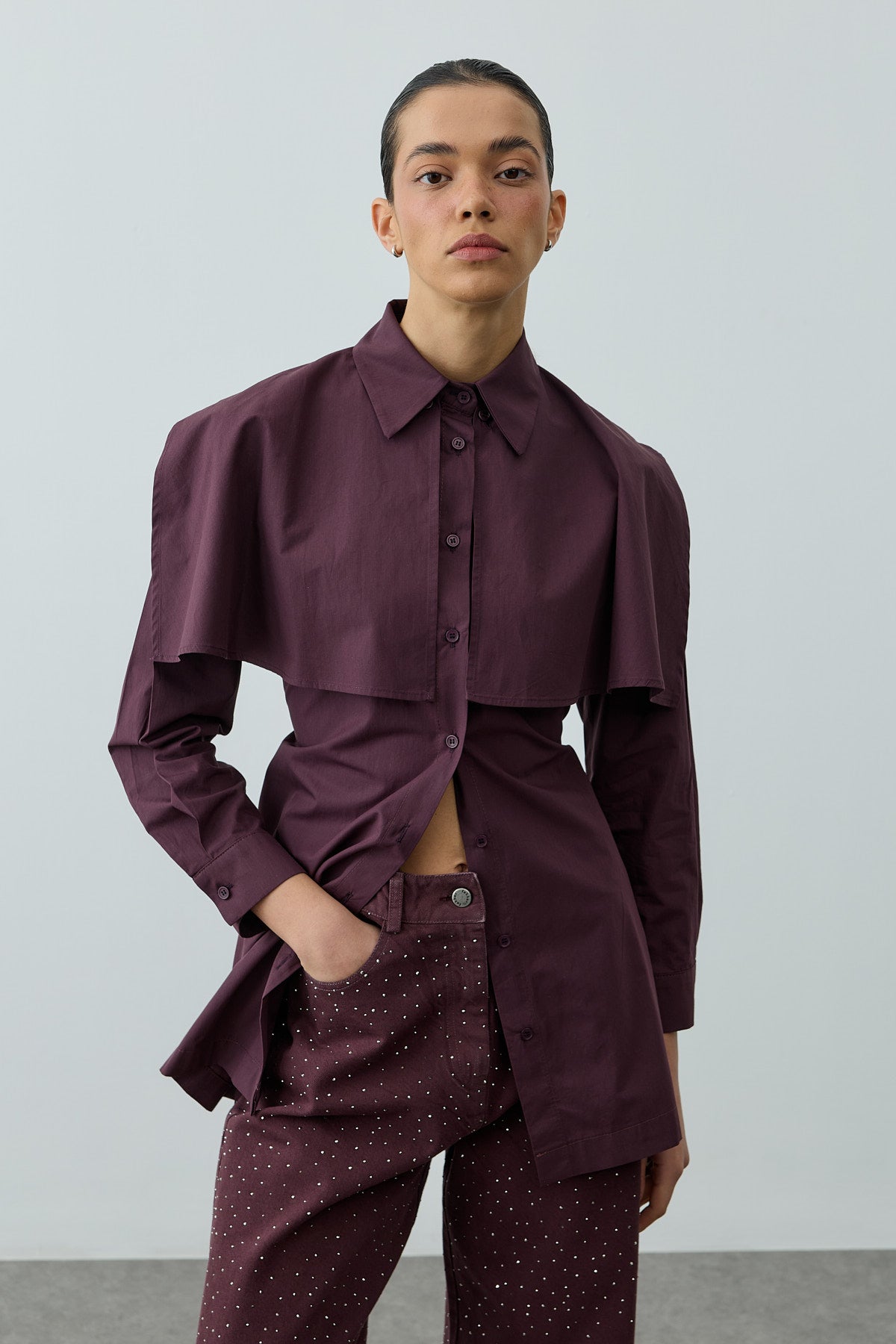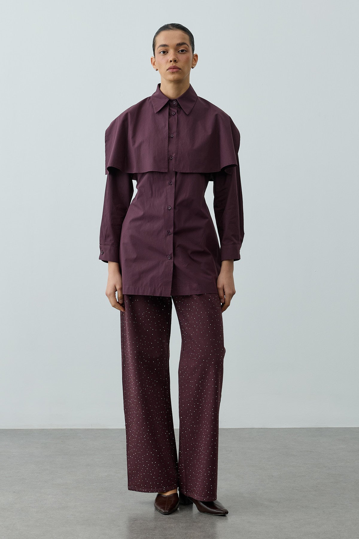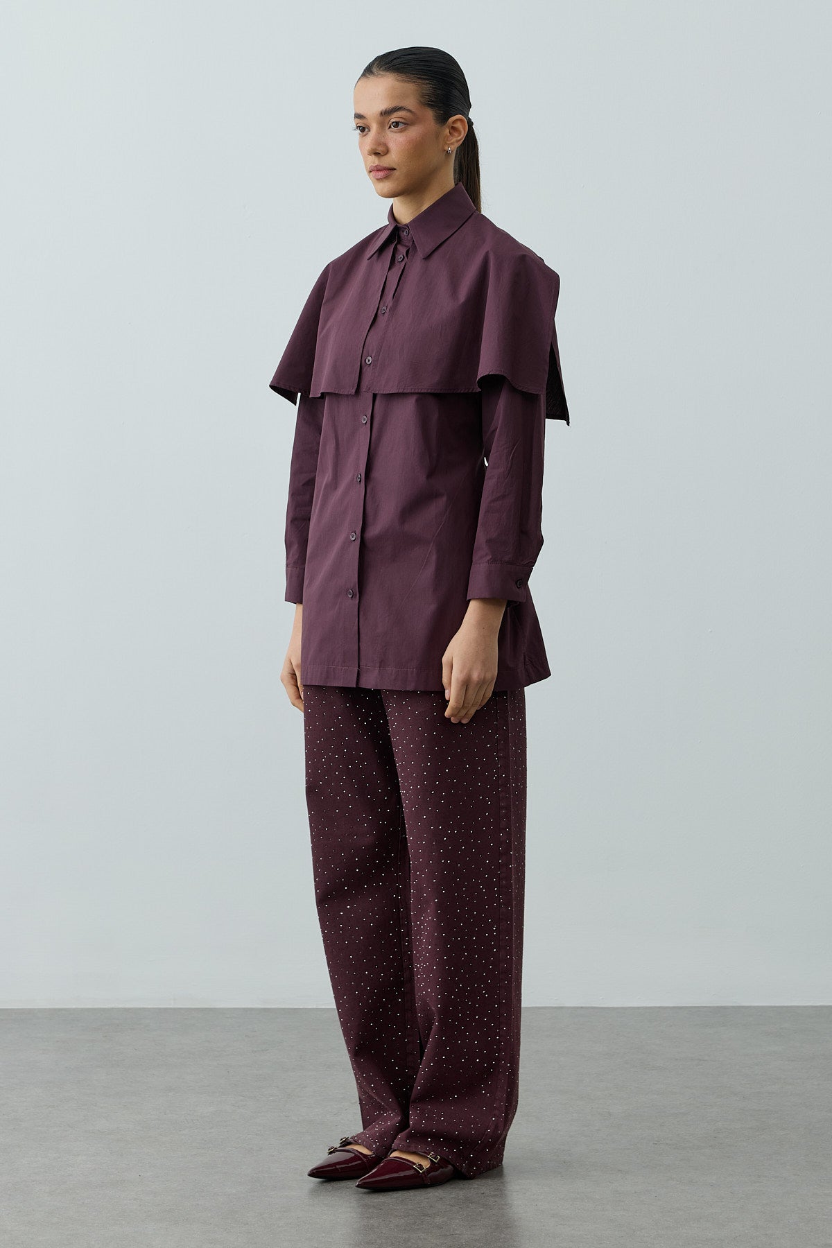 Pelerinli Pensli Gömlek Mürdüm