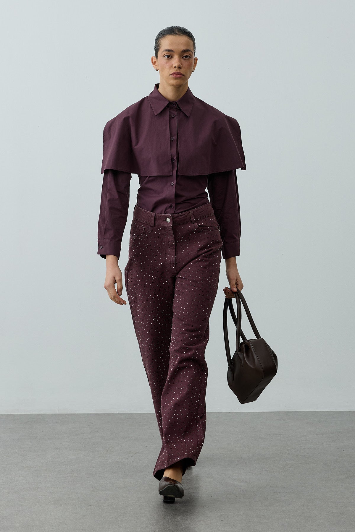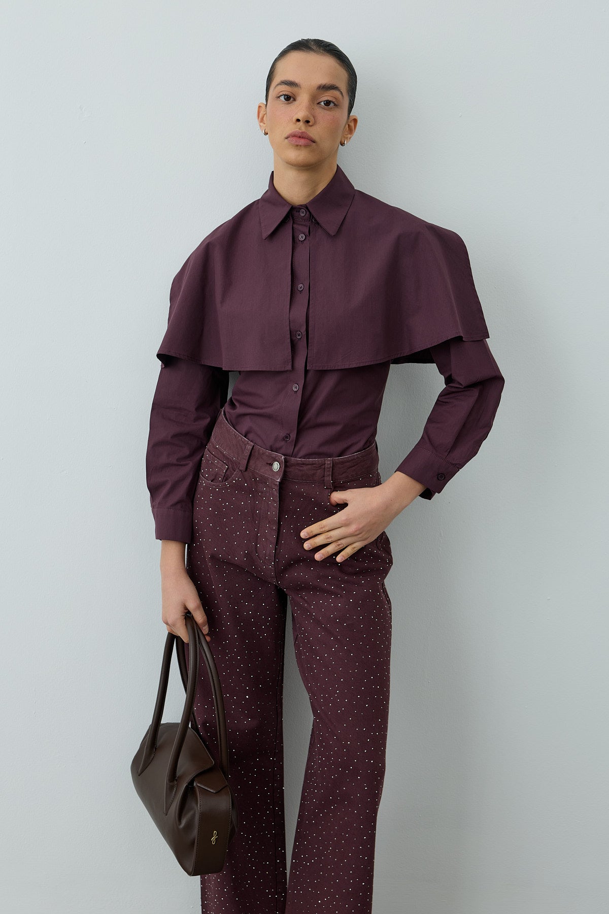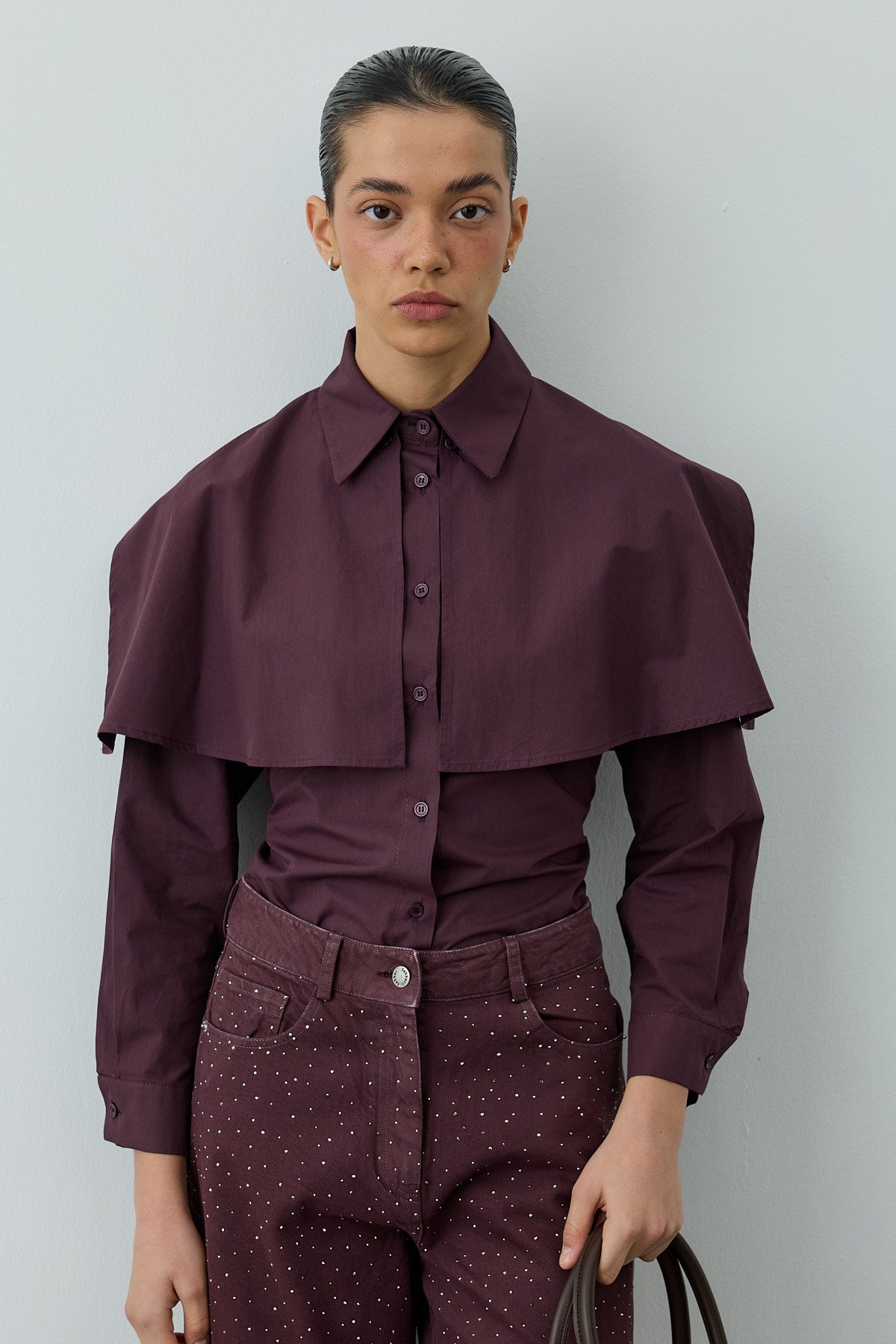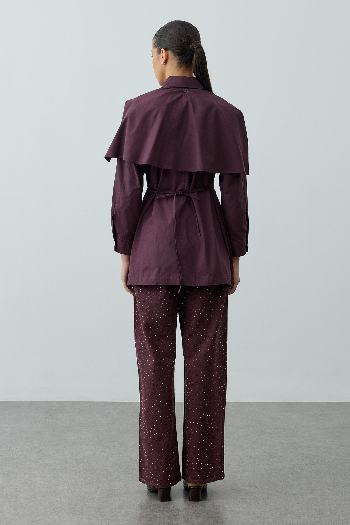 Pelerinli Pensli Gömlek Mürdüm