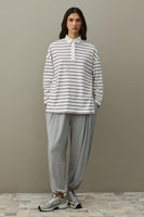 Polo Yaka Çizgili Tişört Ekru