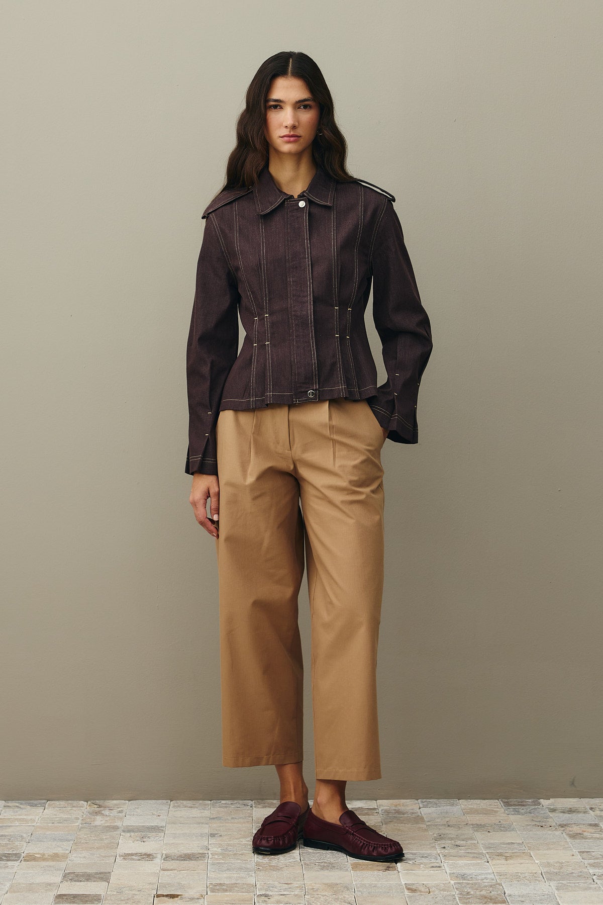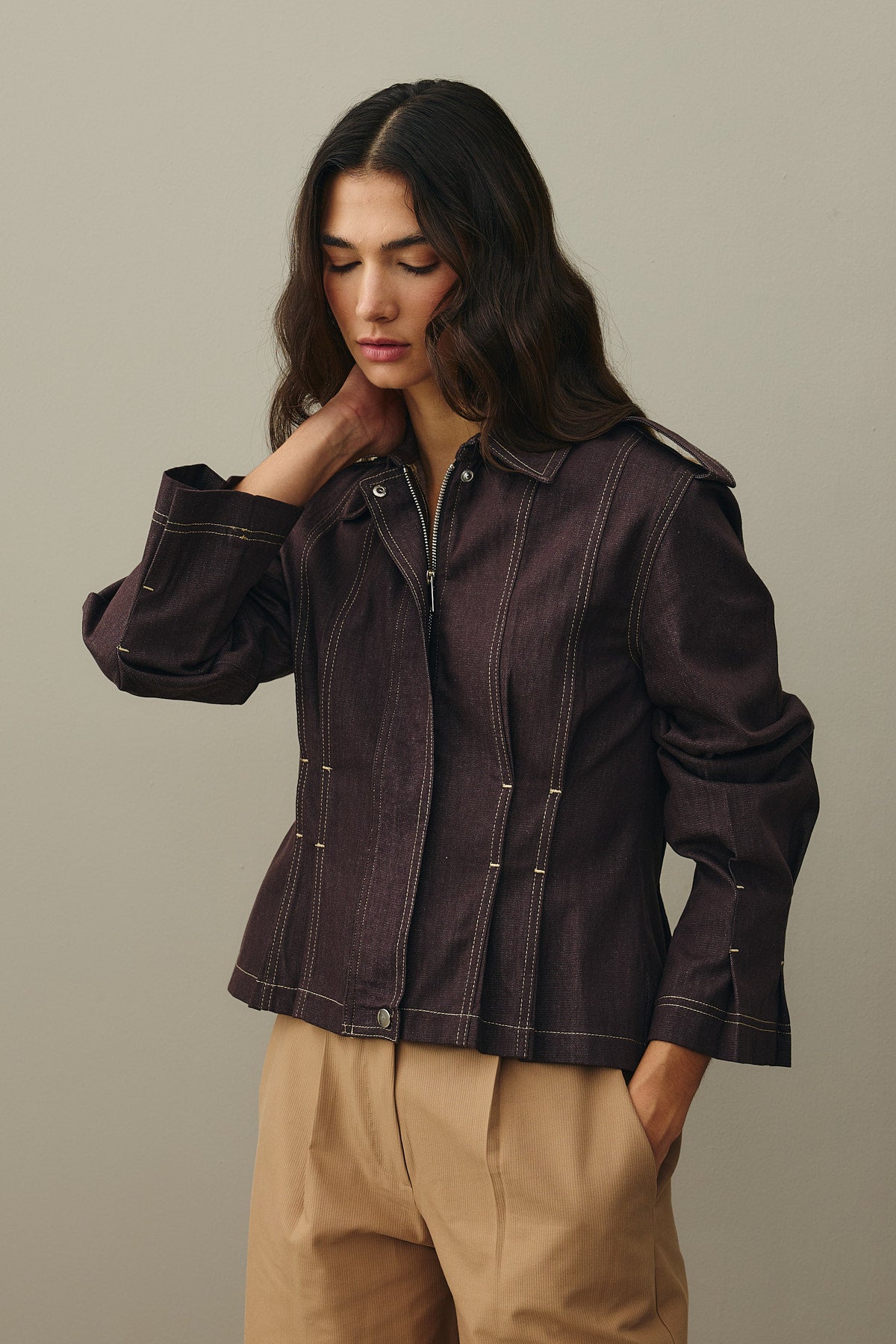 Body-Smoothing Denim Jacket Brown