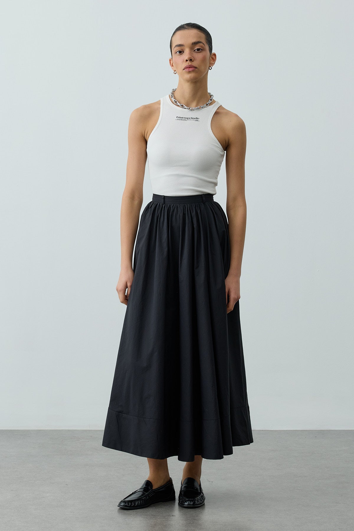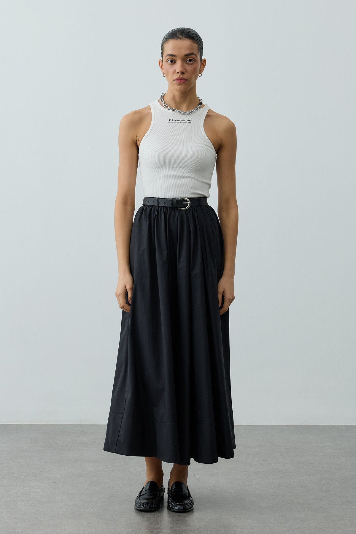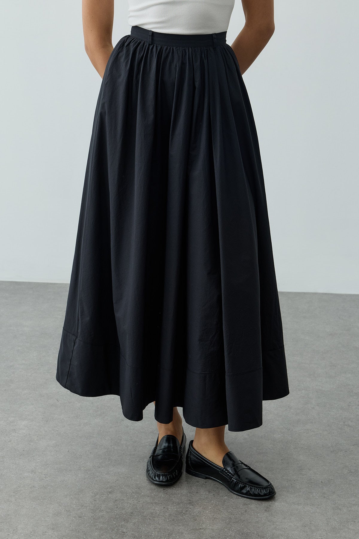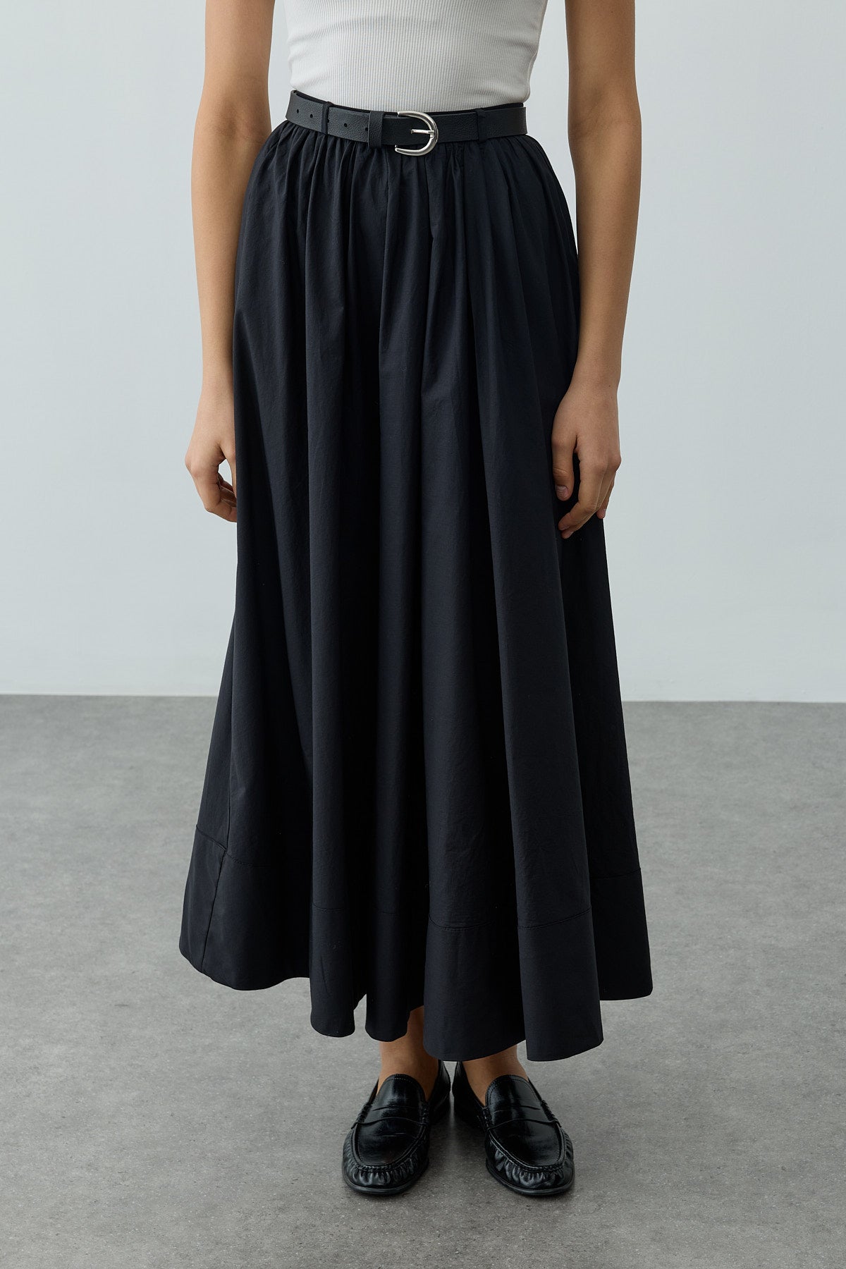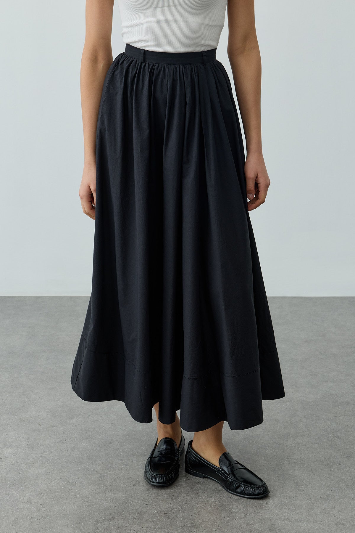 Büzgü Detaylı Maxi Etek Siyah