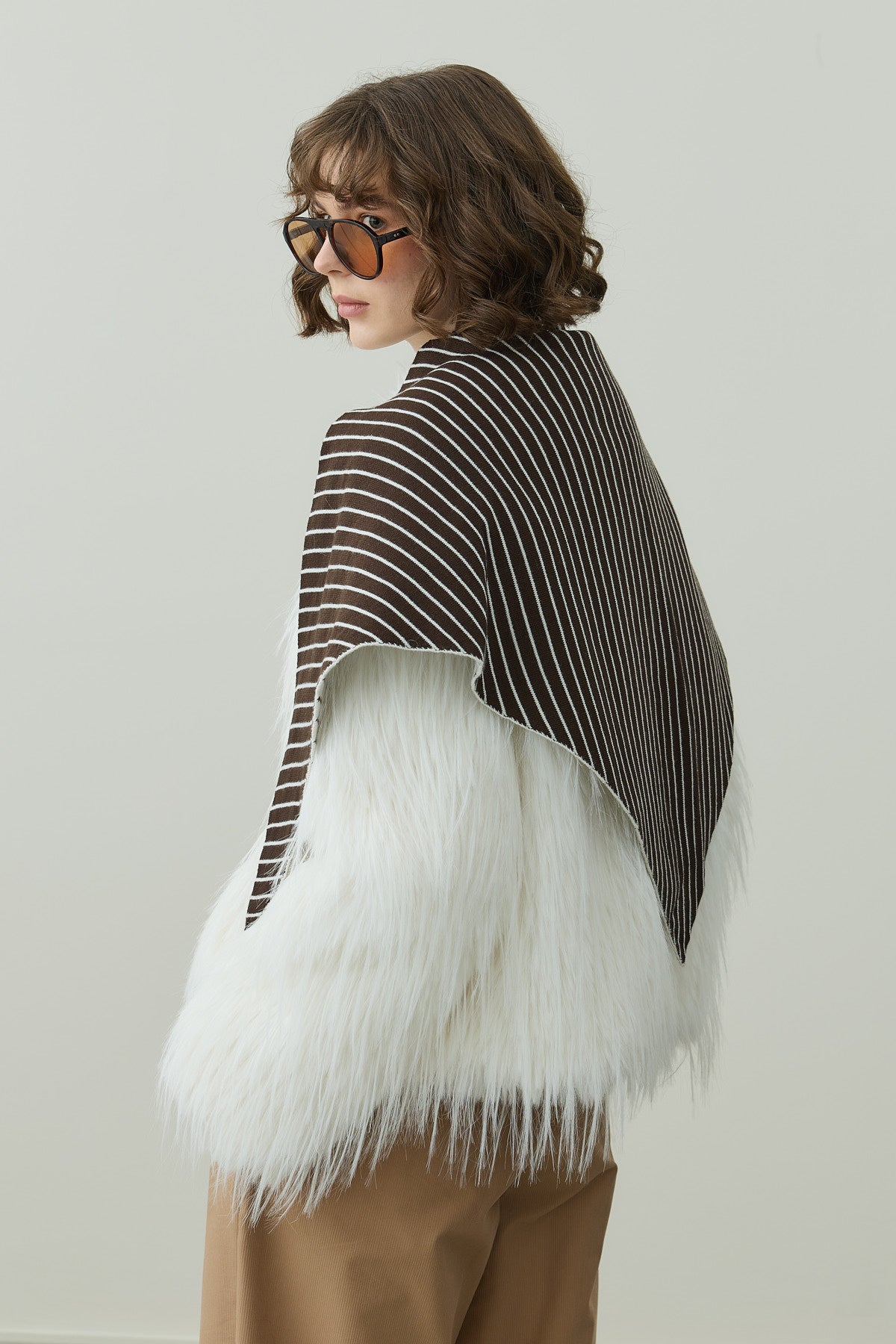 Çift Yönlü Çizgili Fular Atkı Kahverengi