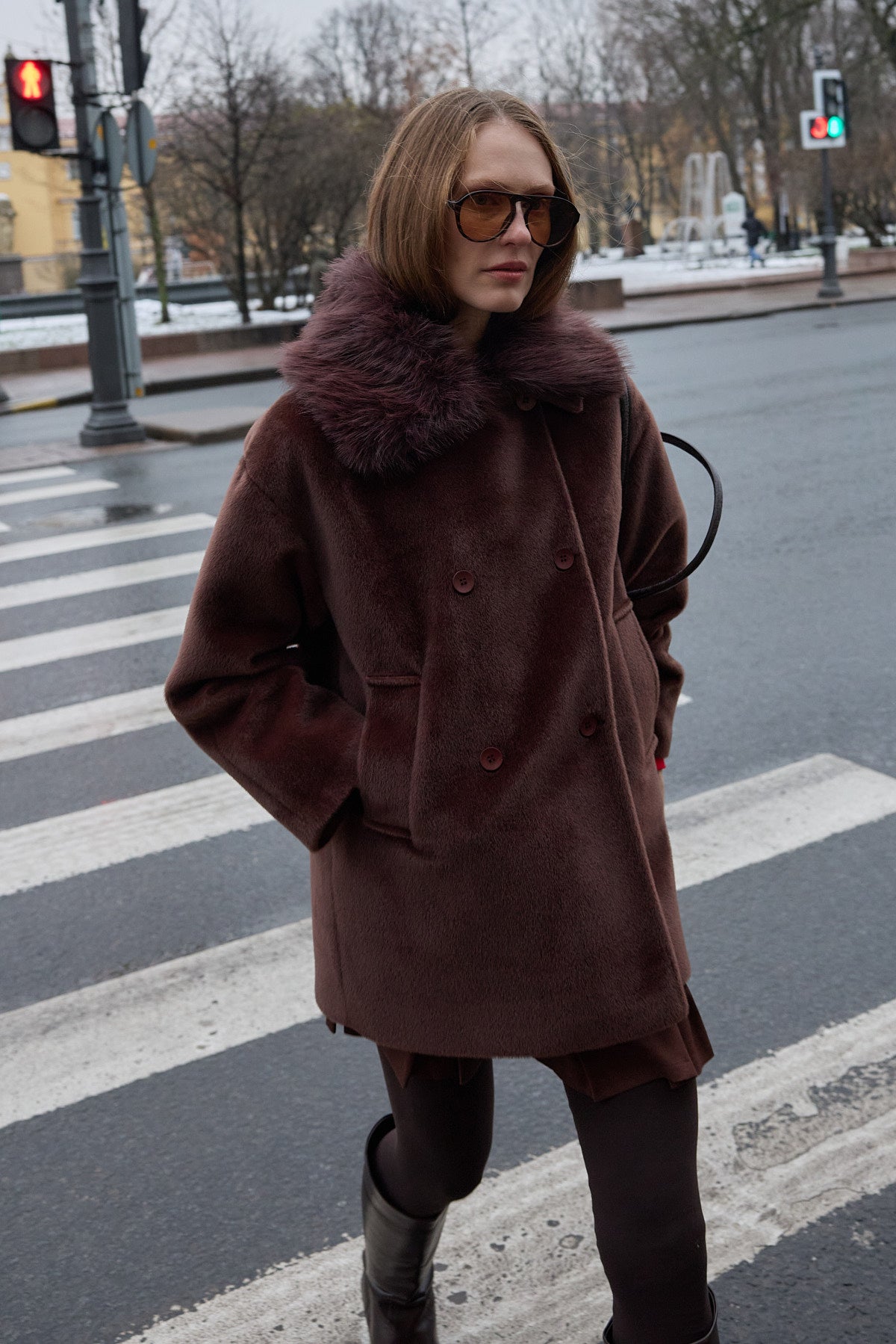 Çıkarılabilir Kürklü Bomb Kaban Kahverengi