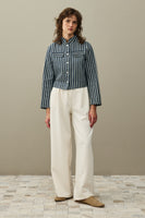 Çizgili Denim Bomb Ceket Koyu Mavi