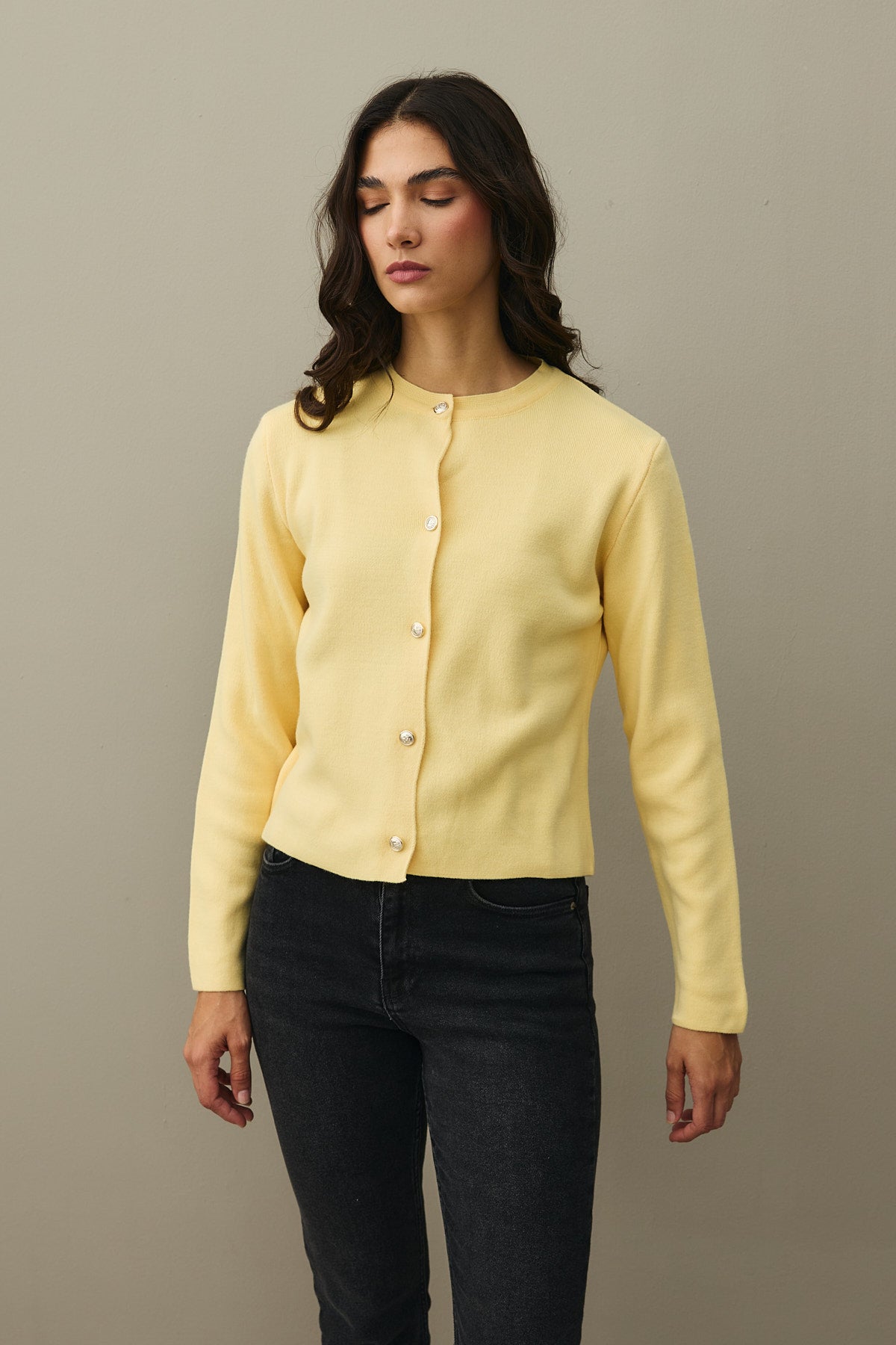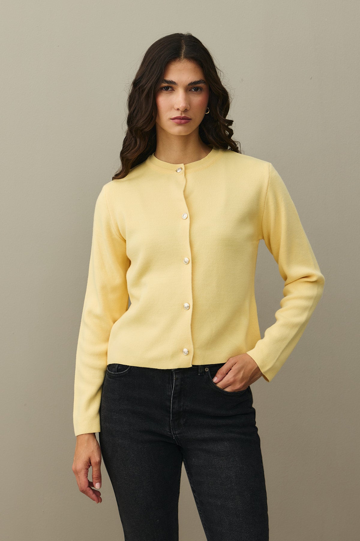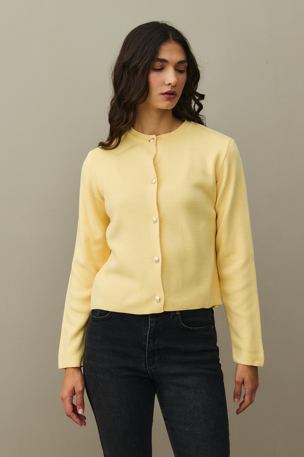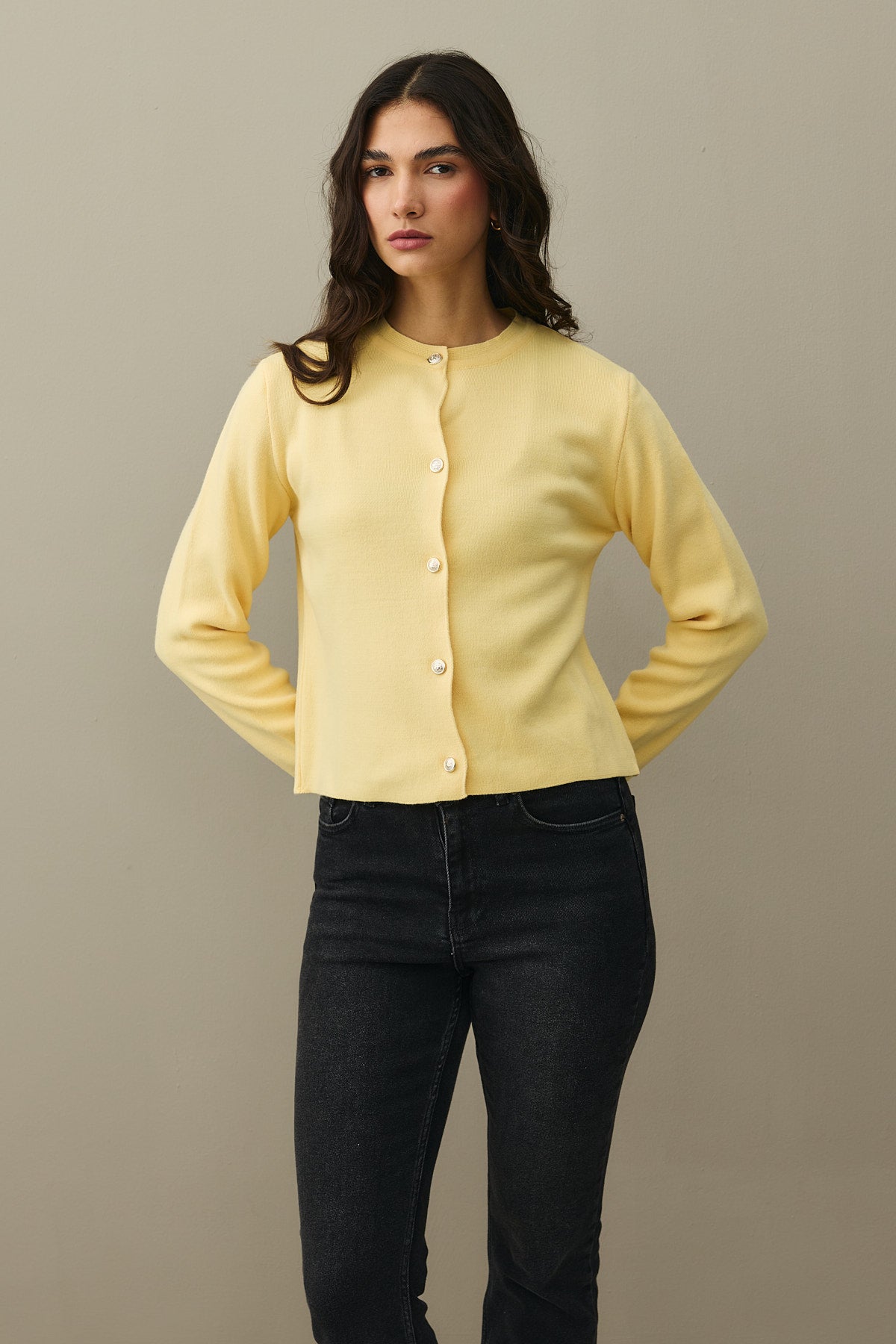 Crop Hırka Sarı