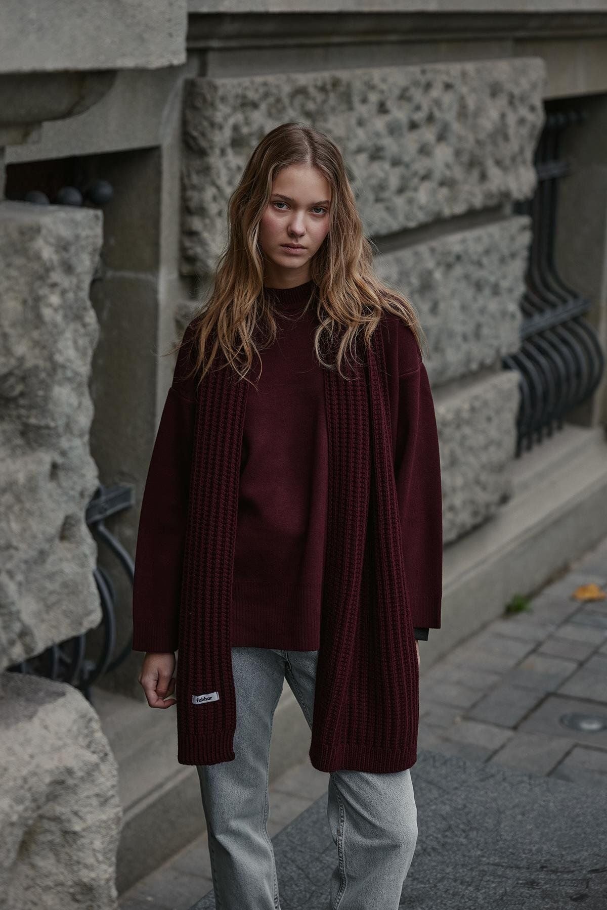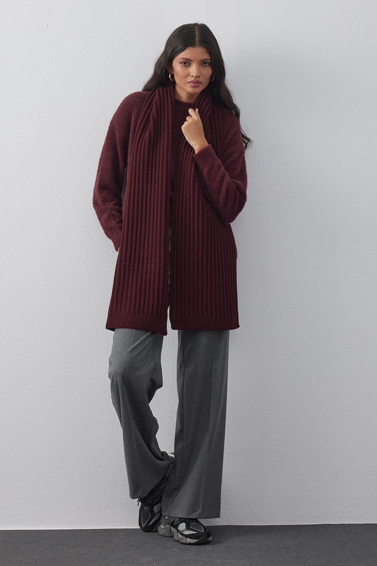 Düz Örme Fular Atkı Bordo