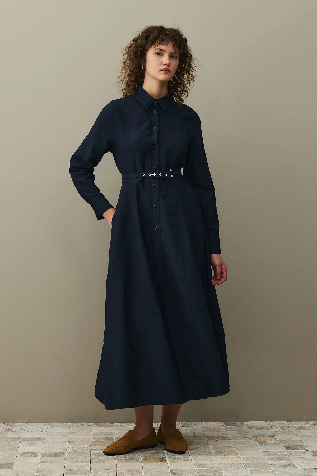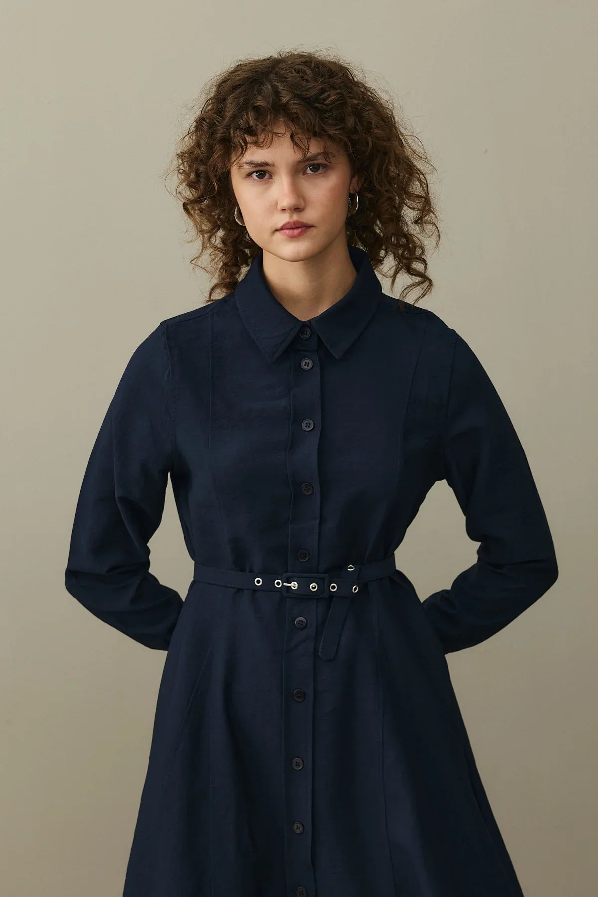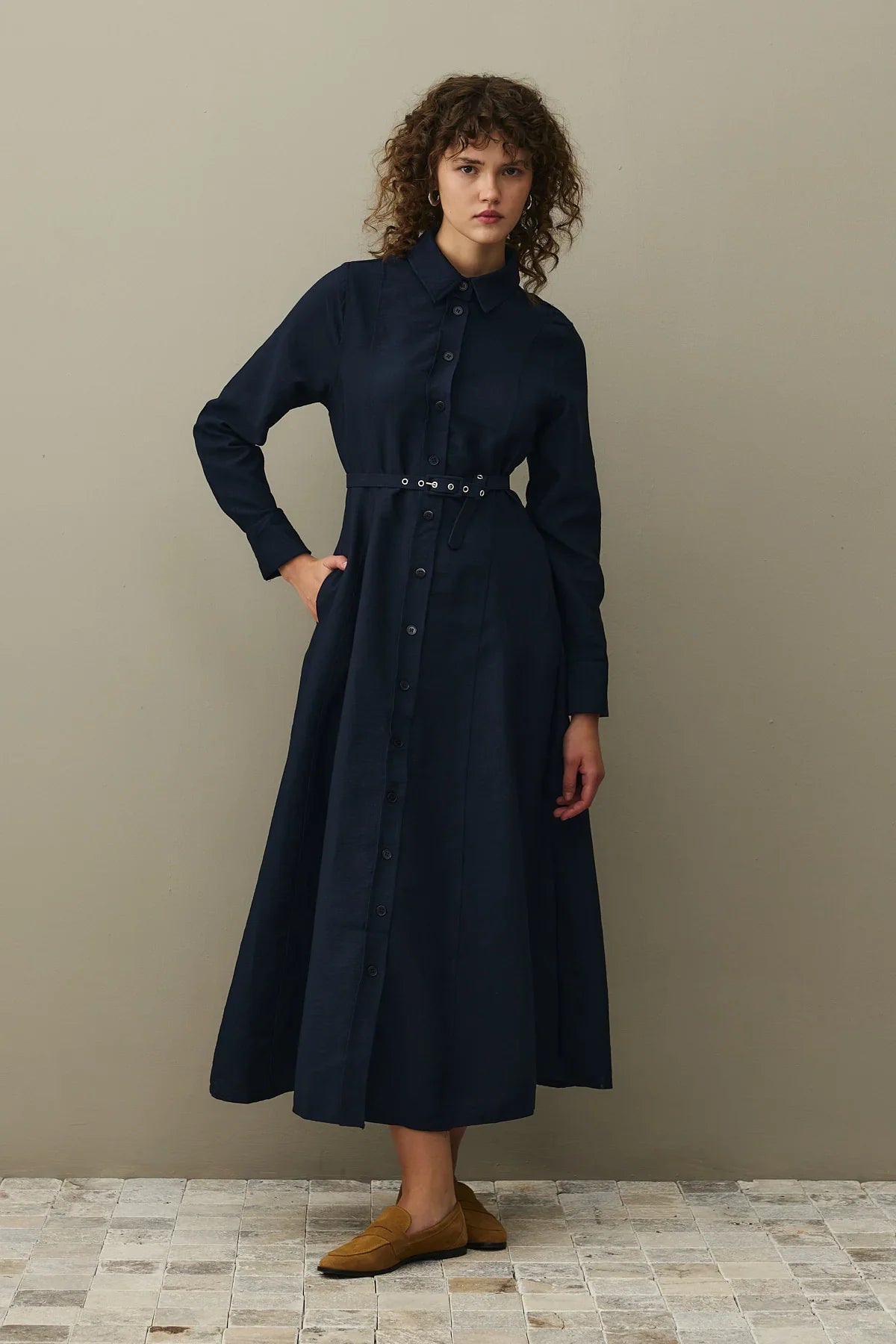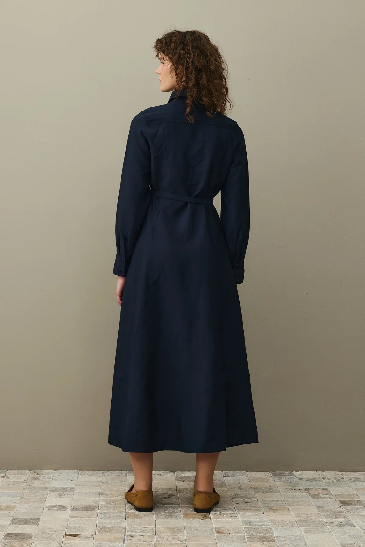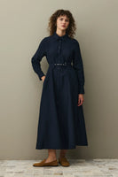 Kemerli Gömlek Elbise Lacivert