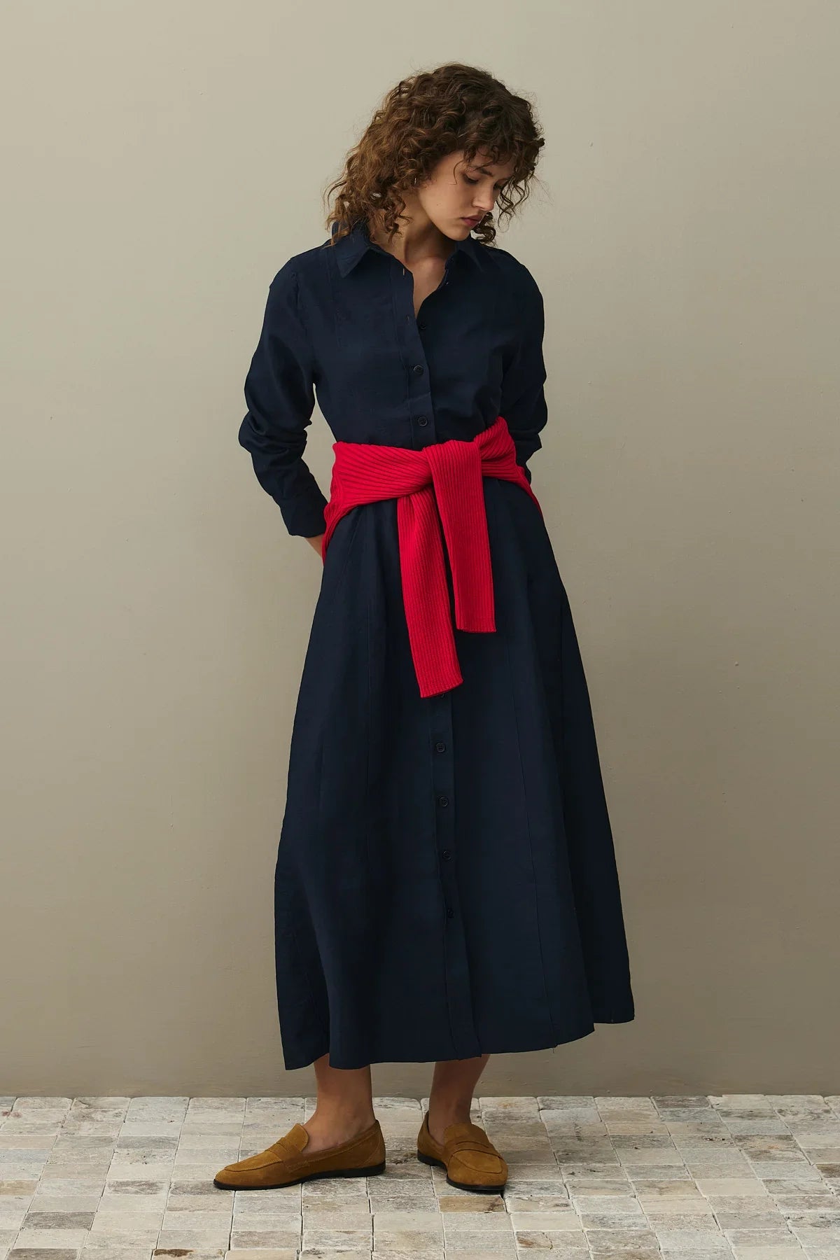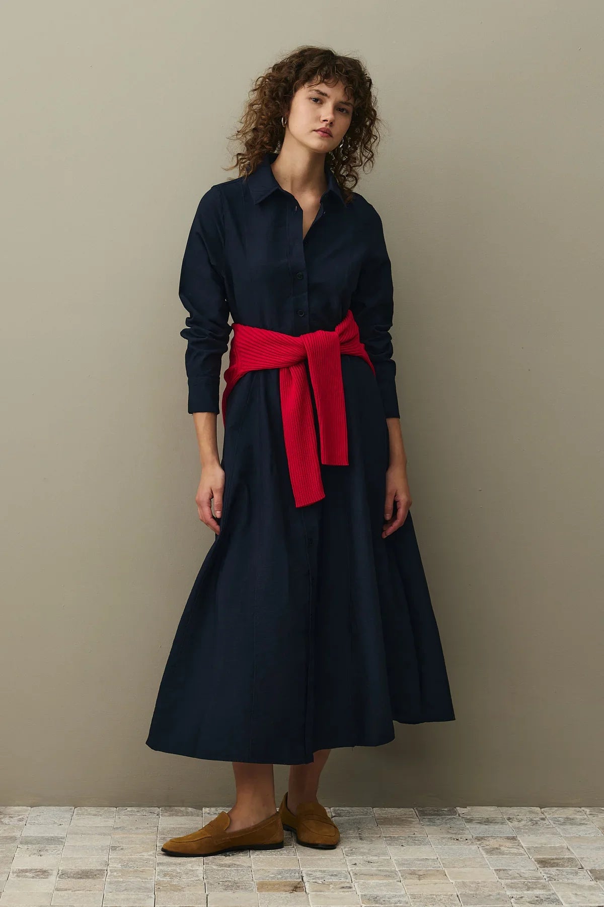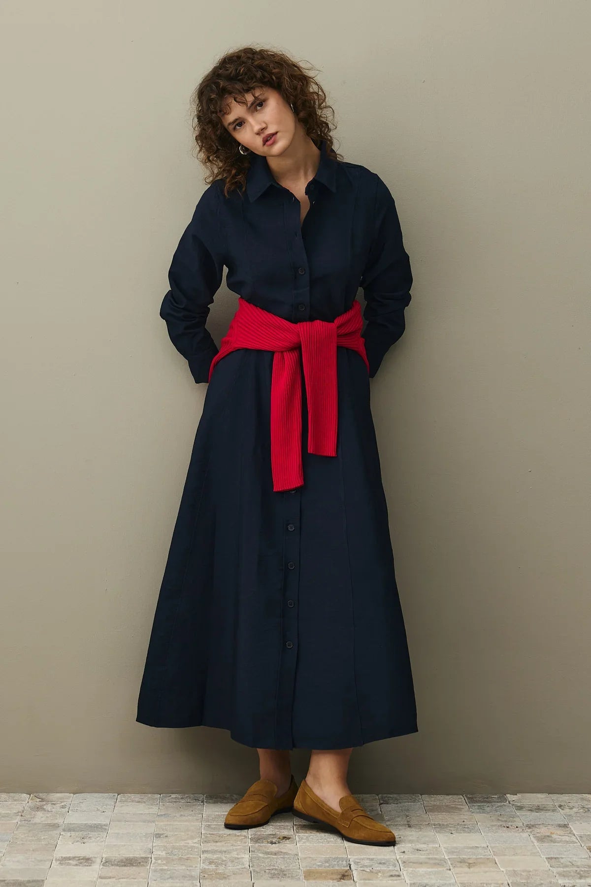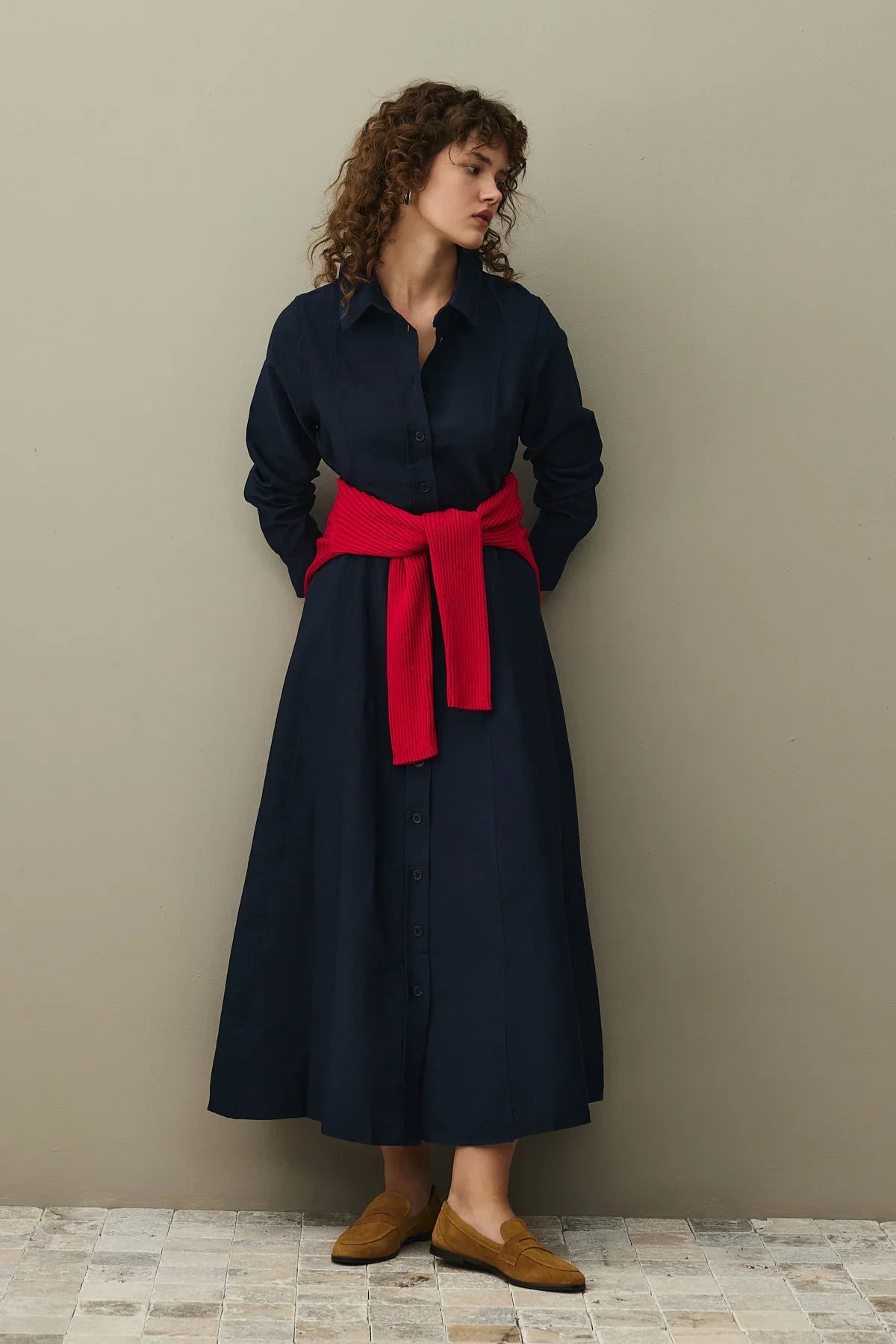 Kemerli Gömlek Elbise Lacivert