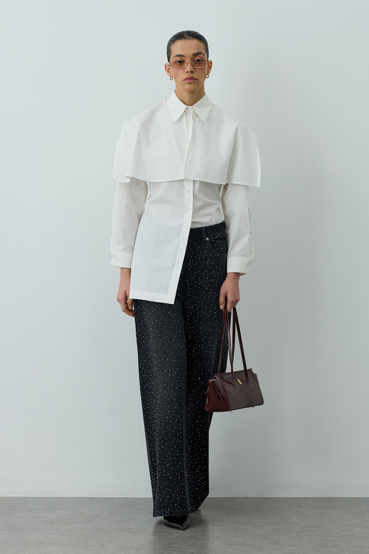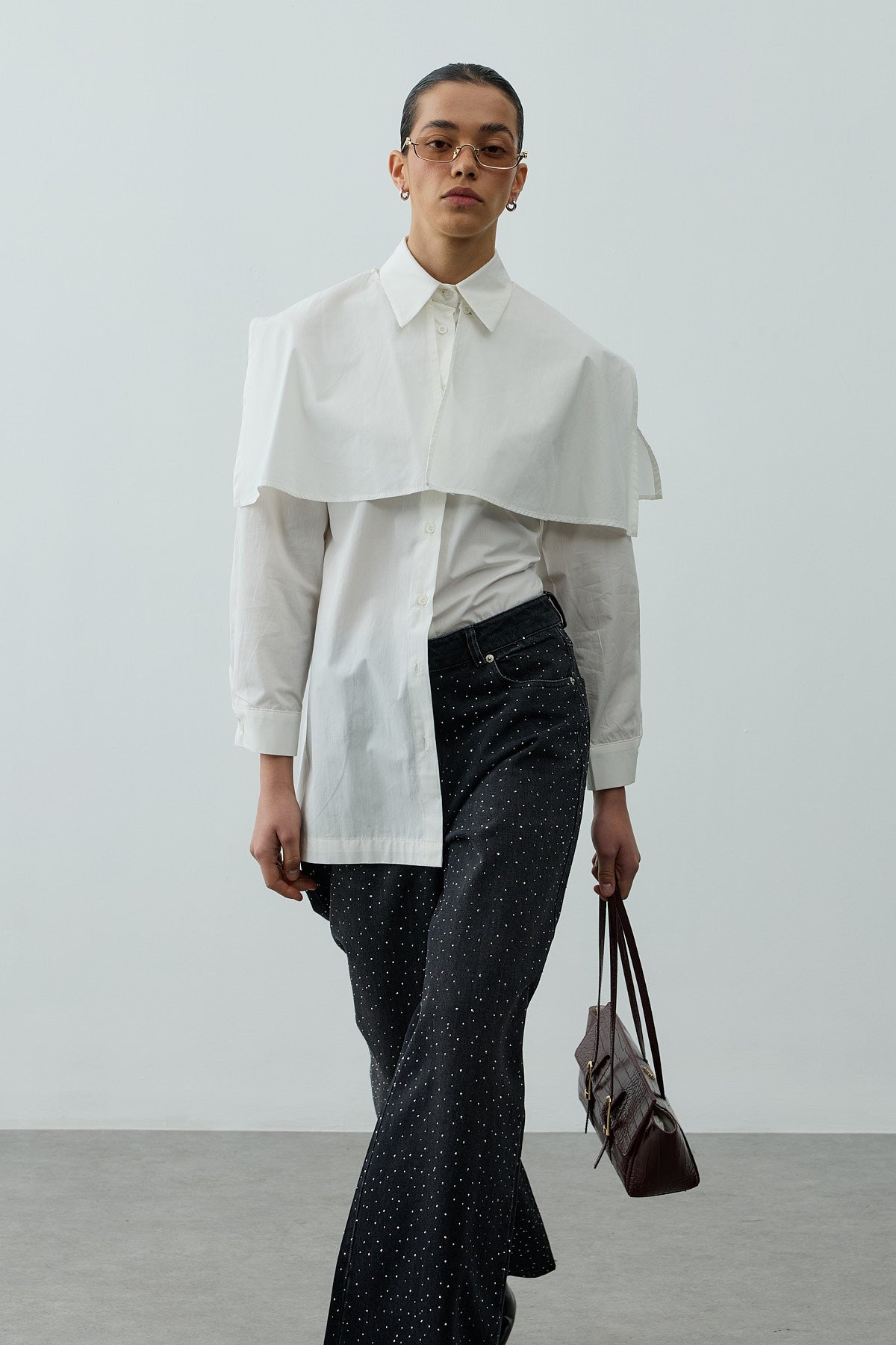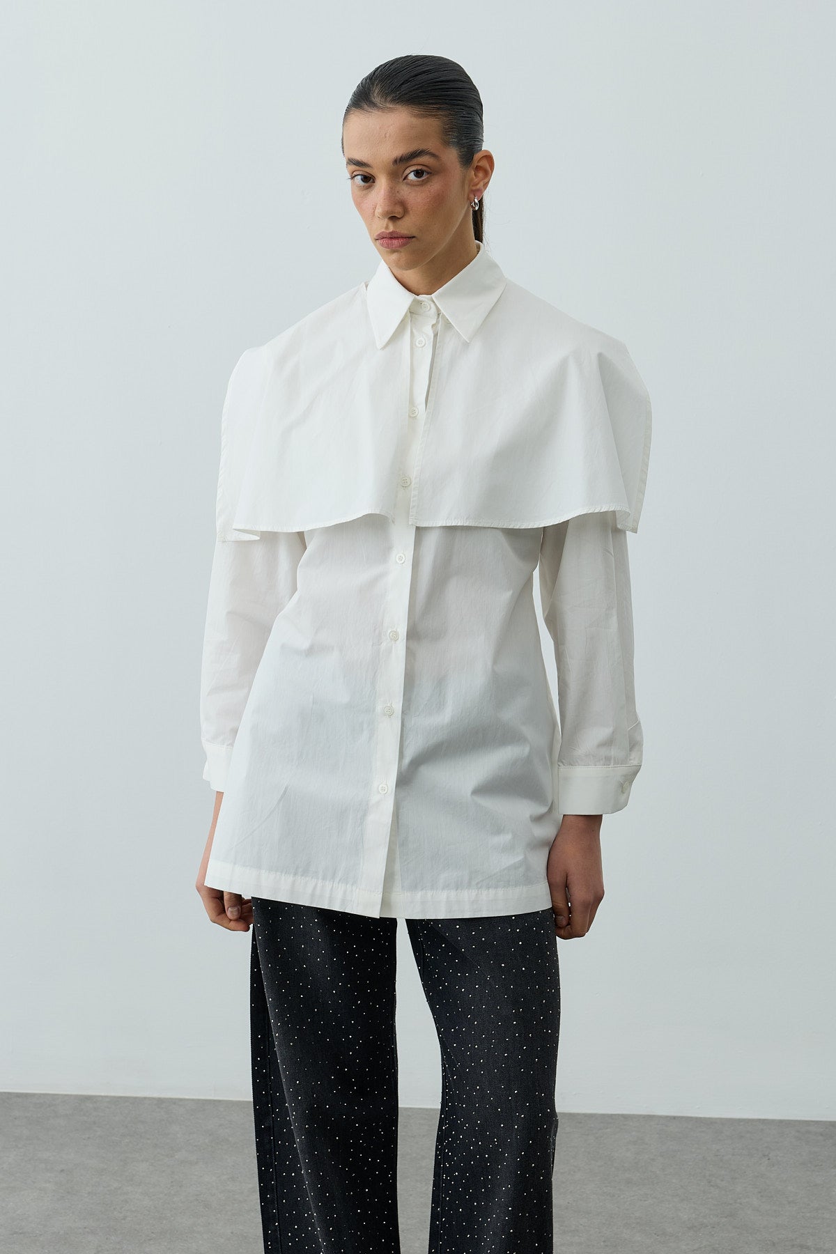 Pelerinli Pensli Gömlek Beyaz