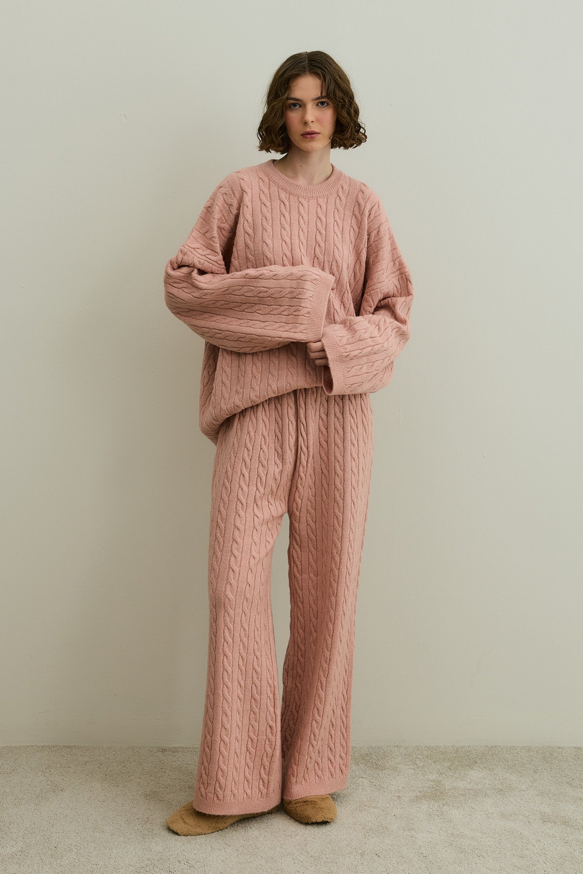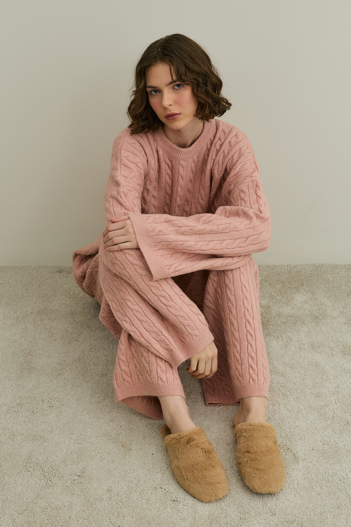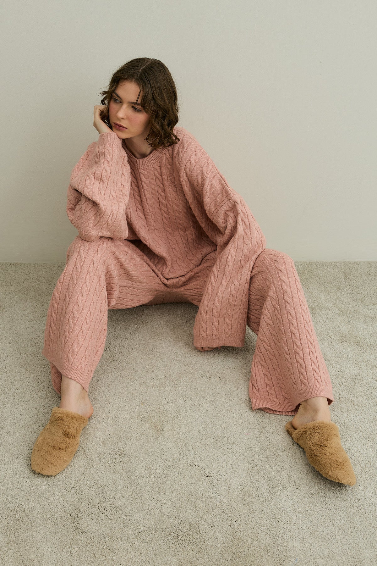 Saç Örgü Triko Takım Pembe